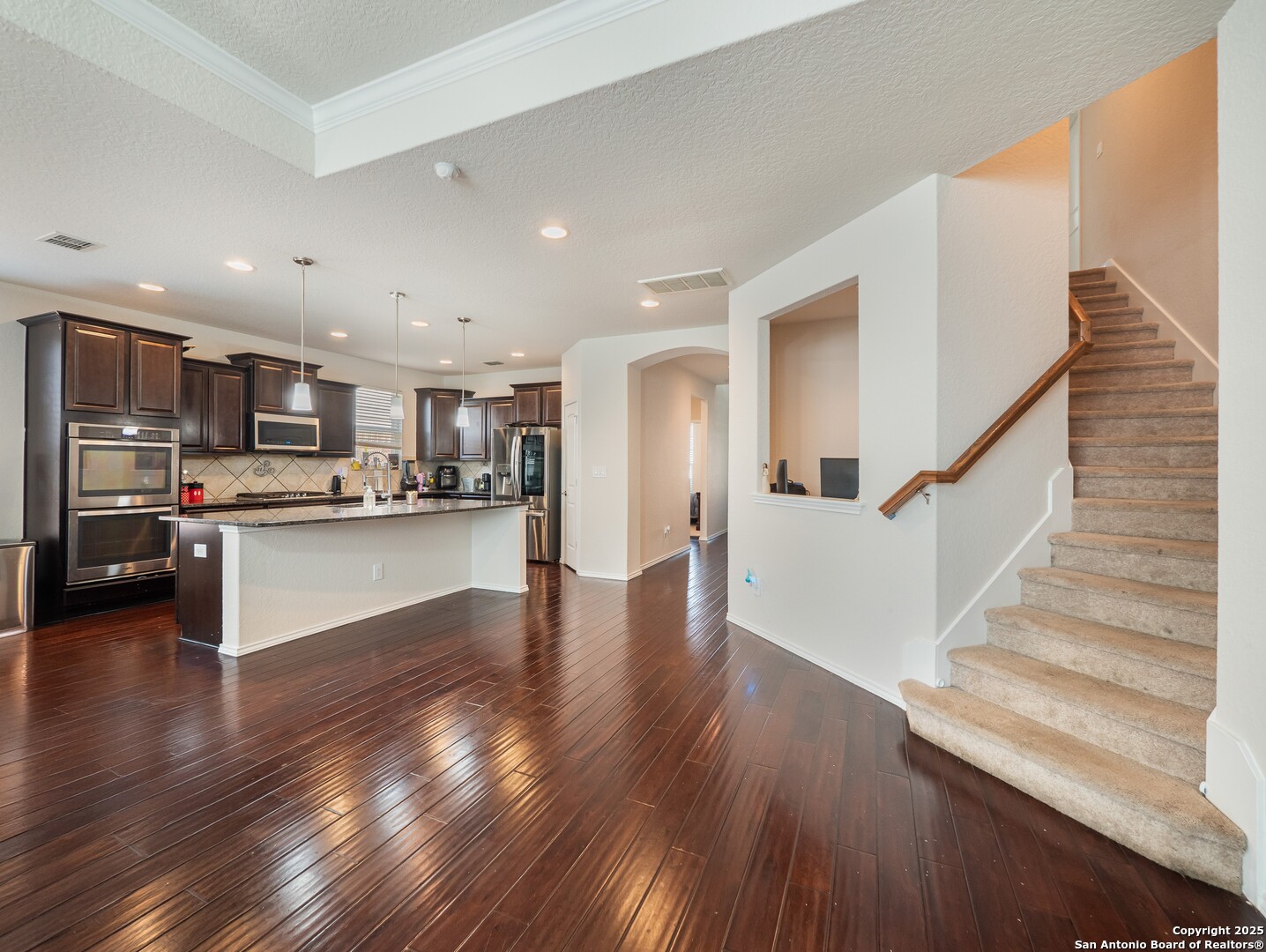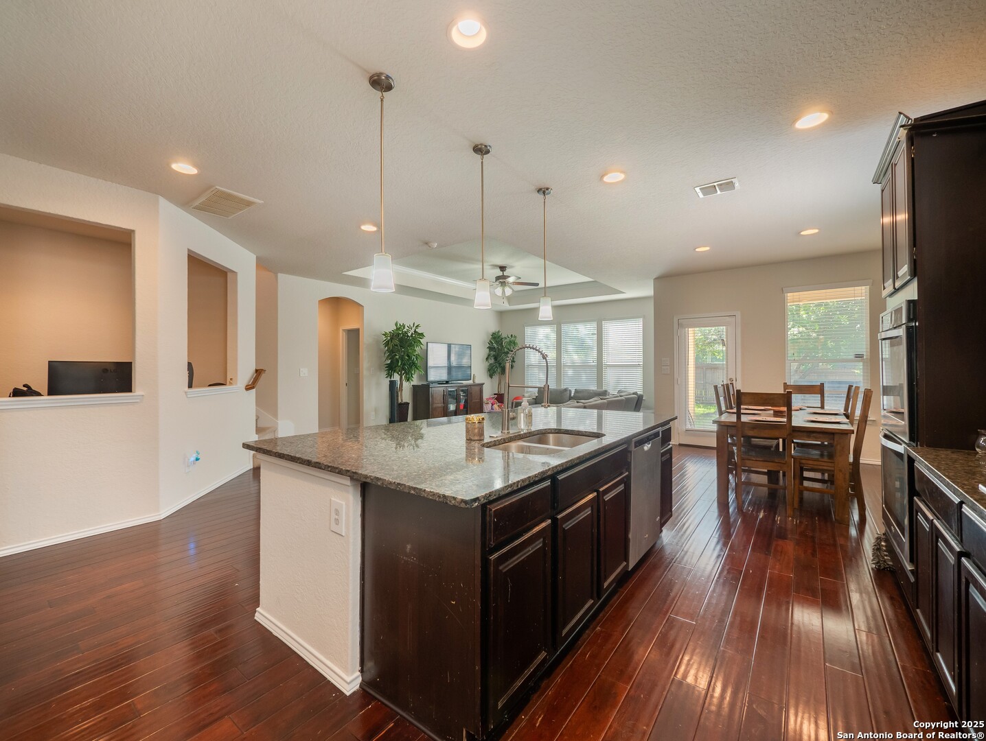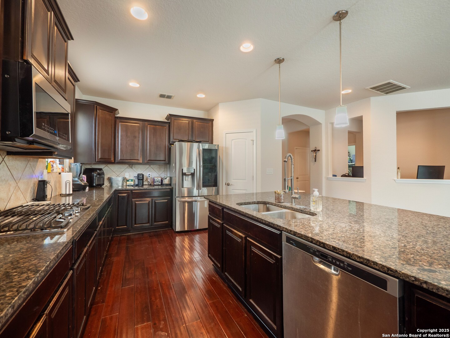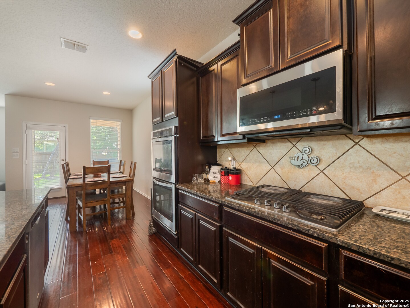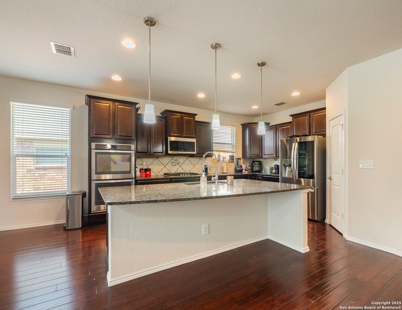 Welcome to this beautifully designed 5-bedroom, 4-bath, two-story home offering 2,923 sq ft of comfortable living space on a 0.14-acre lot. This home combines thoughtful design with everyday functionality. Step into a high-ceiling foyer that leads into an open-concept layout featuring a spacious living, dining, and kitchen combo. A tray ceiling highlights the living room, while the huge kitchen island offers plenty of prep and seating space - perfect for entertaining. A mudroom, a dedicated office, and a laundry room are all conveniently located on the main level. The primary bedroom is located on the main floor and boasts a spacious walk-in closet and a private ensuite bath with a dual vanity and walk-in shower. A secondary bedroom is also located downstairs, offering flexible space for guests or multigenerational living. All bedrooms are carpeted for added comfort. Upstairs, you'll find a carpeted versatile game room or media room, along with an additional office, ideal for remote work or study space. Enjoy the outdoors on the covered patio slab overlooking a fully fenced wooden backyard - perfect for relaxing or entertaining. Additional highlights include a two-car attached garage, sidewalk and curb appeal. Located in a quiet, low-traffic neighborhood - perfect for casual walks at any time of day - and just five lots down from the neighborhood playground. Perfectly situated just minutes from Dean H. Krueger Elementary School, H-E-B Plus, Walmart, and Neighborhood Walmart. Offers easy access to Loop 1604 and is centrally located between Alamo Ranch and La Cantera, and conventionally positioned between major attractions like SeaWorld and Six Flags Fiesta Texas. Close to Old Town Helotes, which hosts a farmers market on the first Saturday of each month. The City of Helotes also features annual events such as a rodeo, carnival, and parades - including Christmas parade. This home offers space, flexibility, and convenience - all in one well-appointed package. Schedule your tour today!