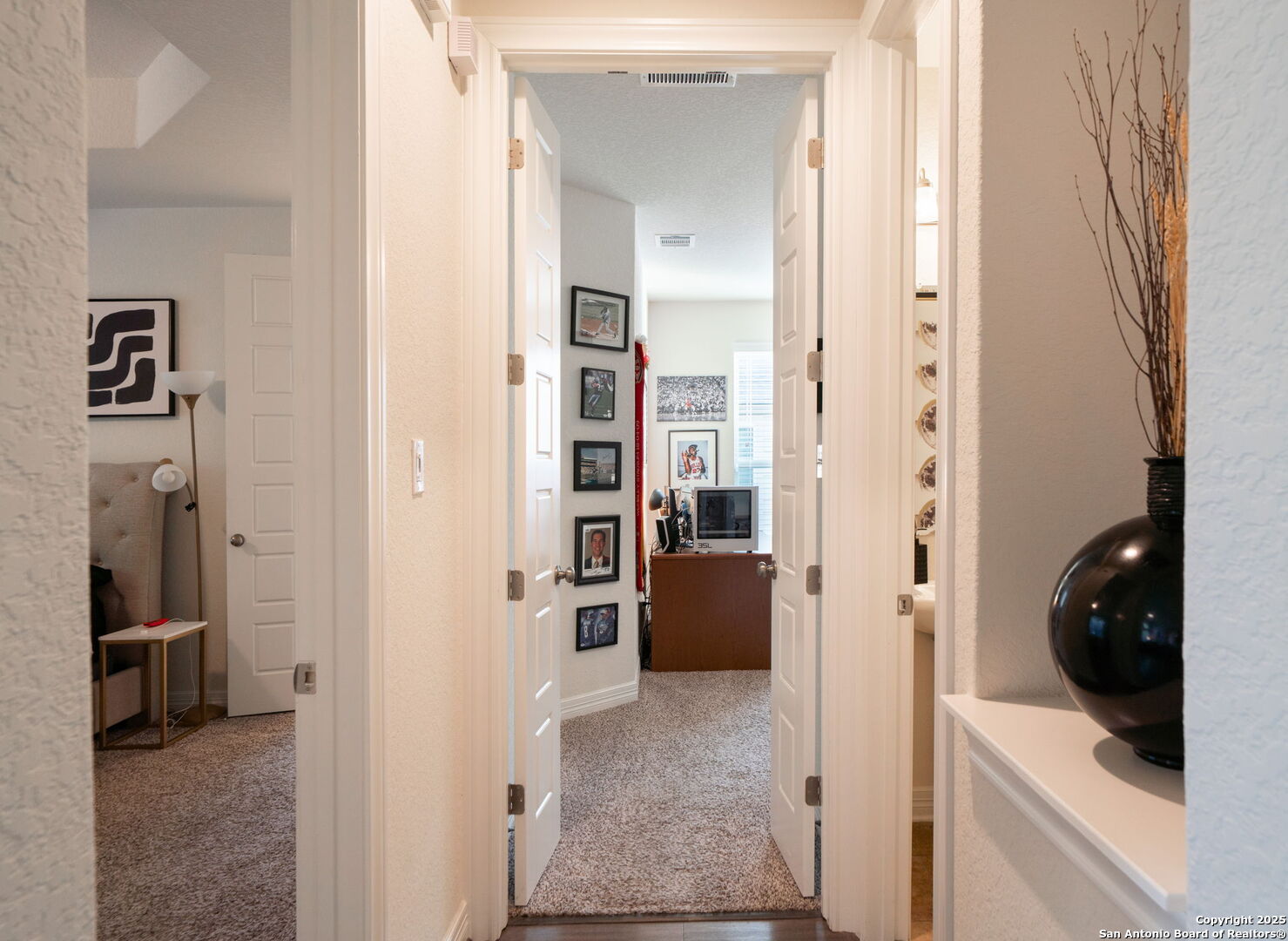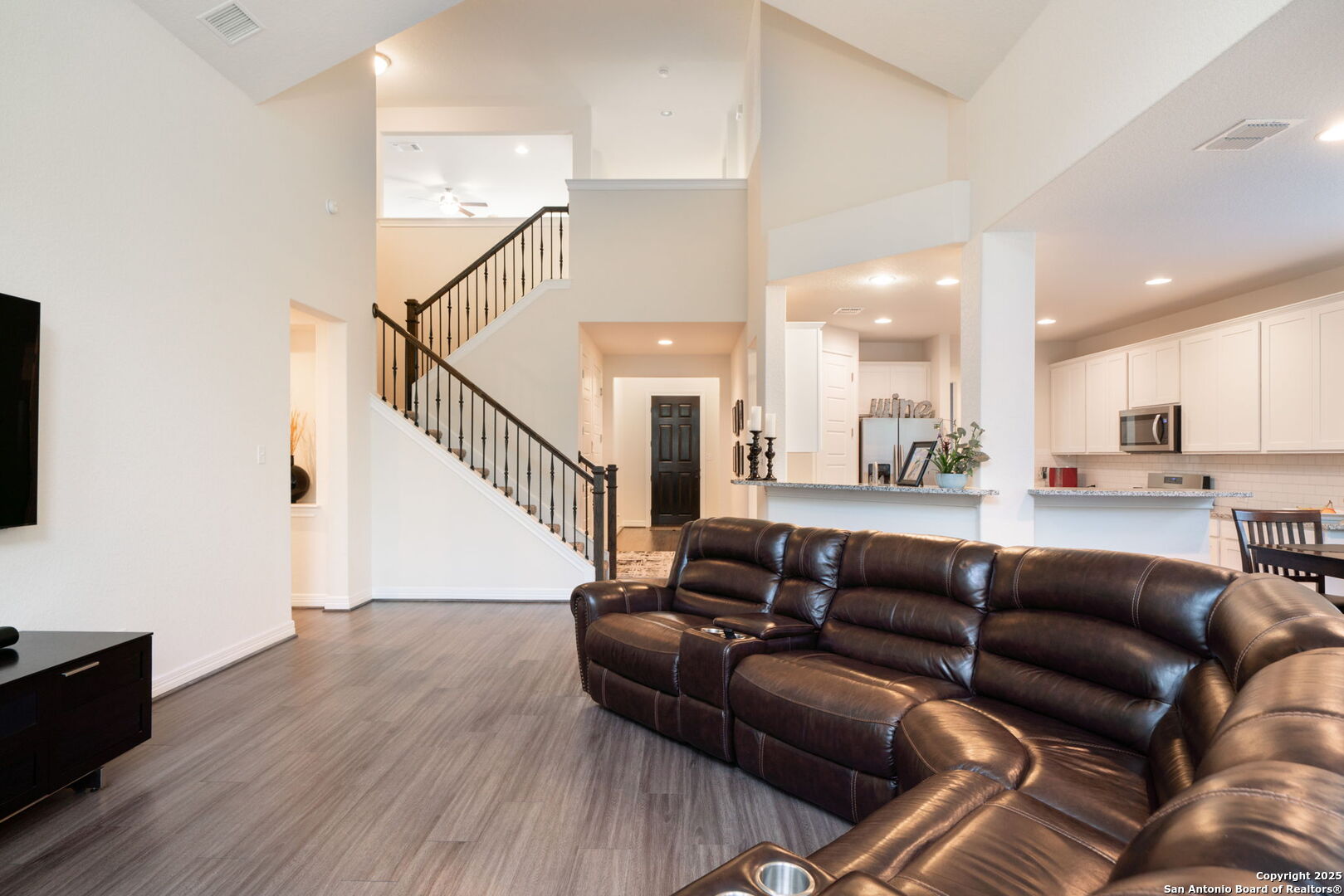 Welcome to this stunning two-story residence, thoughtfully designed for both elegance and everyday comfort. Featuring 4 bedrooms, two flex rooms, and 3.5 bathrooms, this home offers an abundance of space, versatility, and refined finishes throughout. Step inside to an inviting open floor plan highlighted by soaring ceilings and an abundance of natural light. The gourmet kitchen is at the heart of the home with an island, breakfast bar, and seamless flow into the living and formal dining areas. The primary suite, located on the first floor, serves as a private retreat with a spacious en suite bath and generous walk-in closet. An additional bedroom or office on the main level offers convenience and flexibility for your lifestyle. An expansive family/media room upstairs is ideal for movie nights, game days, or casual relaxation. Outdoors, a sparkling in-ground pool awaits, creating the ultimate space for summertime fun and year-round enjoyment. Whether you're hosting a backyard barbecue, lounging by the pool, or simply taking in the peaceful surroundings, this home's outdoor living is designed to impress. Additional highlights include a 3-car garage, ample storage, and a desirable layout that balances sophistication with functionality. From its inviting spaces to its thoughtful details, this home is a rare find and priced to sell! Schedule your showing today, at this price, the home will not last long!