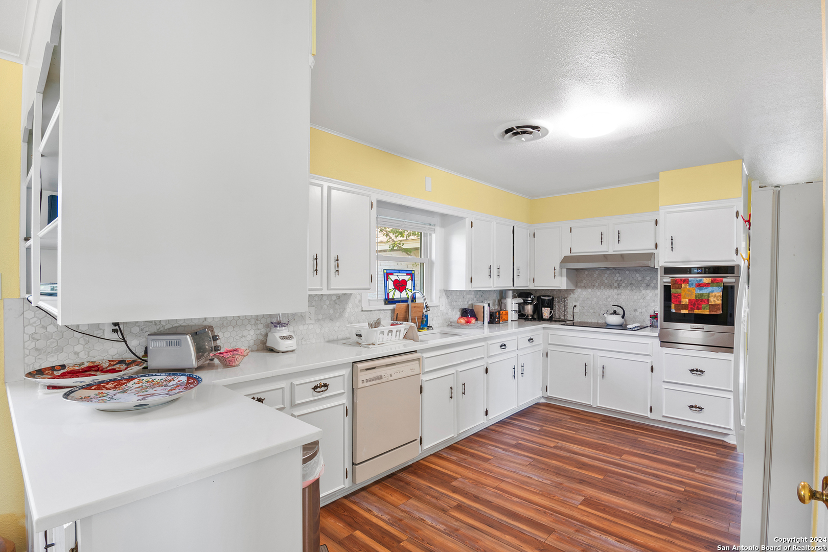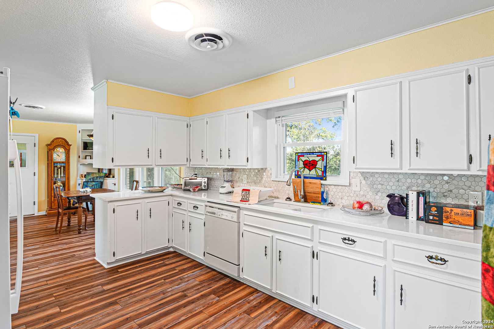 This delightful 3 bdr, 2 ba home has been updated to better-than-new condition! Sturdy vintage framing with new kitchen, bathroom, window, flooring, and painting updates. The thoughtful renovation keeps the best of a bygone time and couples it with granite, durable flooring, and light-filled rooms with energy efficient windows. Enormous back yard with covered patio hearkens to a more peaceful era. Enjoy the beauty and shade of the towering trees and the lush St. Augustine lawn and a generous two car garage and concrete driveway. Come make your home in this lovely neighborhood in the charming city of Hondo!