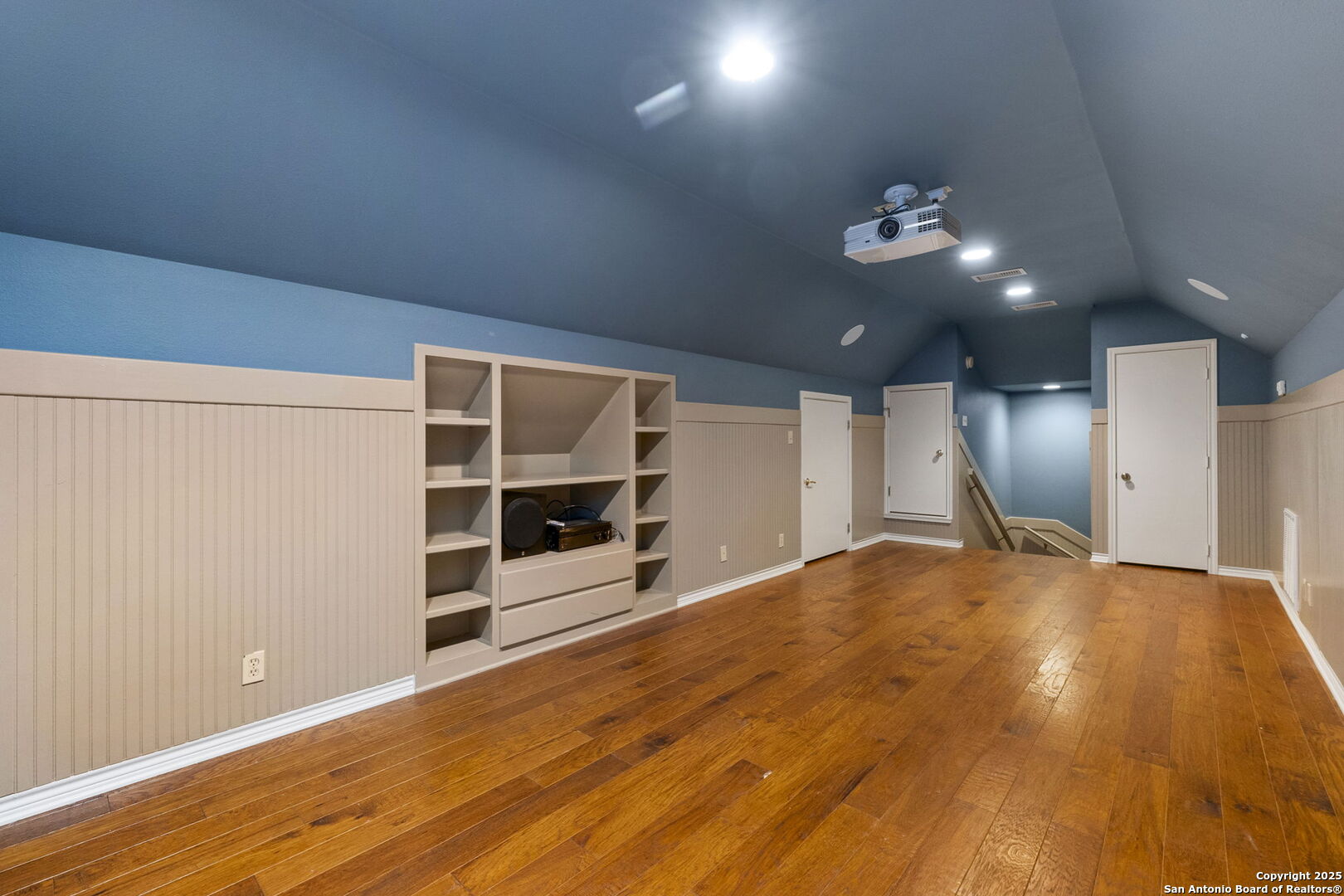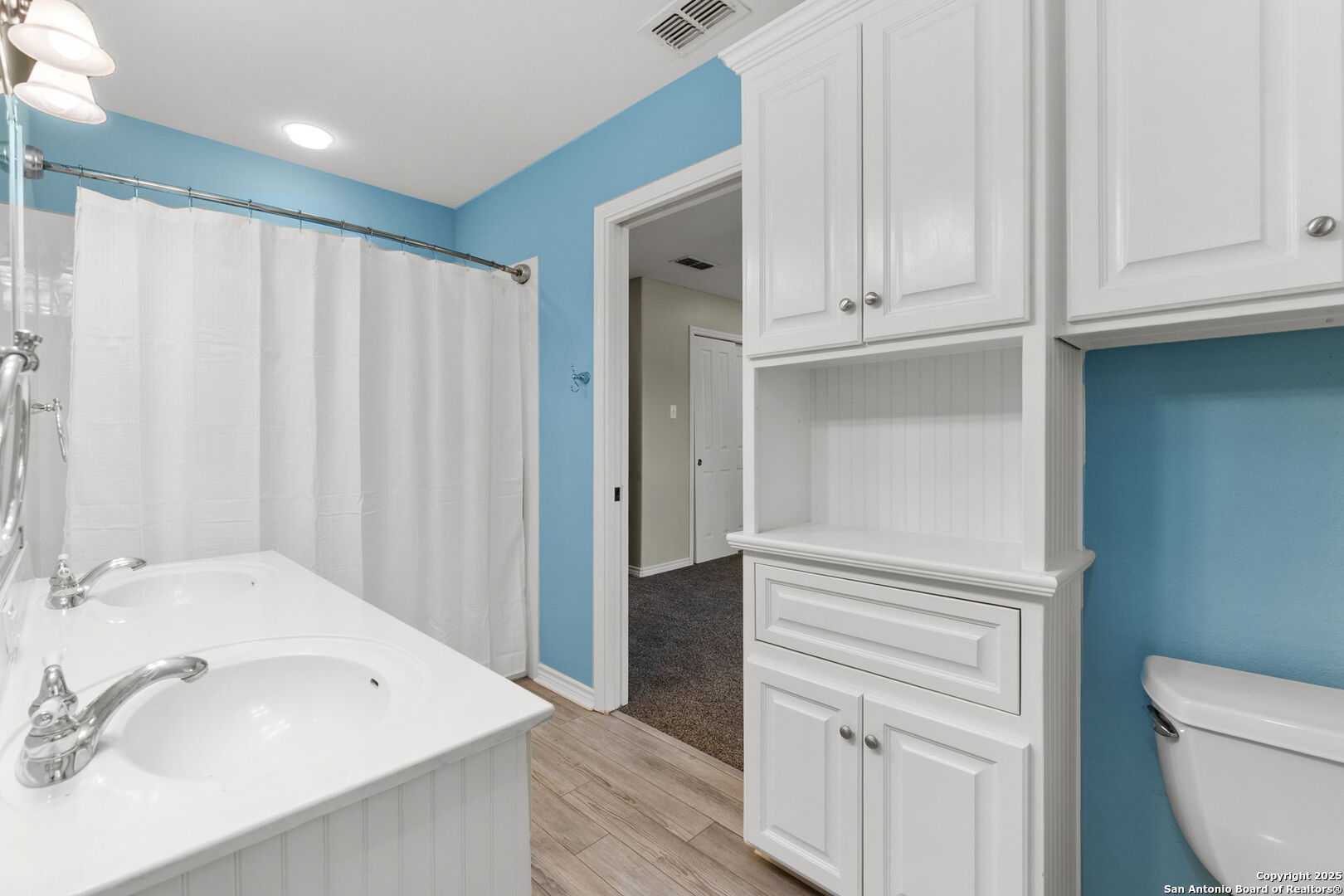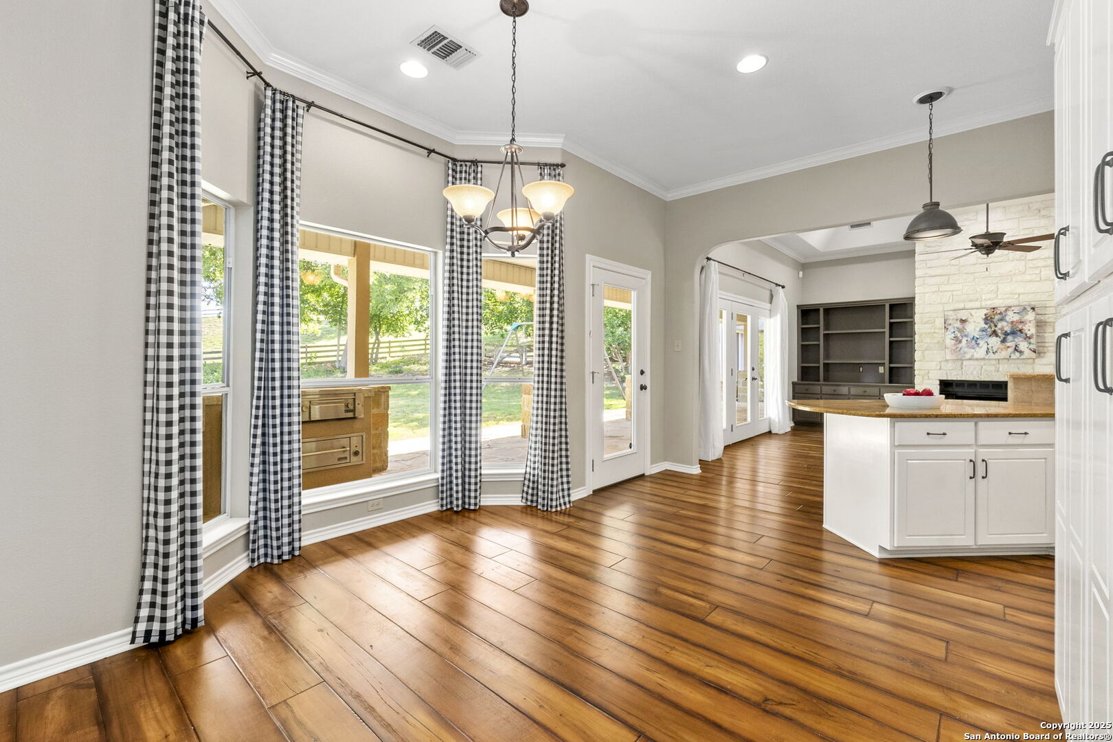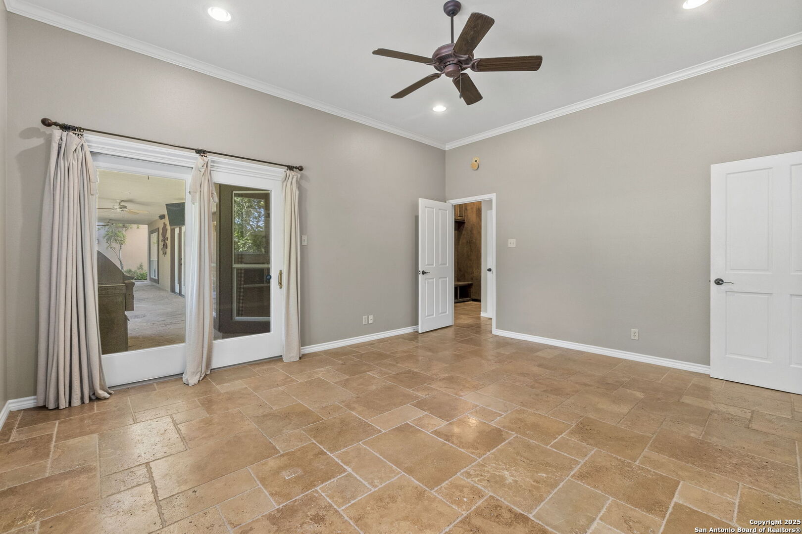 Price just improved-your dream home is now an even better value! Nestled in desirable Bluebell Estates, this stunning white stone home spans two residential lots, offering the perfect combination of in-town convenience & the serenity of country living-just a short walk to scenic Town Creek, ideal for kayaking & fishing right out your back door. Step inside to find beautiful hardwood floors, two stone wood-burning fireplaces, with custom built-ins throughout. The chef's kitchen is a culinary dream, featuring a built-in KitchenAid refrigerator, Wolf range, built-in KitchenAid oven with warming drawer-perfect for family meals or entertaining. The luxurious primary suite includes a spa-like ensuite with a frameless glass shower, soaking tub, & a closet with floor-to-ceiling custom built-ins. A second bedroom & full bath on the main level offer flexibility for multi-generational living. Entertain with ease on the oversized flagstone-covered back porch, complete with an outdoor kitchen, or relax in the courtyard by the firepit surrounded by multiple seating areas. The secondary living area boasts soaring two-story ceilings, a custom wet bar with copper accents, a show-stopping stone fireplace, & a dramatic iron chandelier. A hidden staircase leads to a media room along with two additional walk-in storage closets. Enjoy the built-in sound system extending from indoor living spaces to the back porch & hillside firepit, where rock speakers enhance every gathering. This one-of-a-kind home effortlessly blends luxury, comfort, and functionality-your perfect Hill Country lifestyle awaits!