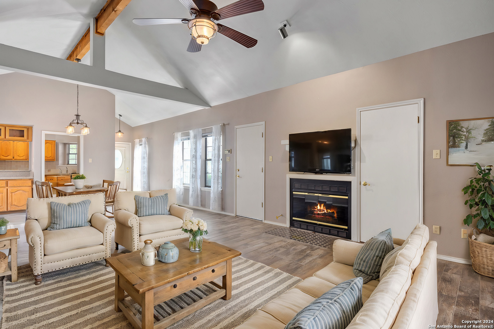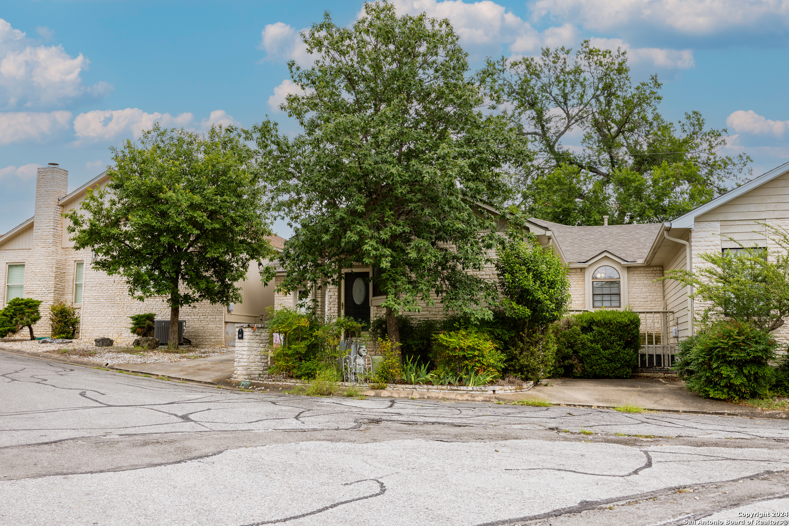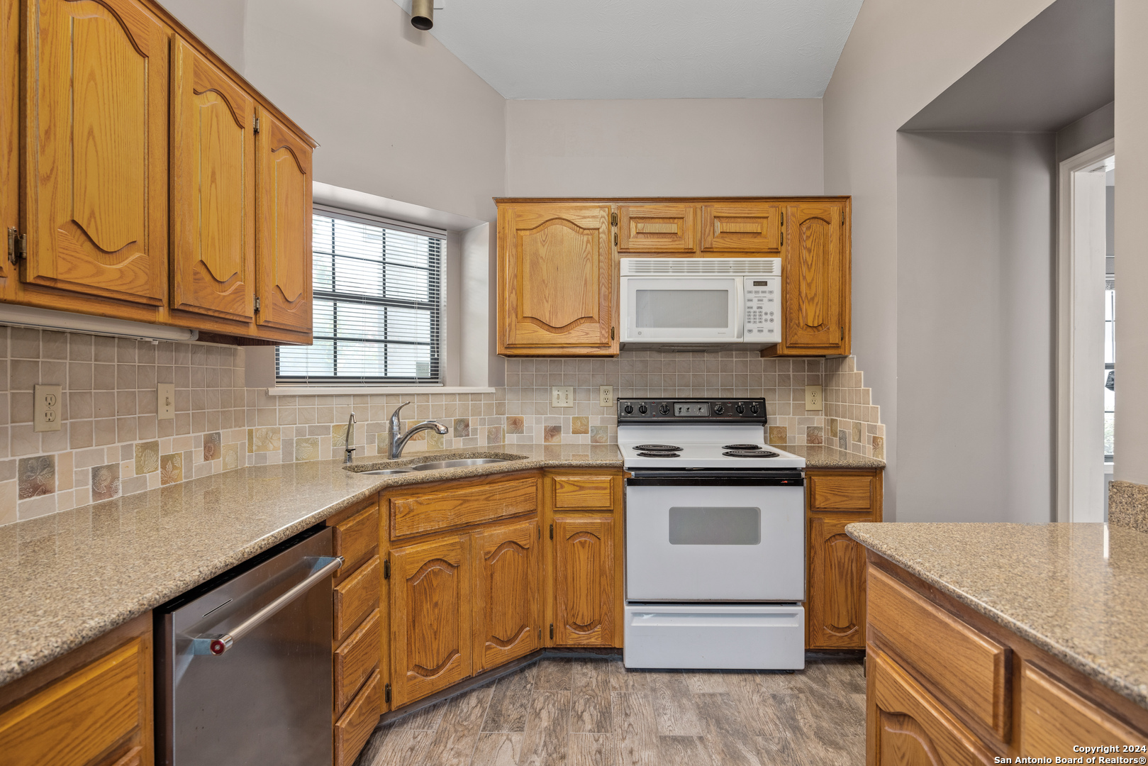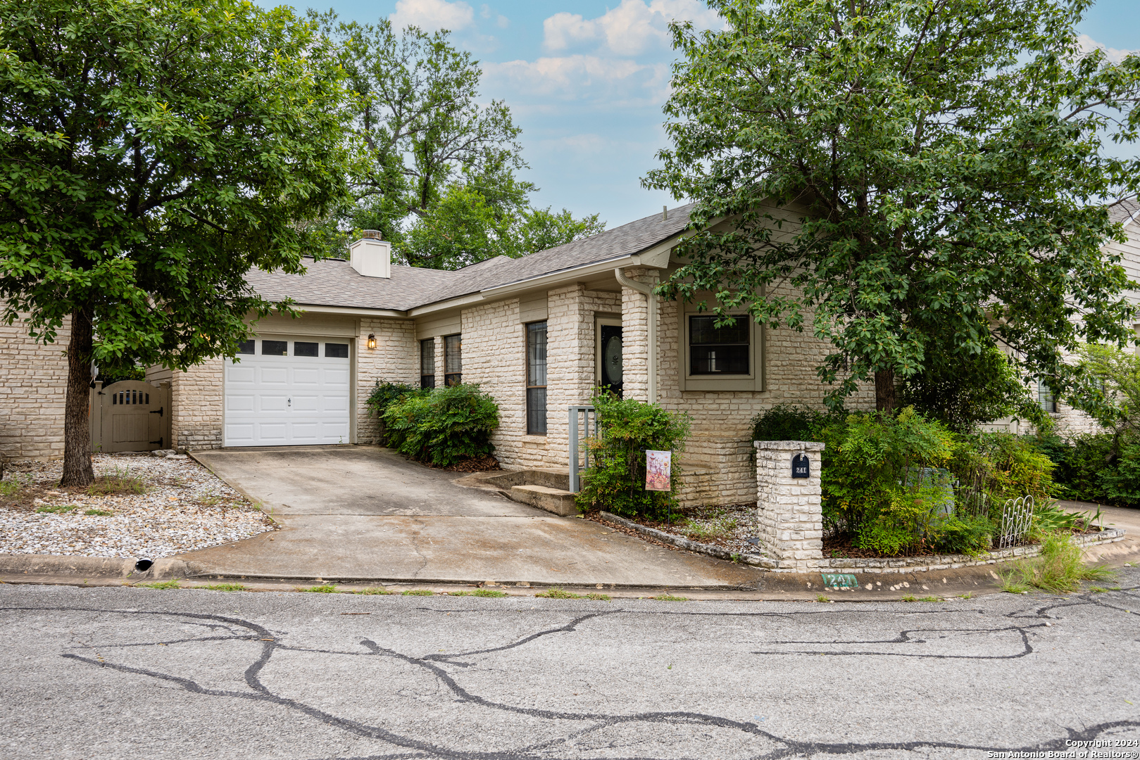 Conveniently located in a desirable neighborhood near schools and the heart of Kerrville! Embrace Hill Country living in this move-in ready, townhome. Vaulted ceilings, wood-look tile plank flooring, and new light fixtures featured through out. The kitchen boasts granite countertops, wood cabinets, and ample storage space. Unwind in the spacious living room with a cozy fireplace. Step outside to the large back patio or on to the separate front deck, perfect for outdoor enjoyment. The primary suite offers a soaking tub, dual vanities, and walk-in closet, plus access to the back patio.