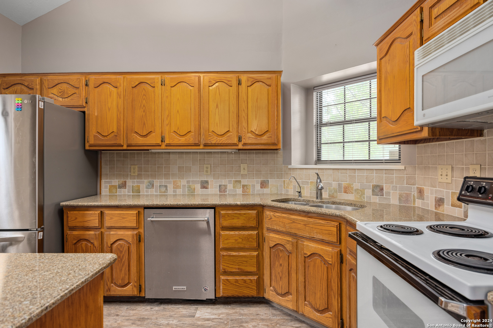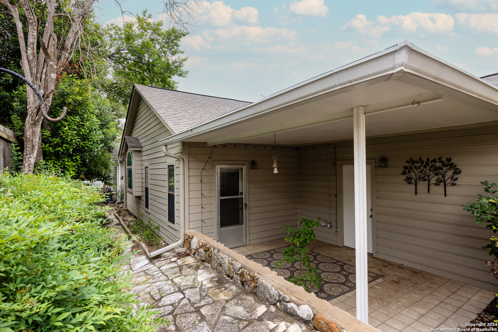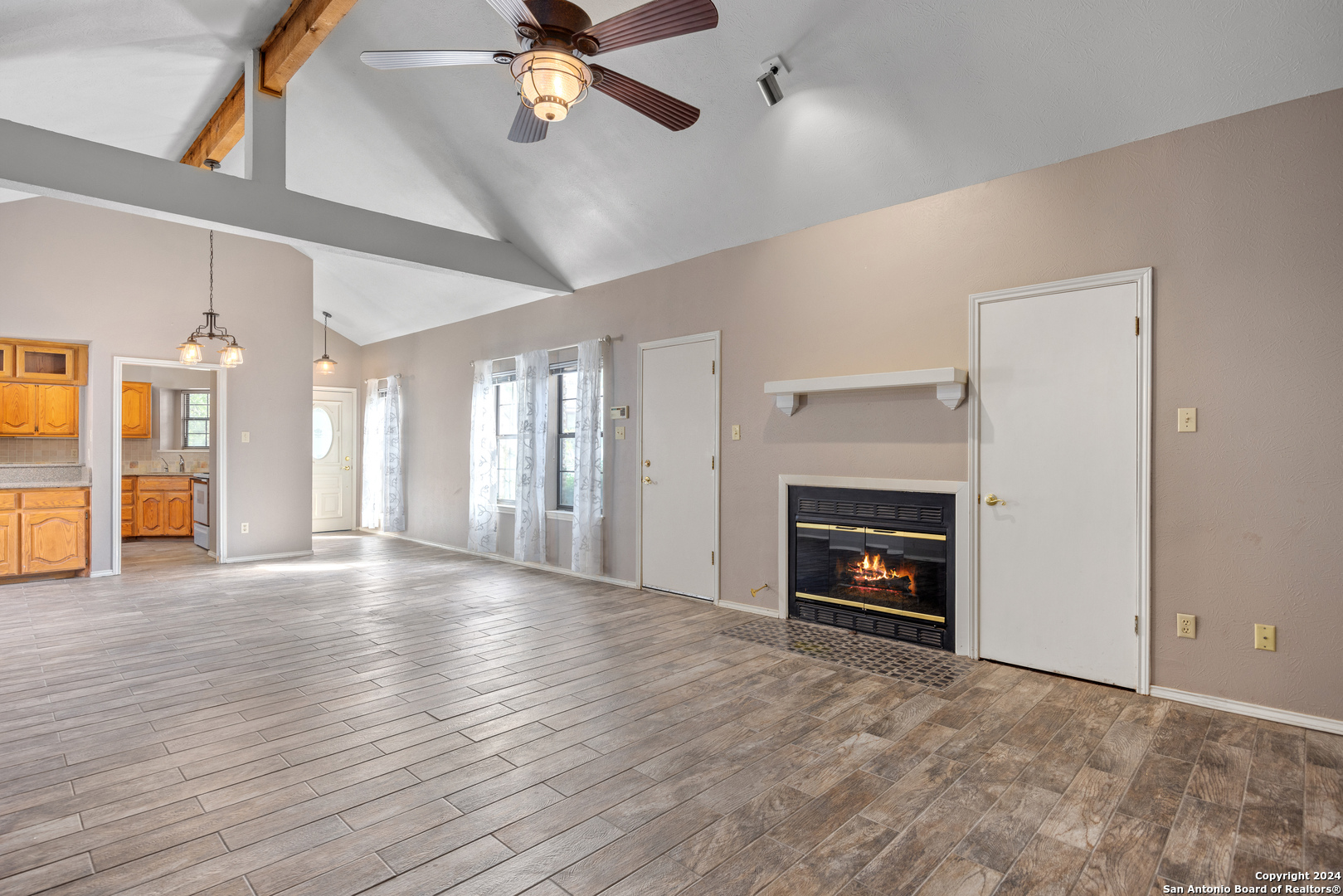 Conveniently located in a desirable neighborhood near schools and the heart of Kerrville! Embrace Hill Country living in this move-in ready, townhome. Vaulted ceilings, wood-look tile plank flooring, and new light fixtures featured through out. The kitchen boasts granite countertops, wood cabinets, and ample storage space. Unwind in the spacious living room with a cozy fireplace. Step outside to the large back patio or on to the separate front deck, perfect for outdoor enjoyment. The primary suite offers a soaking tub, dual vanities, and walk-in closet, plus access to the back patio.
