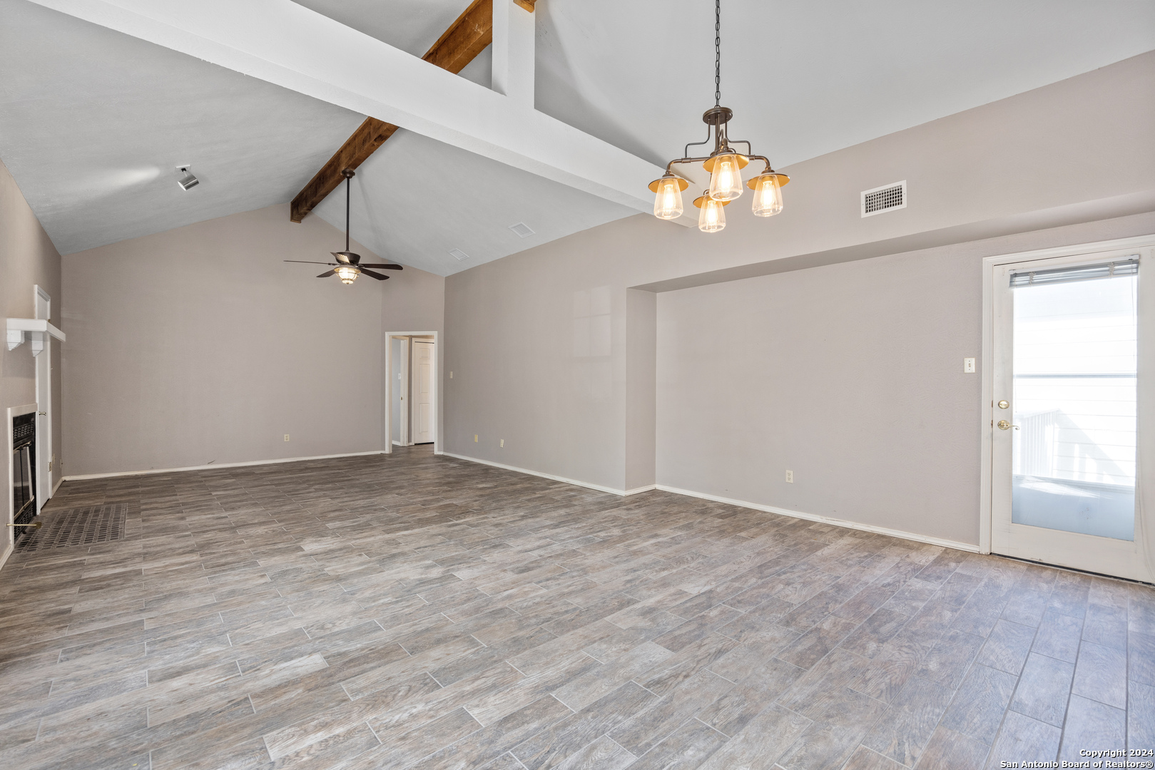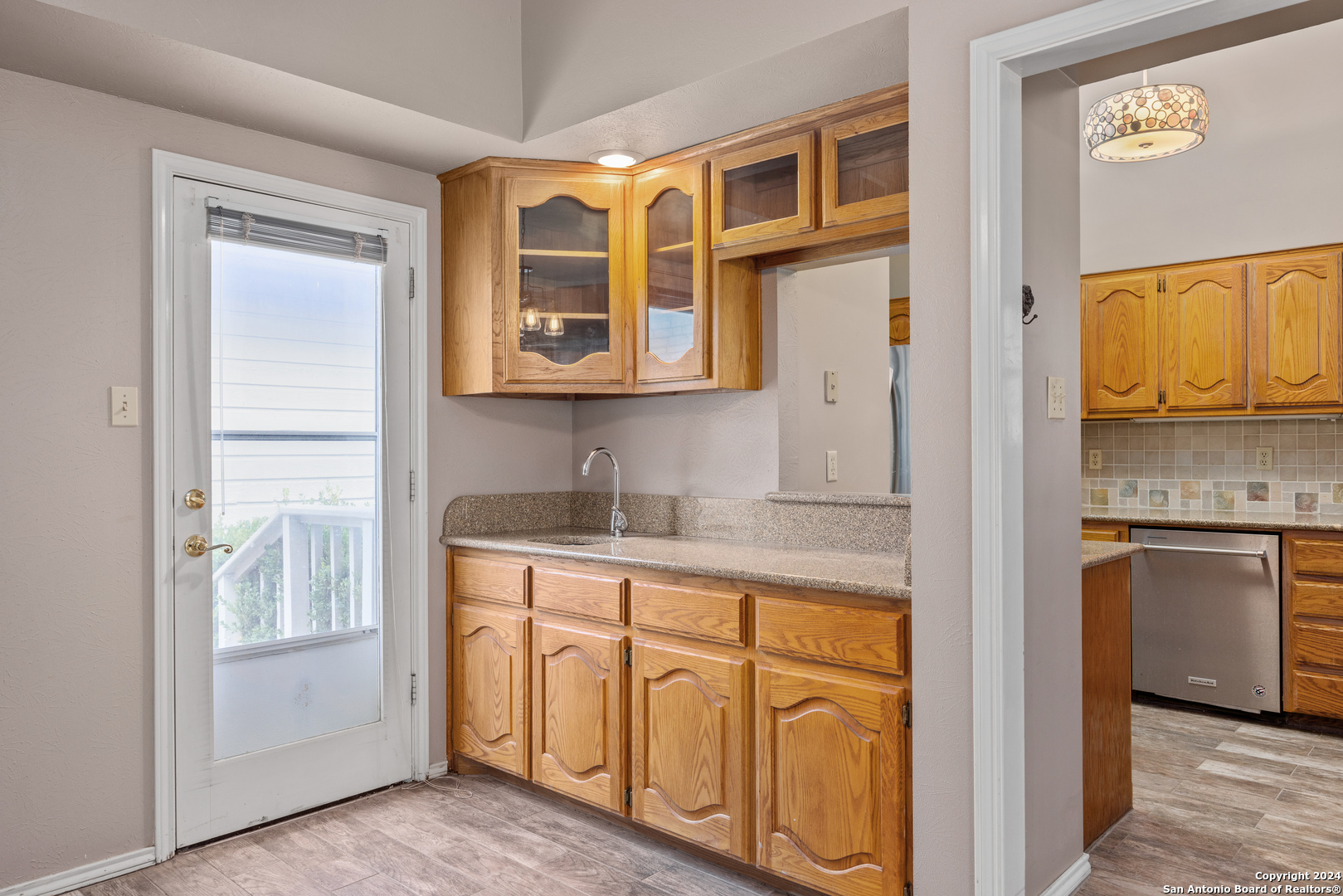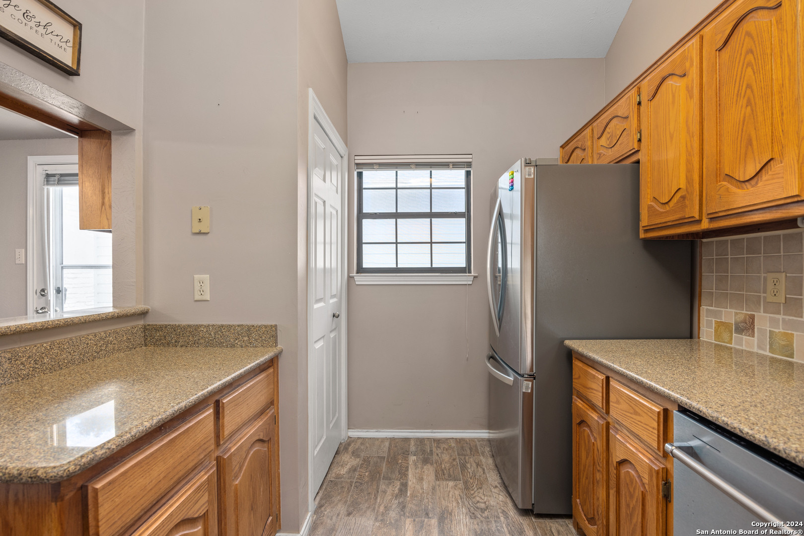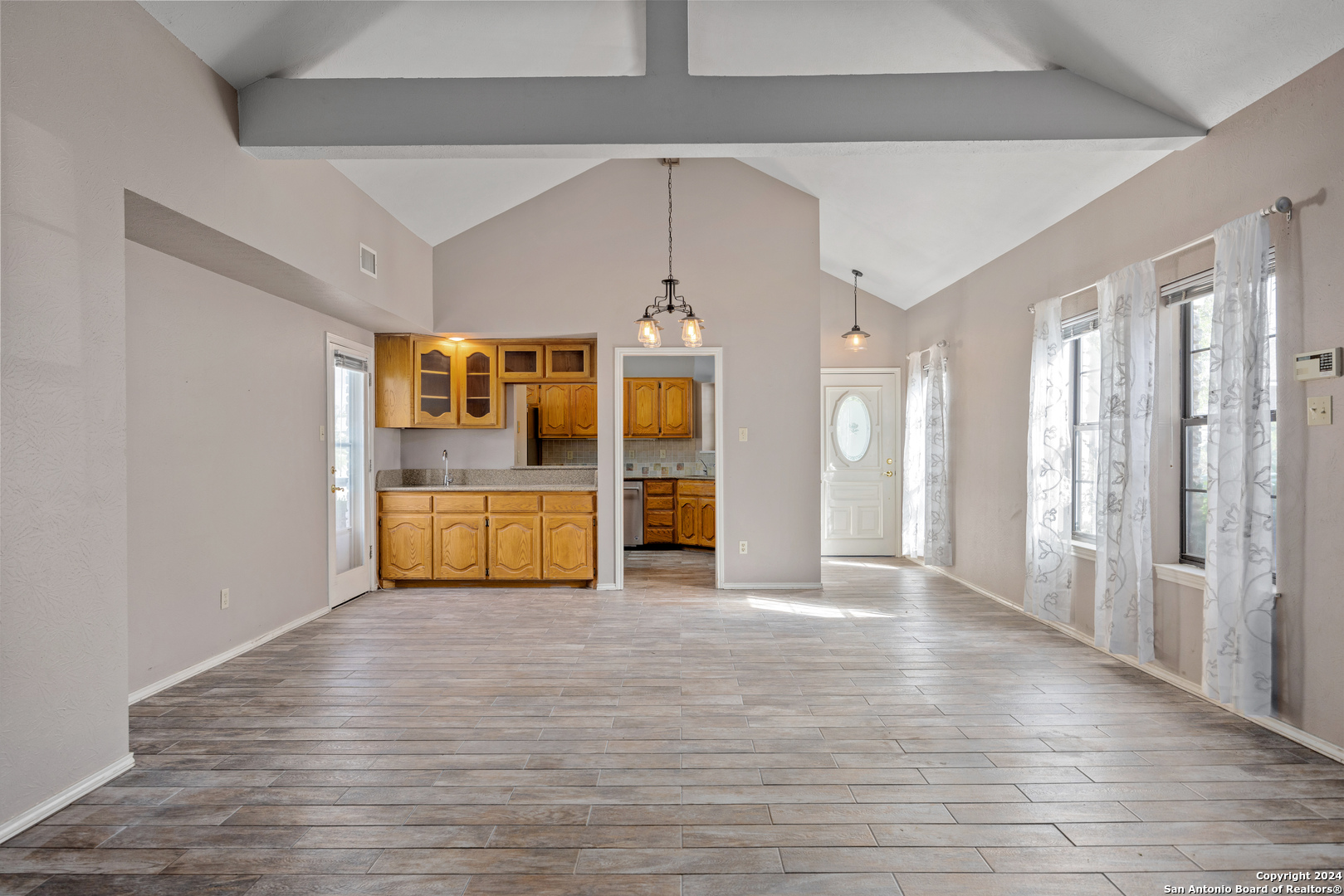 Conveniently located in a desirable neighborhood near schools and the heart of Kerrville! Embrace Hill Country living in this move-in ready, townhome. Vaulted ceilings, wood-look tile plank flooring, and new light fixtures featured through out. The kitchen boasts granite countertops, wood cabinets, and ample storage space. Unwind in the spacious living room with a cozy fireplace. Step outside to the large back patio or on to the separate front deck, perfect for outdoor enjoyment. The primary suite offers a soaking tub, dual vanities, and walk-in closet, plus access to the back patio.