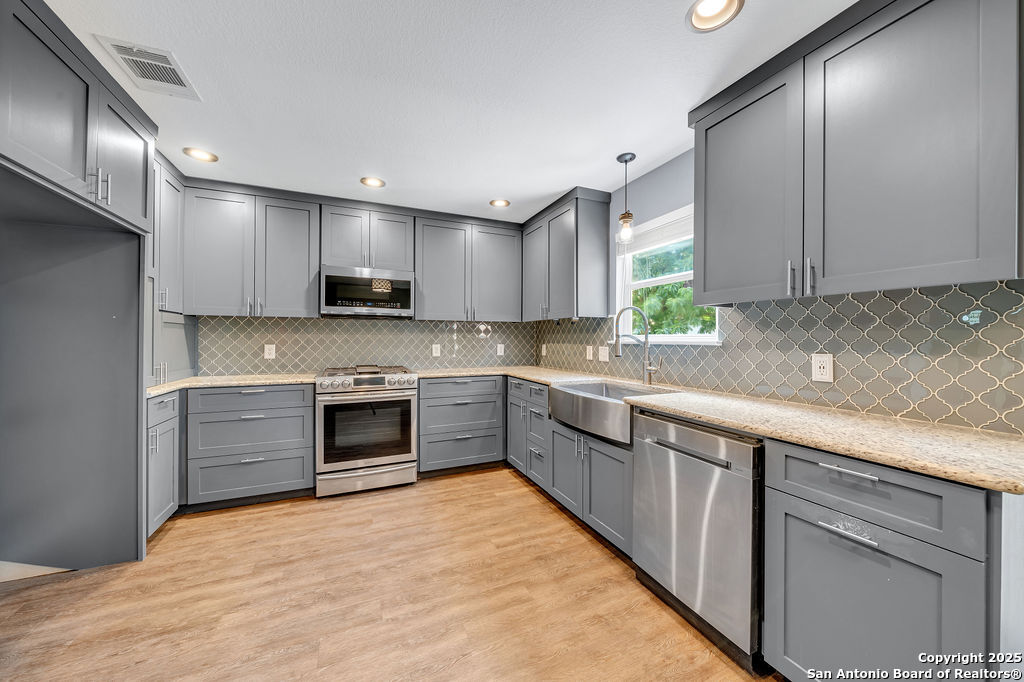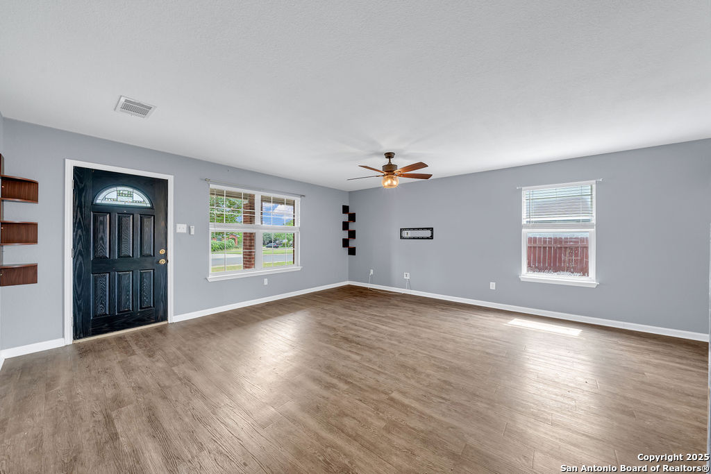 Located in a desirable no-HOA neighborhood near Plum Creek, this updated 3-bed, 2.5-bath home offers 2,208 sq ft of stylish, move-in-ready living. Major 2019 upgrades include $50K in enhancements, a new HVAC system, and fresh paint; a new roof was added in 2017. The kitchen features stainless steel appliances, custom soft-close cabinetry, and granite countertops. Durable vinyl wood flooring, modern lighting, and upgraded hardware run throughout the home. Luxurious bathrooms include marble counters and tiled showers. The flexible floor plan offers a formal dining room, loft, and a bonus room off the primary suite-ideal as an office, nursery, or 4th bedroom. Outside, enjoy a private backyard with a covered patio, large shed, and privacy fence. With its modern upgrades and great location, this home is a standout value.