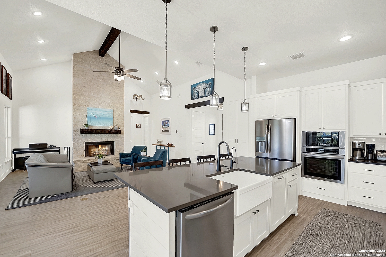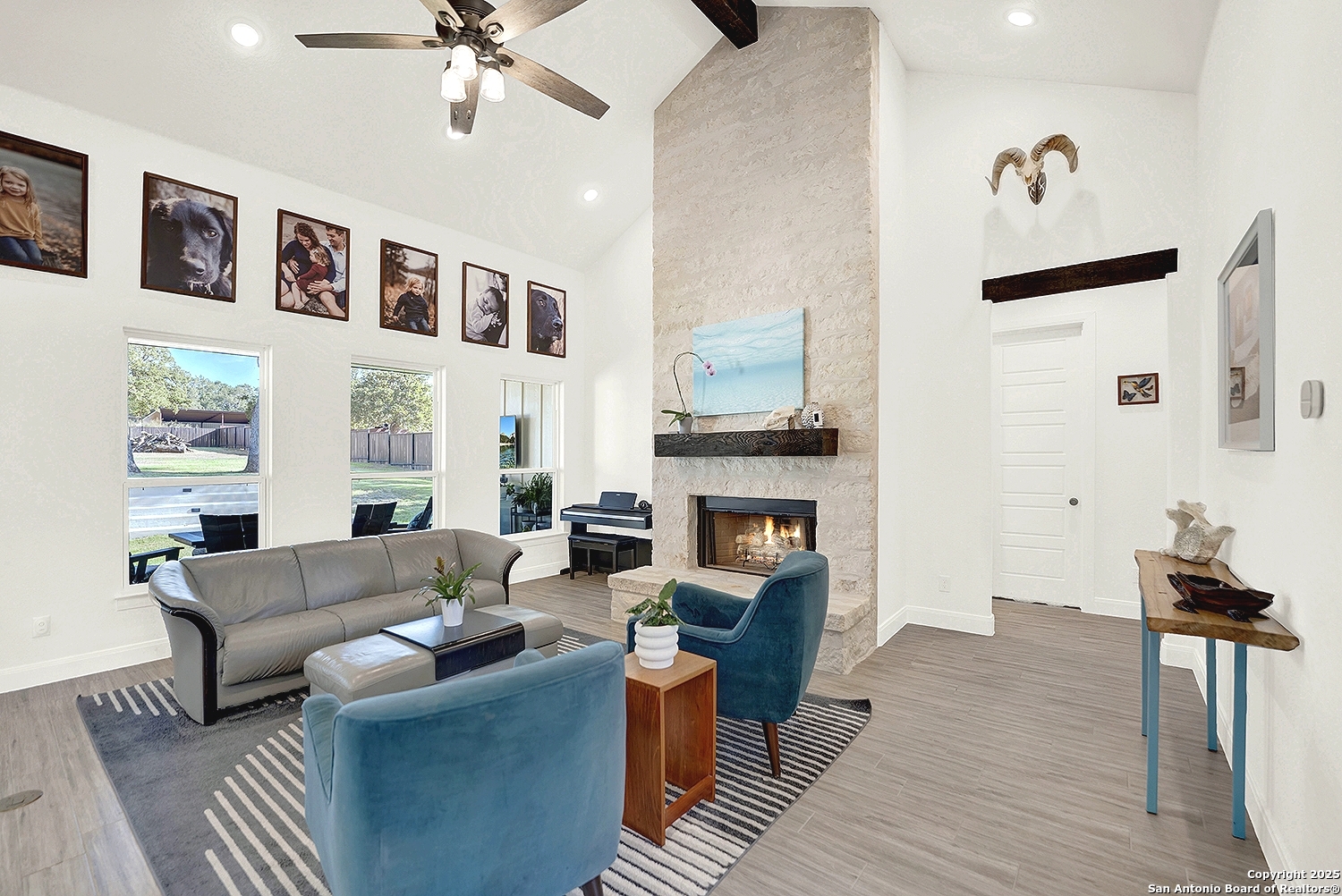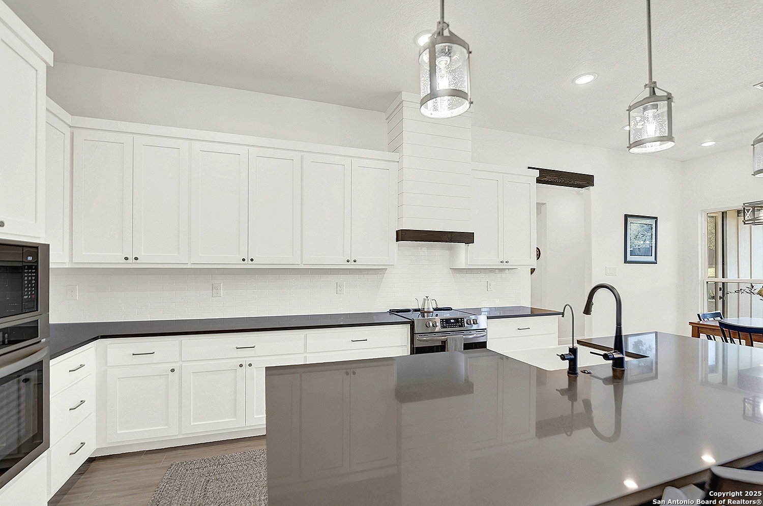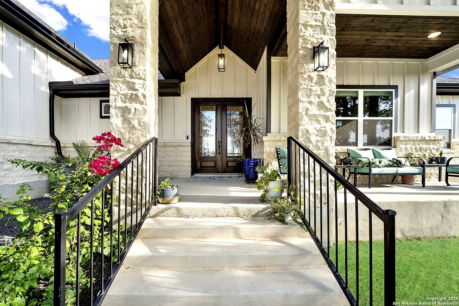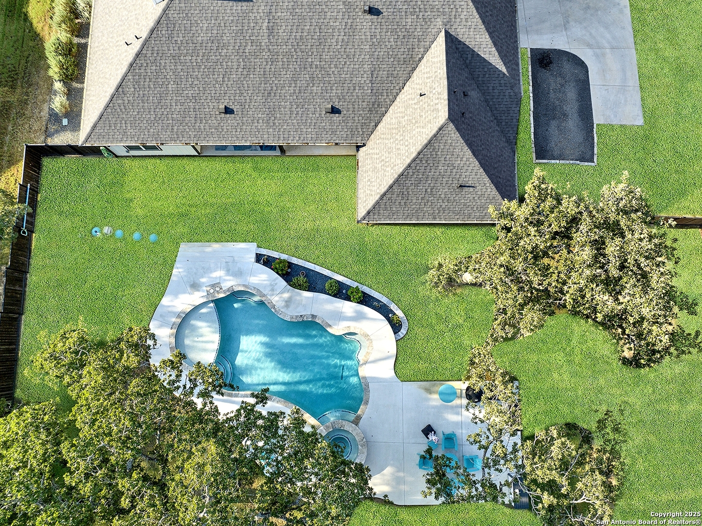 Exquisite 4-bedroom residence nestled on a full acre in the prestigious Timbers subdivision within La Vernia ISD. This thoughtfully designed home offers a sophisticated open floor plan with soaring ceilings and an expansive bonus room ideal for a media retreat or game room. The gourmet kitchen showcases granite countertops, custom cabinetry, and a remarkable hidden walk-in pantry-cleverly concealed behind what appears to be double cabinets. Propane has been added to the home, offering additional convenience and efficiency. The private master suite provides a serene escape with a spa-inspired bath, a generous walk-in closet, and access to the covered back patio. Step outside to your own backyard oasis featuring an oversized yard and sparkling pool surrounded by mature oaks-perfect for refined entertaining or peaceful relaxation. This home has a spacious 3-car garage with sleek epoxy-sealed flooring and offers so much more- it truly must be seen in person!