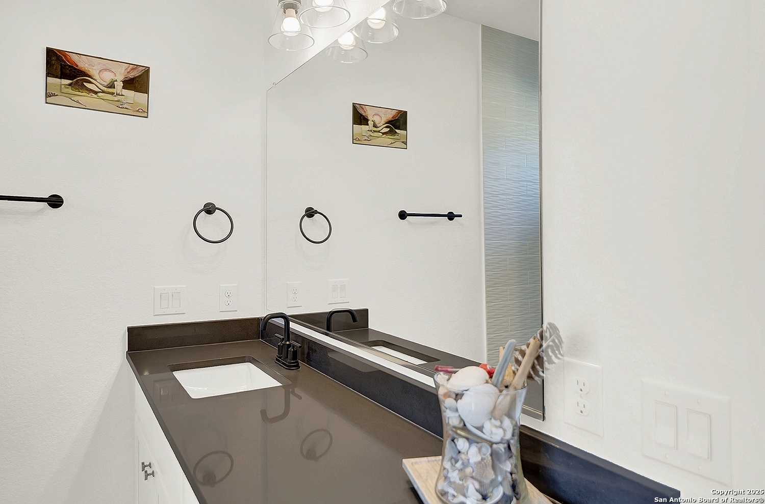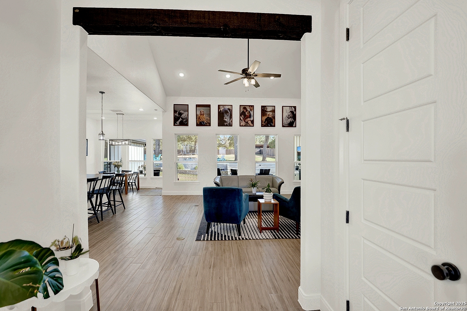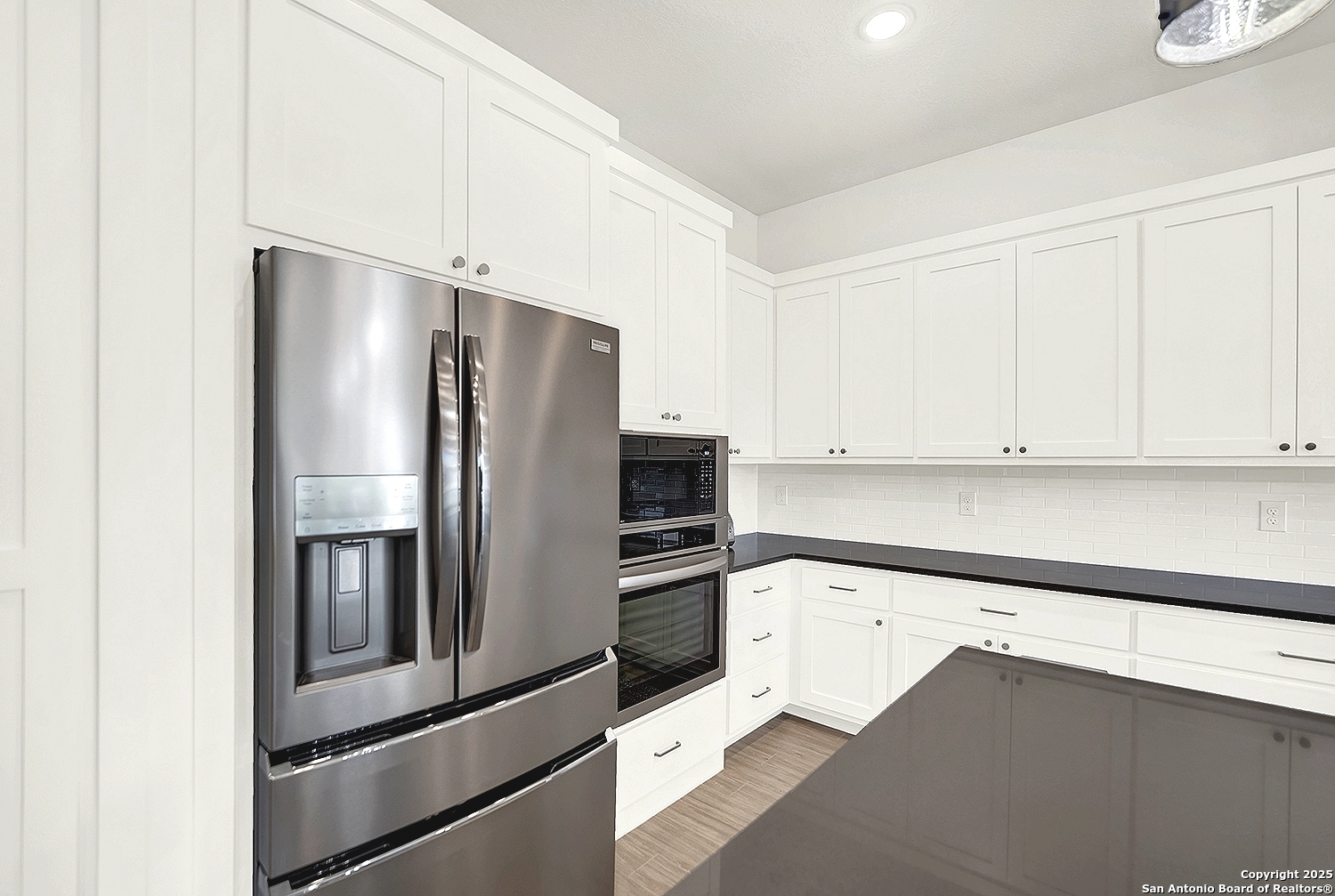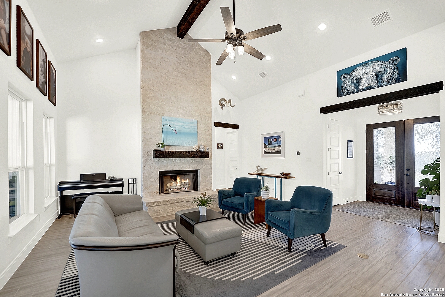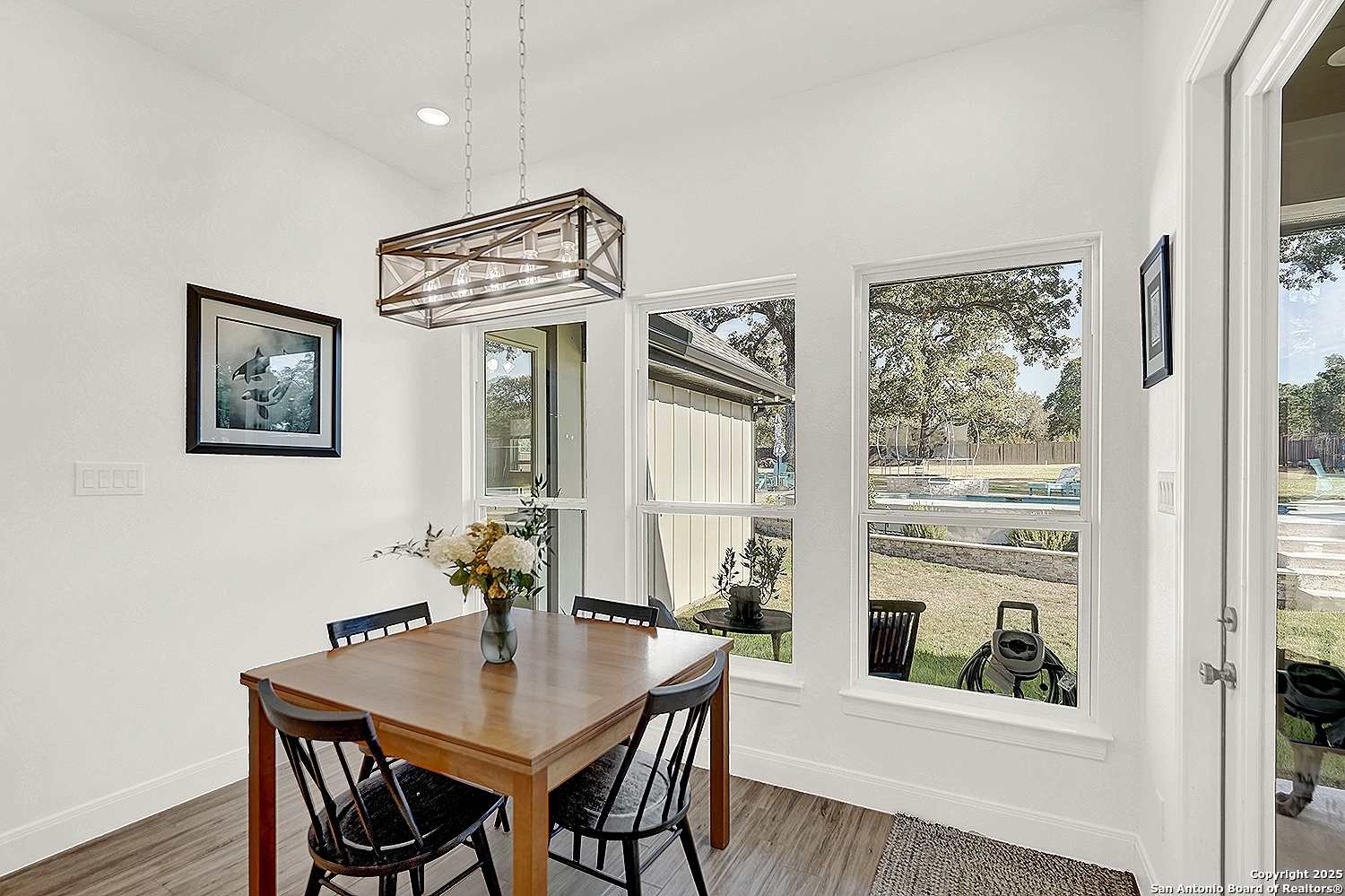 Exquisite 4-bedroom residence nestled on a full acre in the prestigious Timbers subdivision within La Vernia ISD. This thoughtfully designed home offers a sophisticated open floor plan with soaring ceilings and an expansive bonus room ideal for a media retreat or game room. The gourmet kitchen showcases granite countertops, custom cabinetry, and a remarkable hidden walk-in pantry-cleverly concealed behind what appears to be double cabinets. Propane has been added to the home, offering additional convenience and efficiency. The private master suite provides a serene escape with a spa-inspired bath, a generous walk-in closet, and access to the covered back patio. Step outside to your own backyard oasis featuring an oversized yard and sparkling pool surrounded by mature oaks-perfect for refined entertaining or peaceful relaxation. This home has a spacious 3-car garage with sleek epoxy-sealed flooring and offers so much more- it truly must be seen in person!