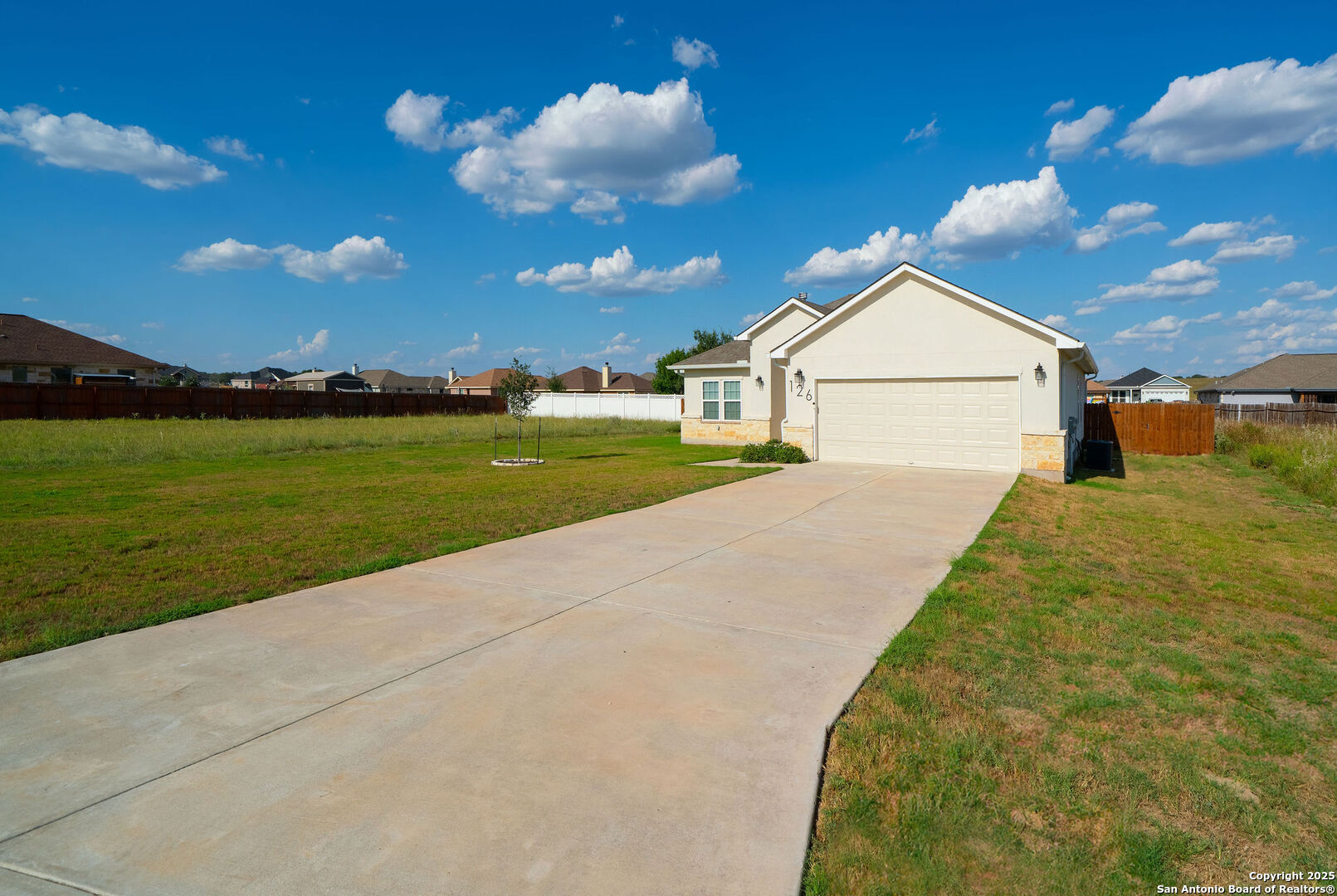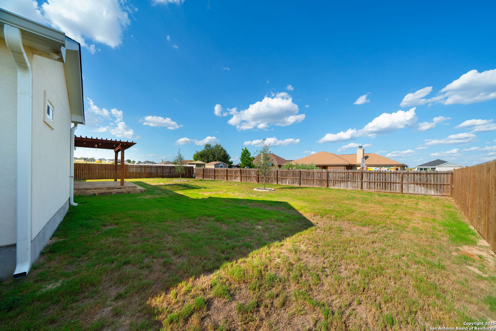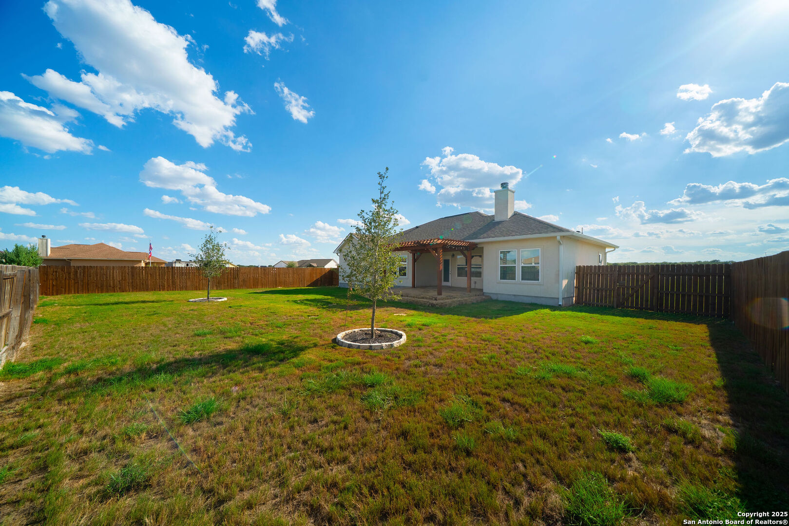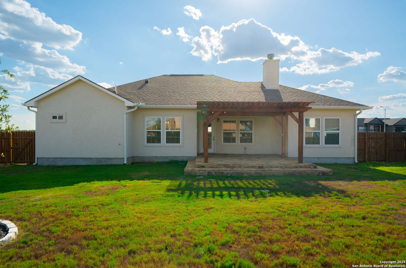 Welcome to this stunning 3 bedroom, 2 bathroom home located just 5 minutes from the city of La Vernia. Built just two years ago, this residence offers the perfect blend of modern design and timeless comfort. Situated on a spacious 0.3-acre lot with a privacy fence, the property provides both charm and seclusion. Step inside to find an open floor plan designed for effortless living and entertaining. The inviting living room showcases a beautiful rock fireplace, while the kitchen features a large island that seamlessly connects to the dining and living areas. Natural light flows throughout the home, highlighting the thoughtful upgrades and finishes. The primary suite is a true retreat with its vaulted ceiling and spa-like bathroom, with a double vanity and a stunning walk-in shower. Step outside to enjoy a covered back patio enhanced with a pergola, perfect for relaxing or entertaining in your private backyard. Don't miss the opportunity to make this beautiful La Vernia home your own-schedule your showing today!