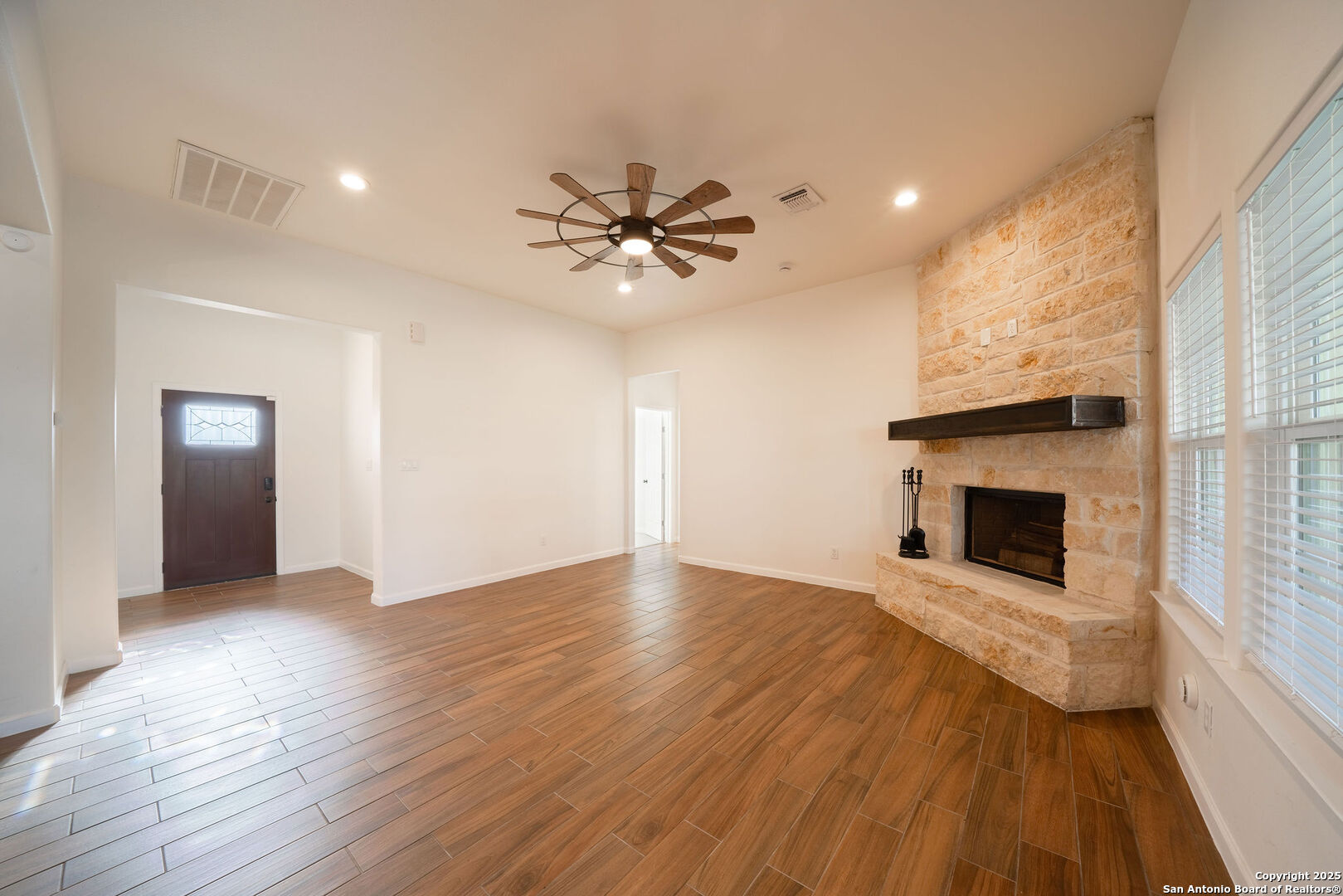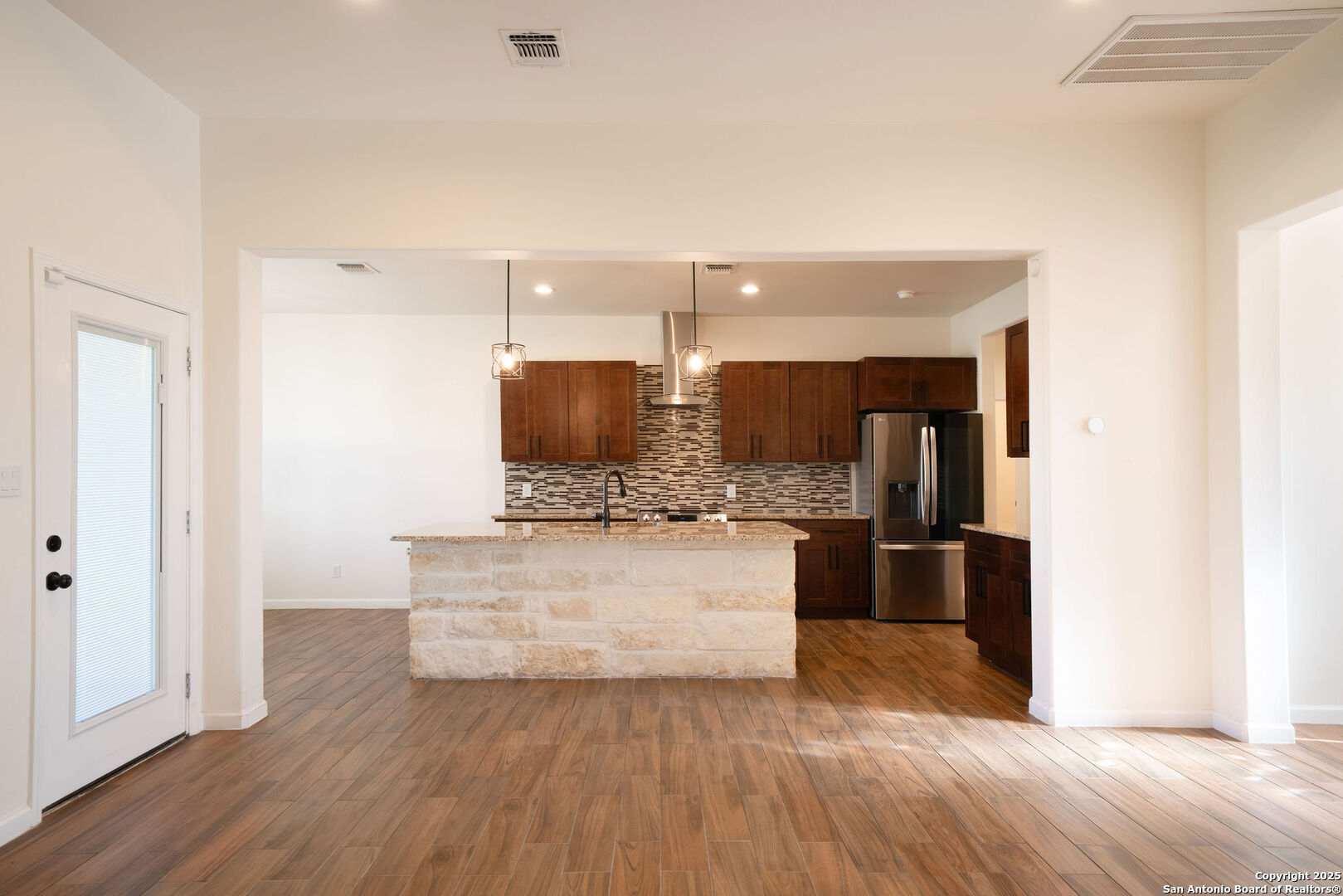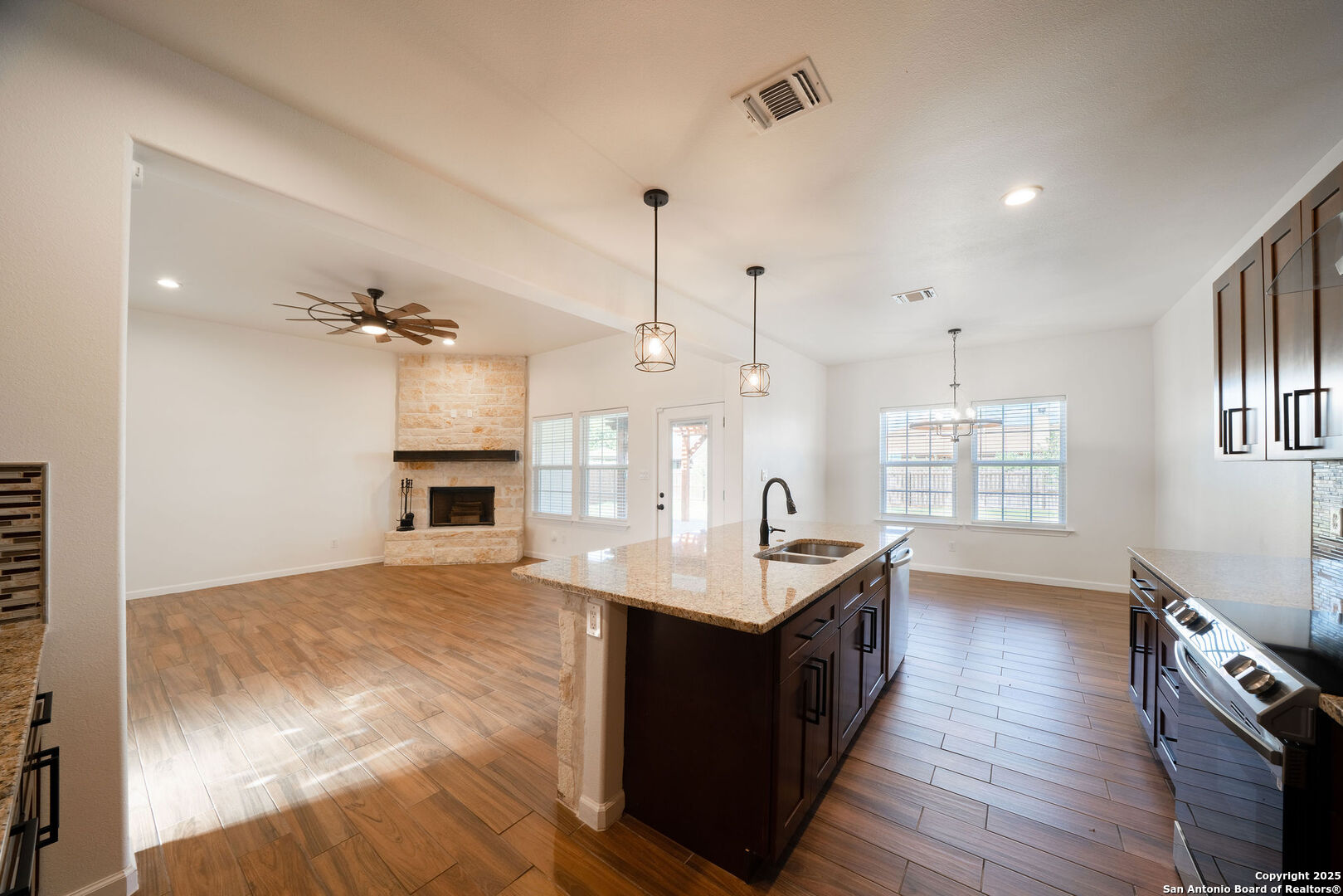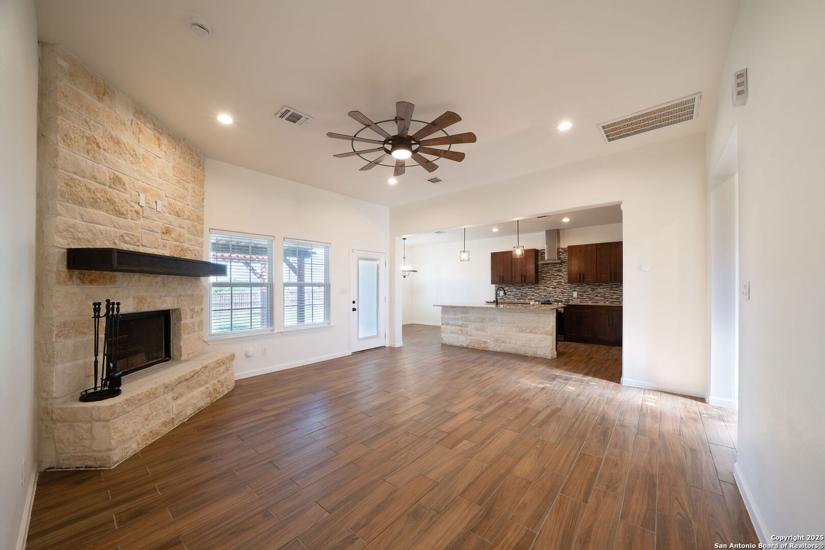 Welcome to this stunning 3 bedroom, 2 bathroom home located just 5 minutes from the city of La Vernia. Built just two years ago, this residence offers the perfect blend of modern design and timeless comfort. Situated on a spacious 0.3-acre lot with a privacy fence, the property provides both charm and seclusion. Step inside to find an open floor plan designed for effortless living and entertaining. The inviting living room showcases a beautiful rock fireplace, while the kitchen features a large island that seamlessly connects to the dining and living areas. Natural light flows throughout the home, highlighting the thoughtful upgrades and finishes. The primary suite is a true retreat with its vaulted ceiling and spa-like bathroom, with a double vanity and a stunning walk-in shower. Step outside to enjoy a covered back patio enhanced with a pergola, perfect for relaxing or entertaining in your private backyard. Don't miss the opportunity to make this beautiful La Vernia home your own-schedule your showing today!