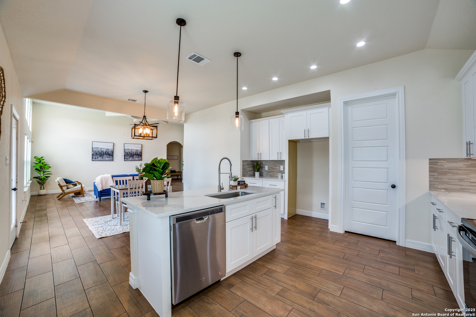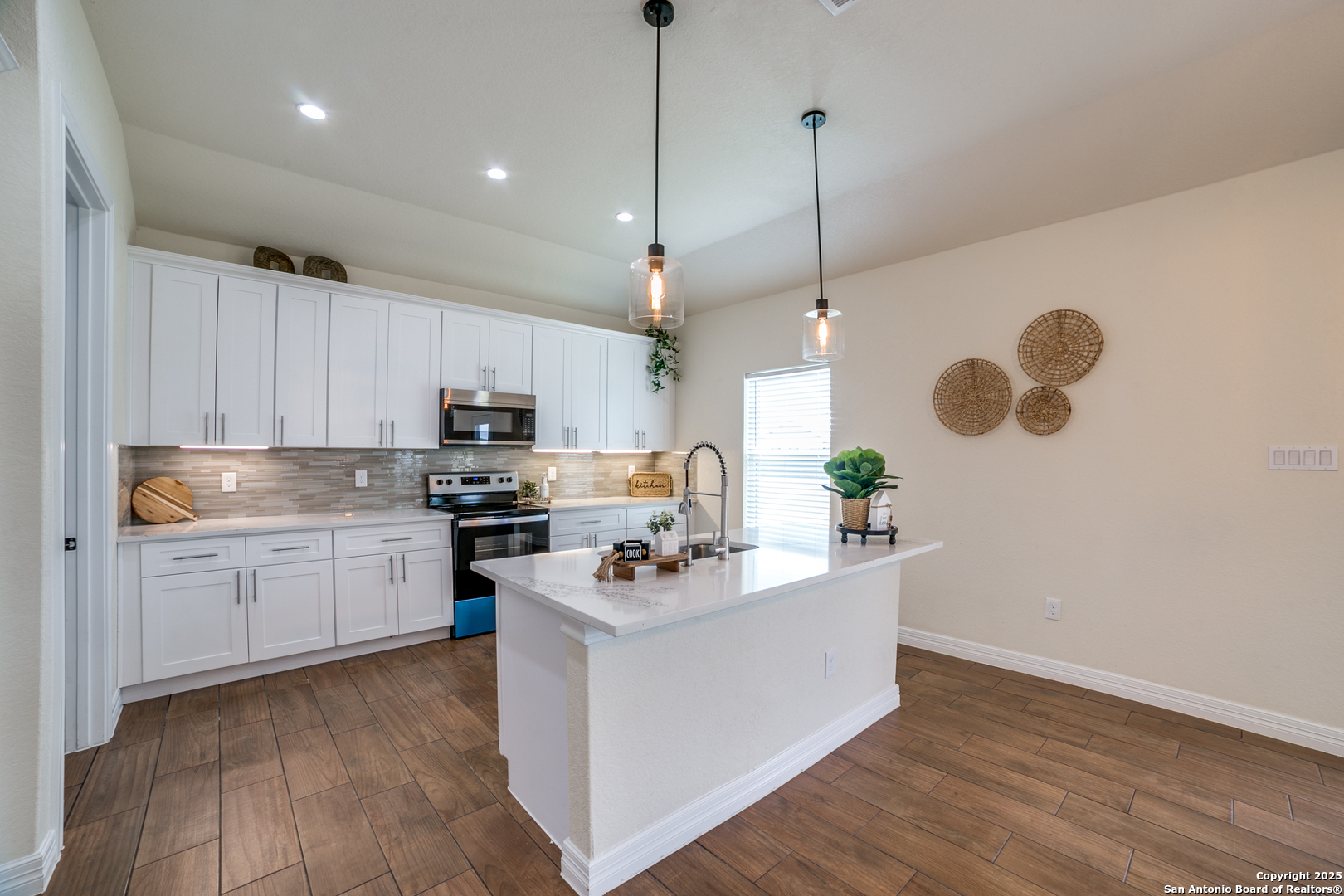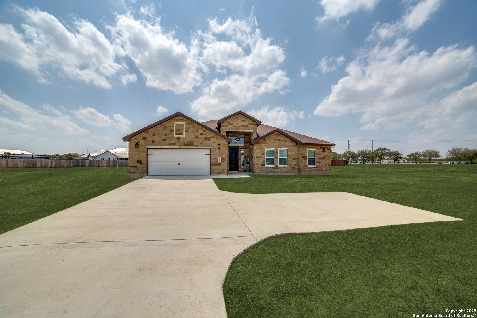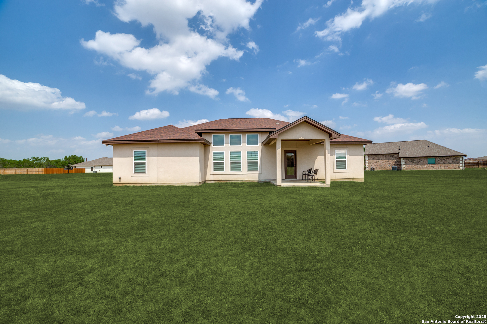 Welcome to The Granberg in Lytle, TX! Experience peaceful country living just 30 minutes from downtown San Antonio. This beautiful home features 3 spacious bedrooms and 3 full baths. With high ceilings and tile flooring throughout, it offers a bright and open atmosphere, enhanced by plenty of natural light throughout the entire home. The living area showcases stunning coffered ceilings, adding a touch of elegance to the space. The large kitchen comes with a walk-in pantry, perfect for all your storage needs. The expansive master suite includes a luxurious en-suite bathroom with a stunning walk-in shower and glass shower door, along with a separate bath and closet for added convenience. Situated on a generous 0.73-acre lot, the property boasts a large, private backyard with plenty of room for outdoor activities. Enjoy the spacious covered back patio, located on a quiet cul-de-sac, making it an ideal space for entertaining. With plenty of privacy, this home is also ready for a pool this summer!