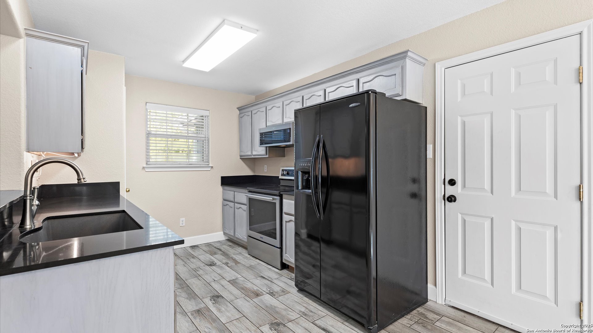 Looking to downsize without giving up space for your hobbies and toys? This Lake McQueeney Estates gem is the one! Single-story home featuring 3 Bedrooms and 2 full Baths, thoughtfully remodeled with stylish tile and wood-look flooring throughout. The modern Kitchen and beautifully updated Bathrooms add a fresh, move-in ready feel. Step outside to your backyard retreat, complete with a brand-new large extended patio and pergola-perfect for entertaining or unwinding in privacy, thanks to the 6 ft. fenced yard. The circular drive and extended driveway with an 8 ft. sliding fence door provide easy access to the back where you will also find a double-walled, insulated Shop with A/C, ideal for projects, storage, or hobbies, plus plenty of parking for your boat, RV, or multiple vehicles. Sitting on just over an acre, this property is beautifully landscaped front and back, offering both charm and functionality.
