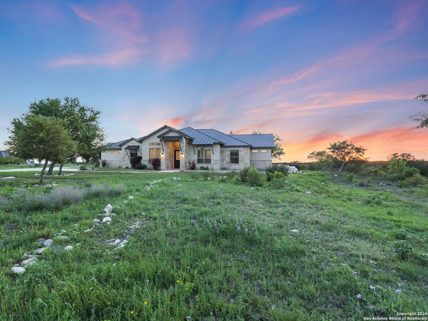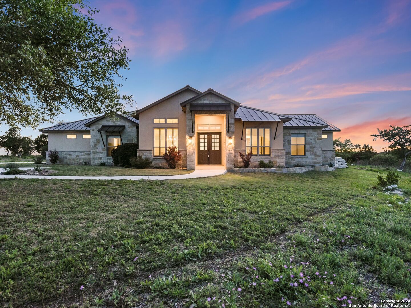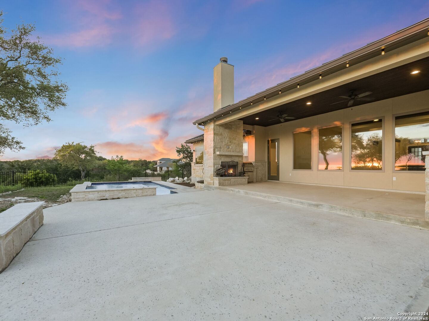 Welcome to your own personal paradise in the highly sought-after Summit Ridge Subdivision in Mico, Texas. This single-story gem offers the perfect blend of luxury, comfort, and breathtaking million-dollar views. Sitting on 3.3 Acres accompanied with 4 spacious bedrooms, 3.5 baths, and a generous 3,494 square feet of living space, this home is designed to accommodate your every need. As you step inside, you'll be greeted by an open and inviting floor plan that seamlessly flows from one room to the next. The heart of the home is the stunning gourmet kitchen, complete with top-of-the-line appliances, sleek countertops, and ample family/living space. Indulge yourself in the ultimate relaxation in your own private oasis. Step out onto the expansive backyard and discover a resort-like setting that will leave you in awe. Take a dip in the sparkling pool, unwind in the soothing hot tub under the starlit sky, or gather around the outdoor fireplace and grill for cozy evenings. The spacious fenced backyard also provides a safe haven for children and pets to play freely. This home is an entertainer's dream with multiple indoor/outdoor dining areas, perfect for hosting. The gated Summit Ridge Subdivision offers a peaceful and serene setting, nestled on an expansive 3.3 acres, this property provides all the privacy and tranquility one may need. With the front of the home facing the East and the rear-facing the West, the breathtaking views of rolling hills, sunsets, and lush landscapes are visible right from the comfort of your own home. Don't miss this incredible opportunity to own a true gem in Summit Ridge/Medina Lake. With its desirable location, luxurious amenities, and captivating charm, this home is move-in ready. Schedule your private tour today and prepare to be impressed by everything this property has to offer.