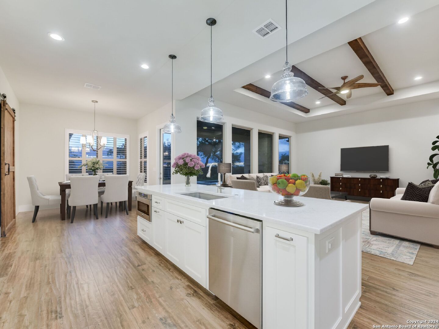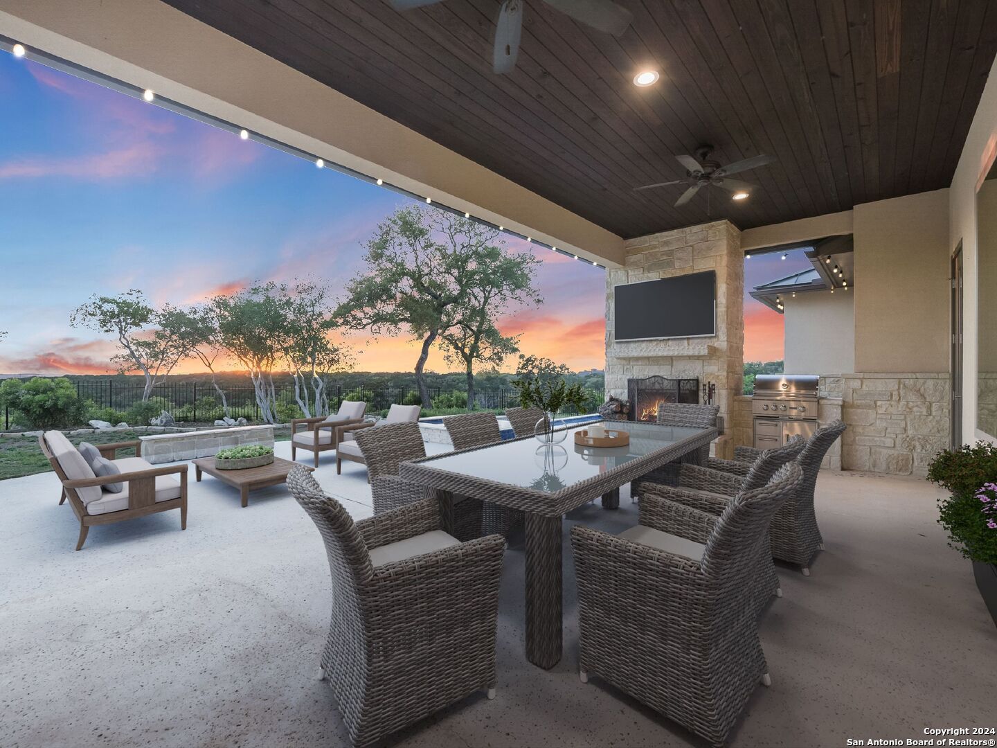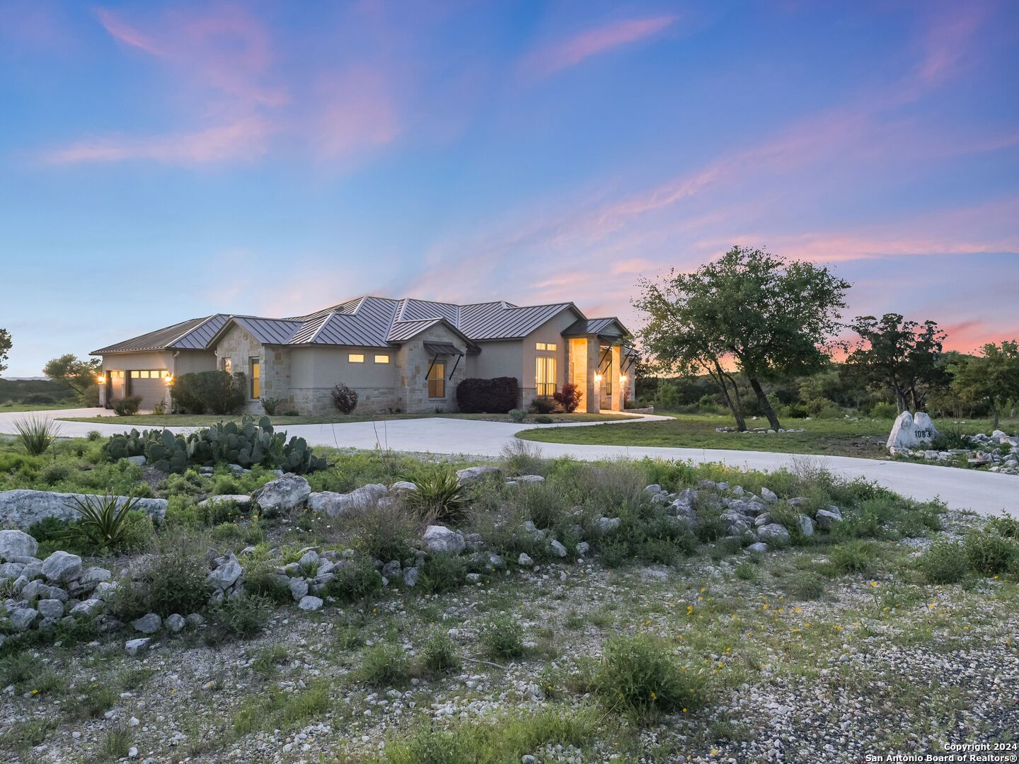 Welcome to your own personal paradise in the highly sought-after Summit Ridge Subdivision in Mico, Texas. This single-story gem offers the perfect blend of luxury, comfort, and breathtaking million-dollar views. Sitting on 3.3 Acres accompanied with 4 spacious bedrooms, 3.5 baths, and a generous 3,494 square feet of living space, this home is designed to accommodate your every need. As you step inside, you'll be greeted by an open and inviting floor plan that seamlessly flows from one room to the next. The heart of the home is the stunning gourmet kitchen, complete with top-of-the-line appliances, sleek countertops, and ample family/living space. Indulge yourself in the ultimate relaxation in your own private oasis. Step out onto the expansive backyard and discover a resort-like setting that will leave you in awe. Take a dip in the sparkling pool, unwind in the soothing hot tub under the starlit sky, or gather around the outdoor fireplace and grill for cozy evenings. The spacious fenced backyard also provides a safe haven for children and pets to play freely. This home is an entertainer's dream with multiple indoor/outdoor dining areas, perfect for hosting. The gated Summit Ridge Subdivision offers a peaceful and serene setting, nestled on an expansive 3.3 acres, this property provides all the privacy and tranquility one may need. With the front of the home facing the East and the rear-facing the West, the breathtaking views of rolling hills, sunsets, and lush landscapes are visible right from the comfort of your own home. Don't miss this incredible opportunity to own a true gem in Summit Ridge/Medina Lake. With its desirable location, luxurious amenities, and captivating charm, this home is move-in ready. Schedule your private tour today and prepare to be impressed by everything this property has to offer.