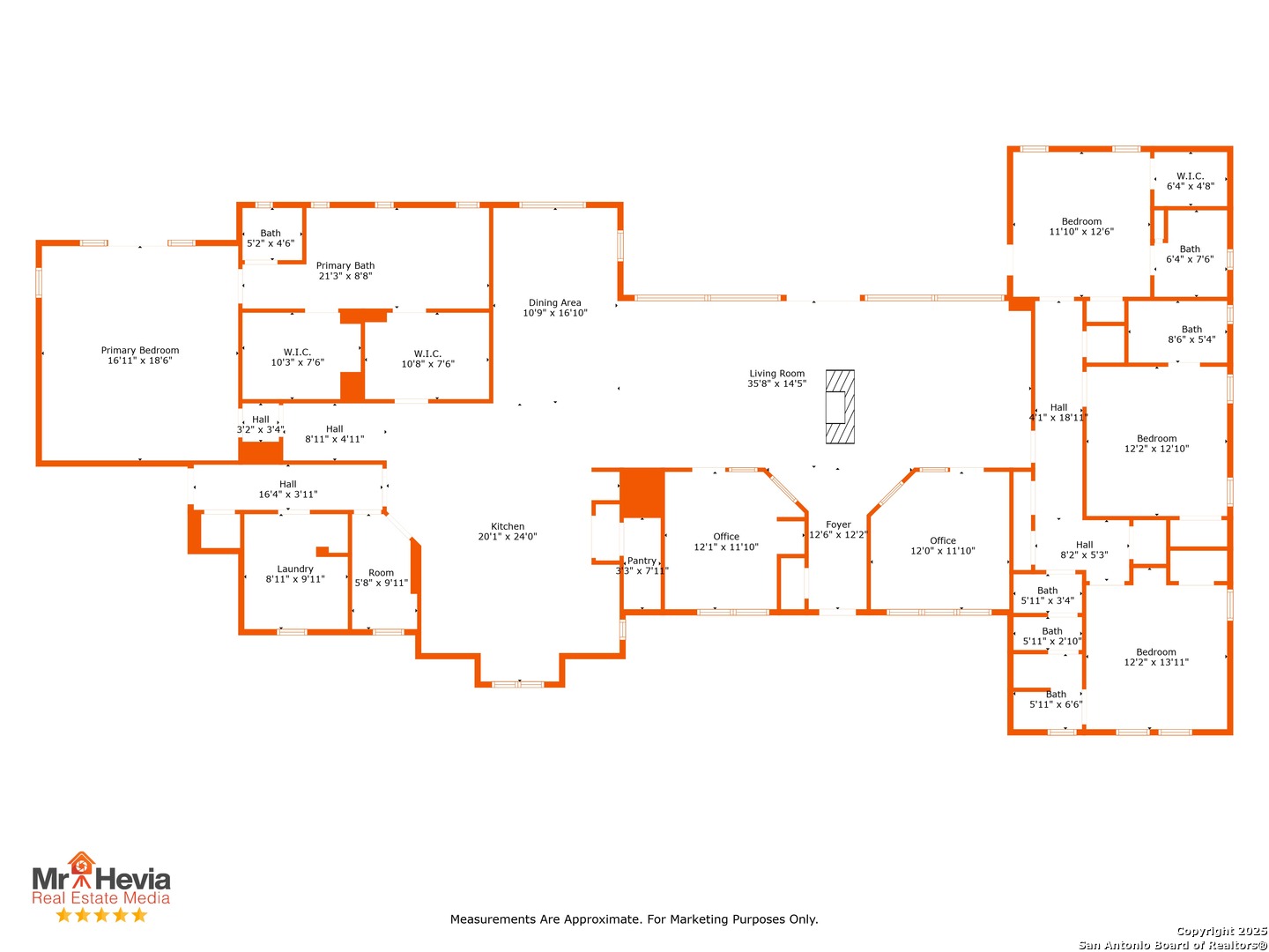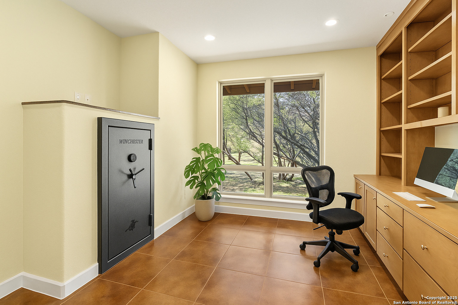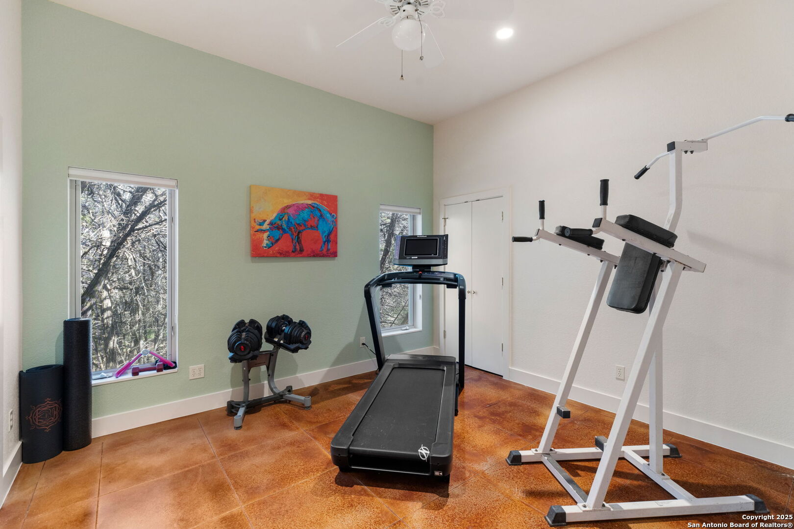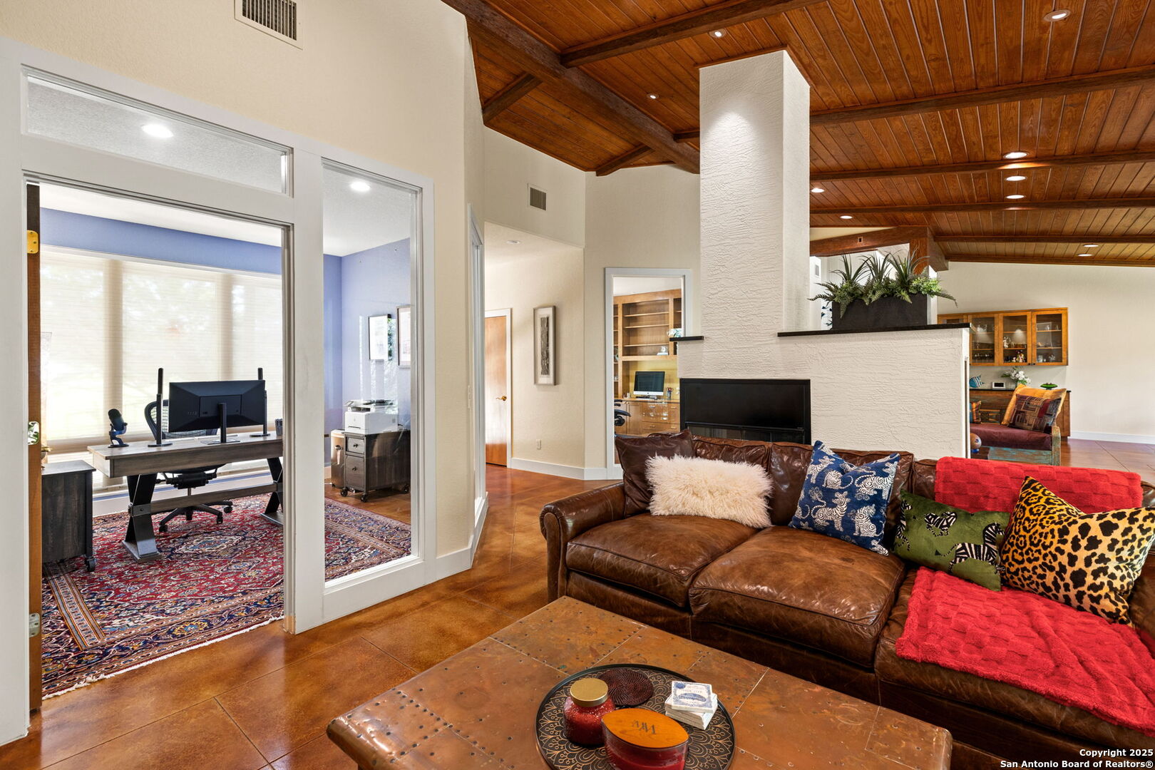 Mariposa House is a one-of-a-kind four-bedroom/four bath 3,721 square foot custom limestone exterior house on seven acres of enchanted forest teaming with wildlife in New Braunfels. Mariposa House is named for its custom butterfly sculpture with hundreds of butterflies suspended from the 20-foot kitchen ceiling. The centerpiece of this extraordinary home is its vast living area, with a wall of floor-to-ceiling windows providing a spectacular view of the property's forest and wildlife. A unique three-dimensional stucco woodburning fireplace adds warm charm to the living area space. His & her offices with floor-to-ceiling windows open onto the living area. Mariposa house's generous U-shape kitchen includes an enormous Island with a Black Pearl Granite countertop, stacked Upper Cabinets w/ Glass Fronts Lighting (52" Uppers), LG Refrigerator Conveys (French Door), Dacor 5 burner electric cooktop complete with an industrial vent soaring to the kitchen's 20-foot ceiling. The kitchen also features a workstation, extra deep kitchen sink, instant hot water spigot, a pantry w/custom built-in wine storage, and a breakfast bar. Mariposa House's primary bedroom opens onto a private patio facing the forest. The dedicated master bath includes a whirlpool bath and a separate large walk-in shower. His and her closets adjoin the master bath. An oversized 80-gallon water heater with circulation pump, dedicated to the primary living residence, assures a virtually endless supply of hot water. Mariposa House's east wing guest section includes three guest rooms with dedicated baths. The east wing comes complete with its own independent heat pump, Nest smart thermostat, and water heater. Mariposa House is a very special home, built for very special people! GENERAL AND KITCHEN FEATURES: Solid wood 4x8 leaded glass entry door, Scored stained concrete throughout, Porcelain tile in baths, Large picture windows, Oak tongue in groove ceiling in common areas, All Limestone exterior, Derbigum Roof, Double sided stucco wood burning fireplace, Ample closet space throughout home, His & hers custom closets in master bath, All wood custom cabinets, Whirlpool tub in master bath, Separate master bath large walk-in shower with rain showerhead & handheld sprayer, Large U-shape kitchen with enormous island and 20' ceiling, Black Pearl Granite countertop, LG refrigerator conveys (French door), Dacor 5 burner electric cooktop, Stacked upper cabinets w/ glass fronts & lighting (52" uppers), Workstation extra deep kitchen sink, Instant hot water spigot, Pantry w/ custom built-in wine storage, Breakfast bar, Pull out trash, mixer lift, pull out shelves, spice pull-out, 8 x 7.5 Greenhouse, 3 separate heat pumps with Nest smart thermostats, Tesla charger, One Car Garage, Two separate water heaters - 80 gallons for master bath and kitchen, plus 80 gallons for east wing guest quarters, LG washer and dryer, Backyard fountain with autofill, ADT alarm system with Nest front door camera - remote app accessible, Remington TS26-45 26-gun safe with enclosure, Front door keypad lock - remote app accessible, Verizon mobile signal booster with directional antenna, Aerated septic system, ADDITIONAL INTERIOR FEATURES: His & hers offices with custom cabinetry & shelving, Laundry room w/ 52" uppers & sink, Mud area, Pleated shade window coverings for all bedrooms & baths, Built-in bookshelves in primary bedroom & guest room, Jack & Jill guest bathroom with stand up shower, Heaters & night lights in all baths, 1x3 & 1x5 flat stock trim, Patio space @ primary bedroom, Common areas, Can lighting throughout.