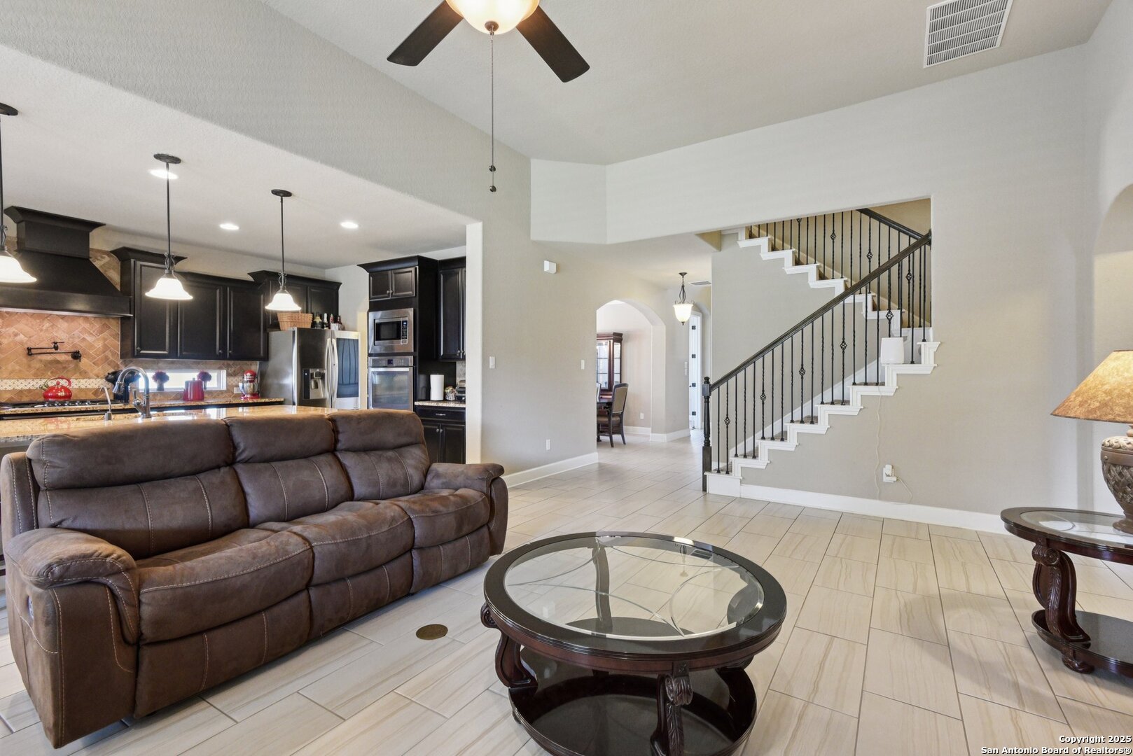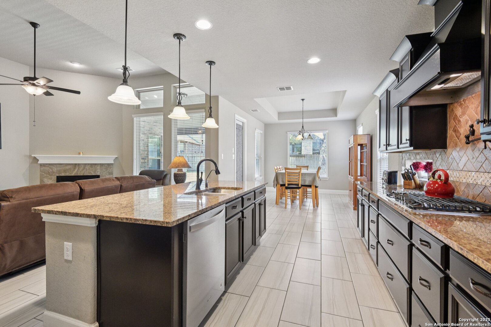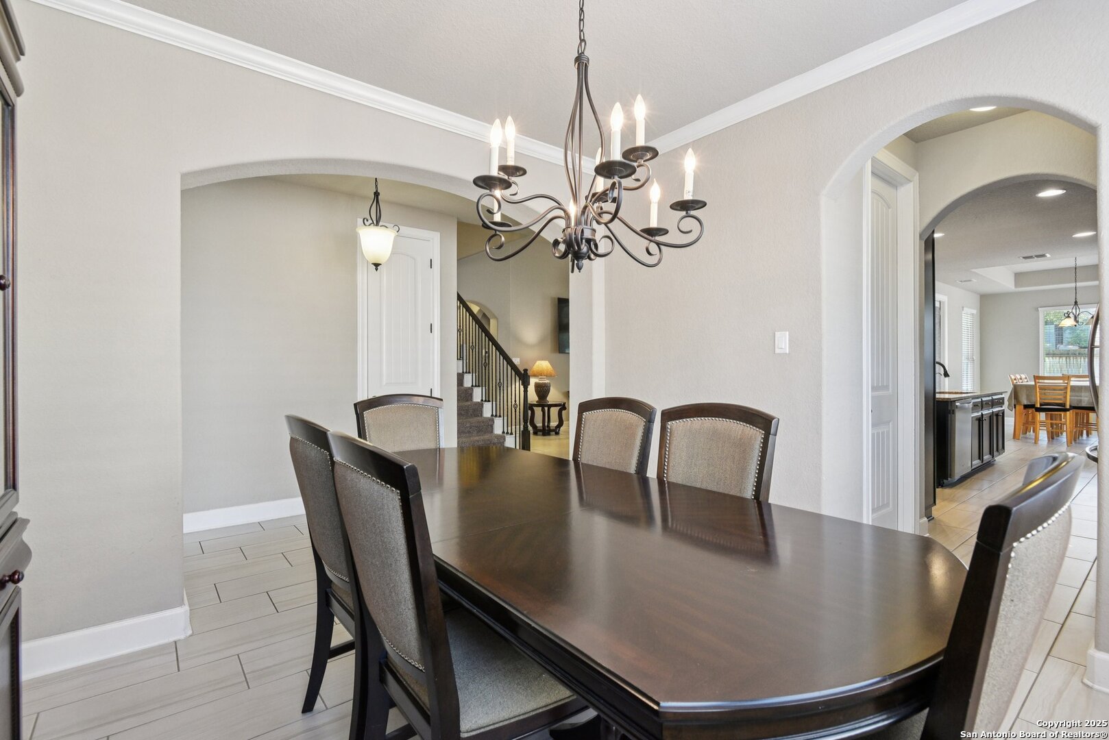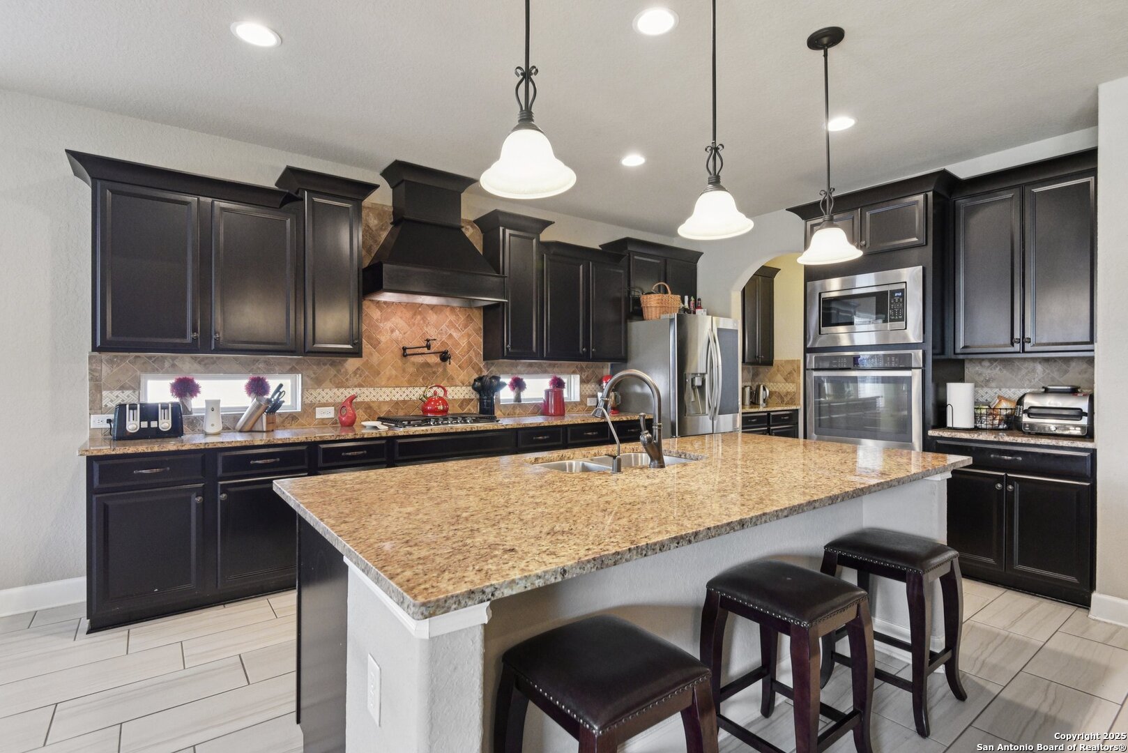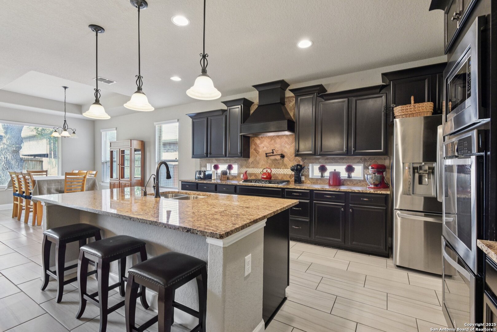 Situated in the highly sought-after Stone Crossing Estates, this exceptional 4-bedroom, 3.5-bath home offers luxury living with thoughtful upgrades throughout. The spacious floor plan includes a dedicated office, formal dining room, breakfast area, and additional seating at the kitchen island. The gourmet kitchen is a chef's dream, featuring a gas cooktop, double built-in ovens, built-in microwave, pot filler, and ample counter space. Enjoy movie nights in the theater/media room, pre-wired for surround sound, or gather around the cozy gas fireplace in the living area. The primary suite provides a private retreat, while the covered patio is perfect for outdoor relaxation. Additional features include a 3-car garage, no neighbor to the left, and a prime location directly across from the park and walking trails. With its blend of comfort, convenience, and style, this home is truly a rare find!Seller is motivated offering 5 k towards buyers closing cost.