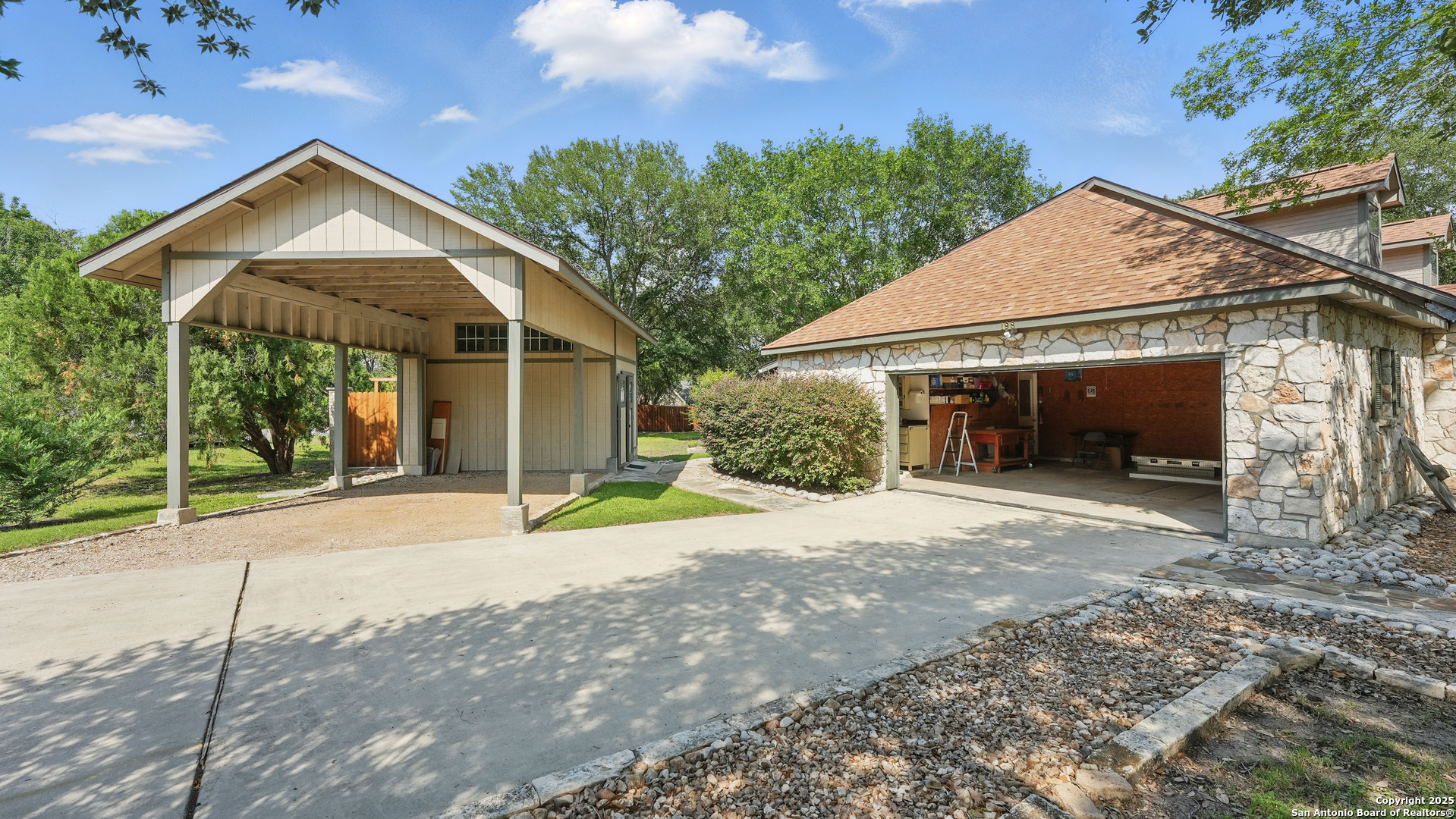 This one-of-a-kind rock home combines rustic charm with modern comfort, all set on a spacious lot with no HOA restrictions - perfect for those who value privacy, craftsmanship, and freedom. Beautiful rock fireplace in the living room - the cozy centerpiece of the home. Handcrafted woodwork throughout for a warm, custom feel. Large, private backyard with a full privacy fence - ideal for pets, gatherings, or gardening. Detached workshop - great for hobbies, storage, or creative projects. Carport for covered parking. Moveable kitchen island for flexible cooking and entertaining. Bamboo & ceramic tile floors offer both style and durability. This home has personality, functionality, and room to grow - all without the restrictions of an HOA. Whether you're looking for a peaceful retreat or a creative space to call your own, this property checks all the boxes. Schedule your showing today - homes like this don't come along often!