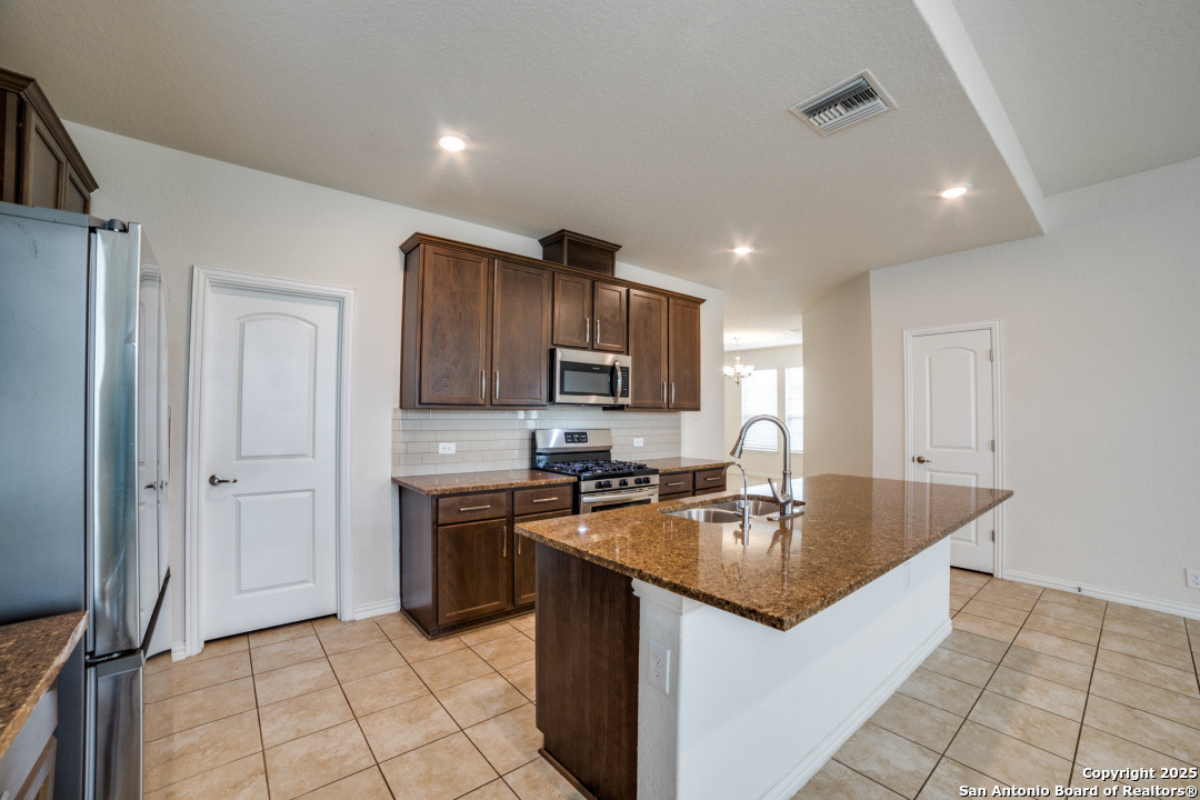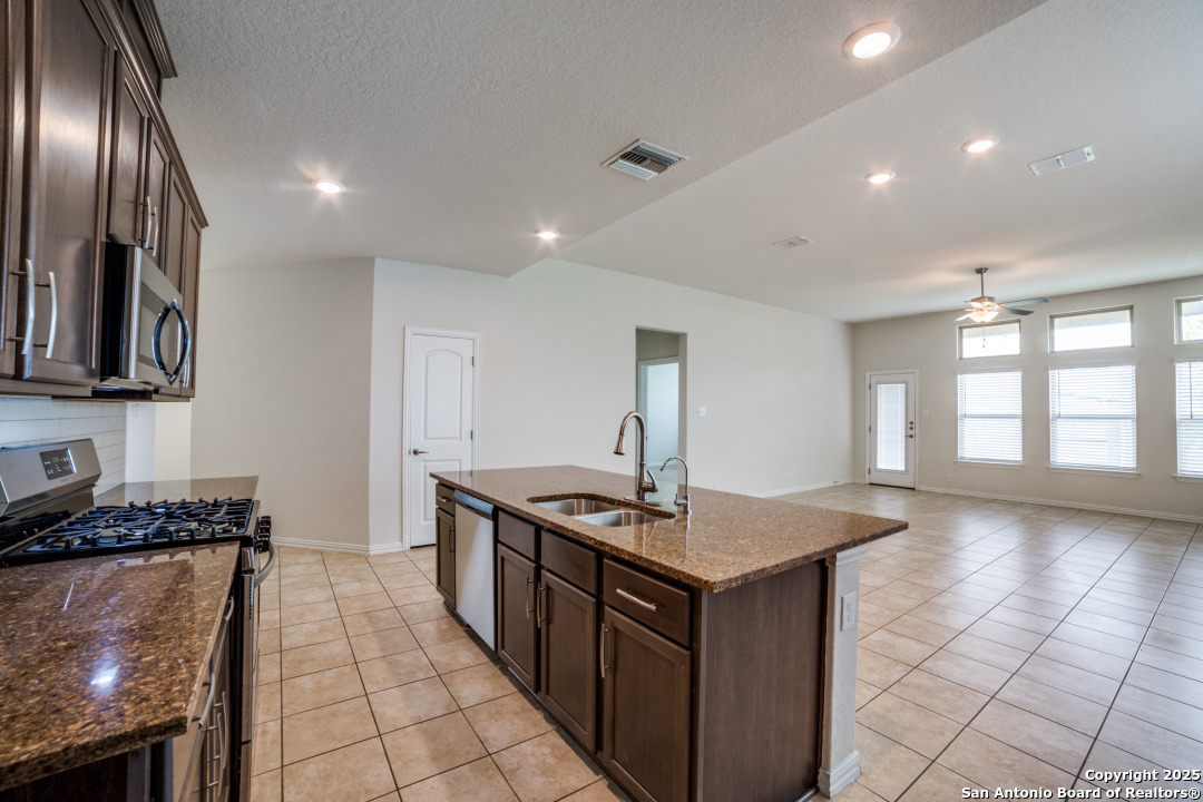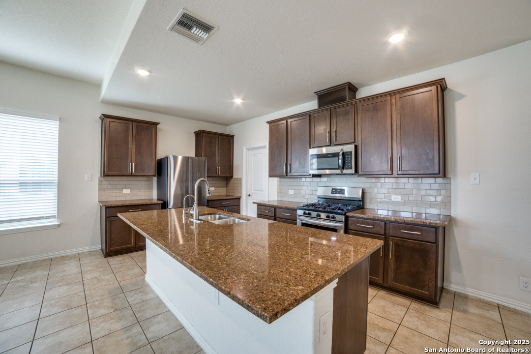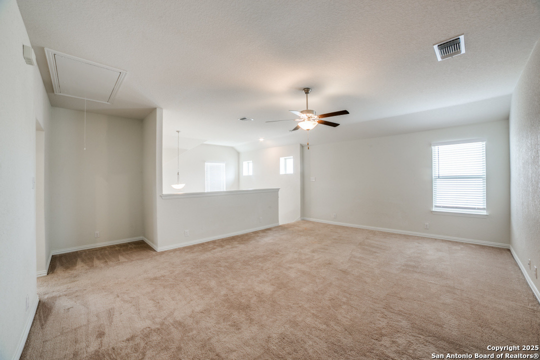 Great location! Gruene and HEB and IH-35 within a few minutes! Gehan home with open floorplan. 4 bedrooms, 2 full bathrooms with a 1/2 bathroom. Main bedroom on 1st floor, with 3 bedrooms and an additional living area/gameroom upstairs. 42" kitchen cabinets, stainless steel appliances, gas cooking. Large kitchen island. Granite counters in kitchen. 2712 square foot GLA per tax records.