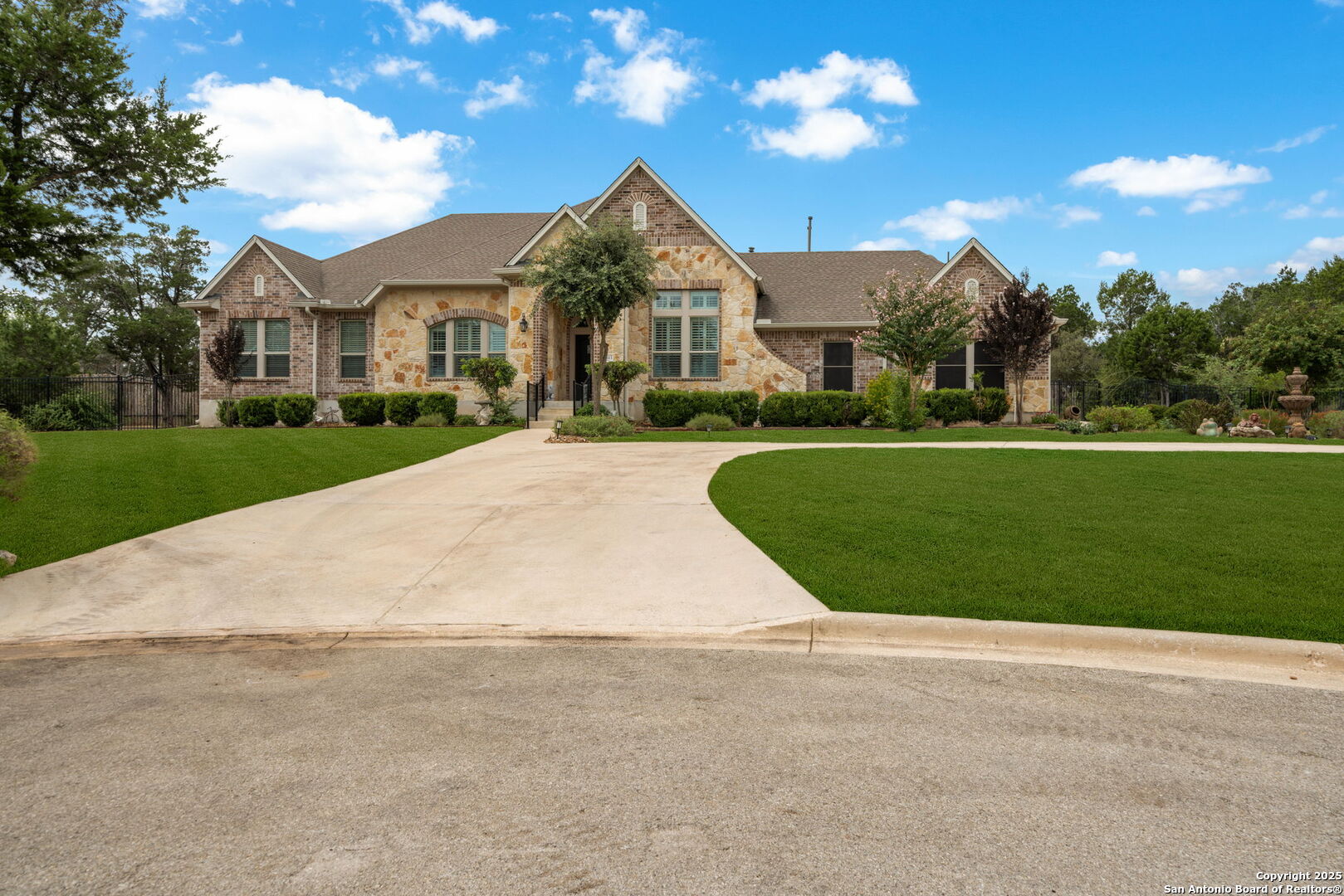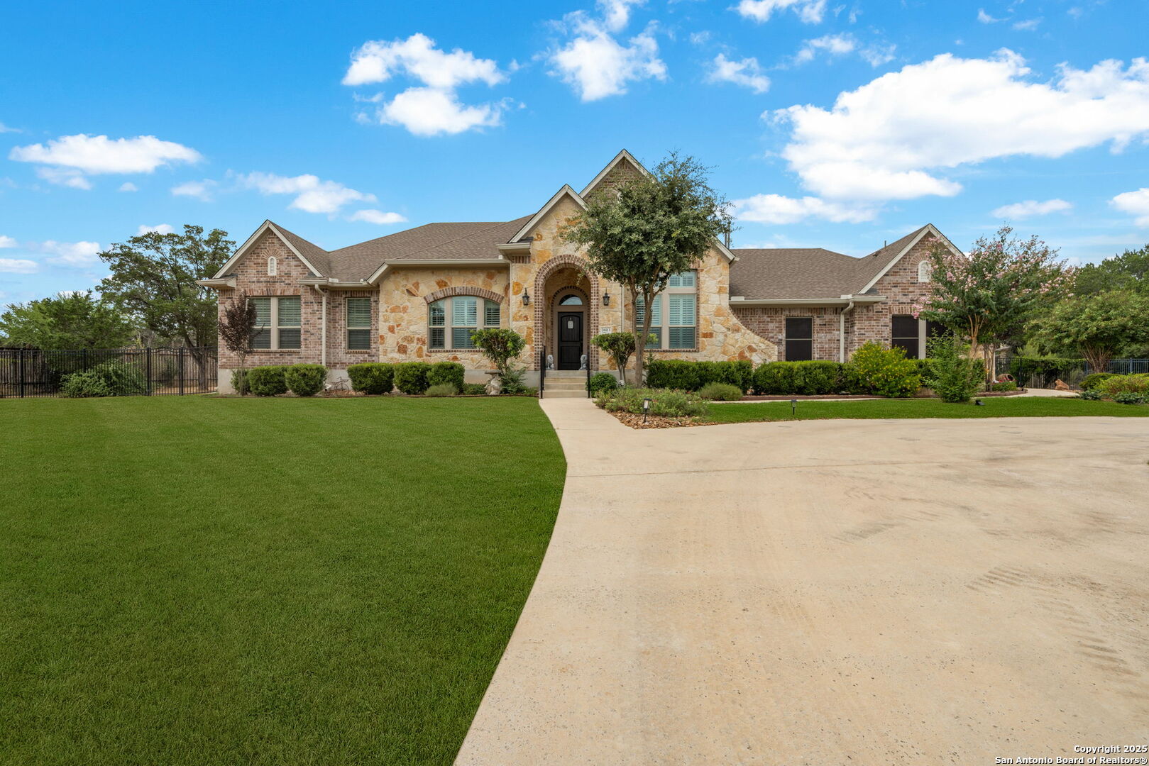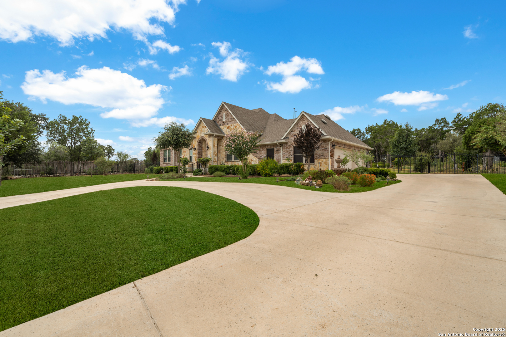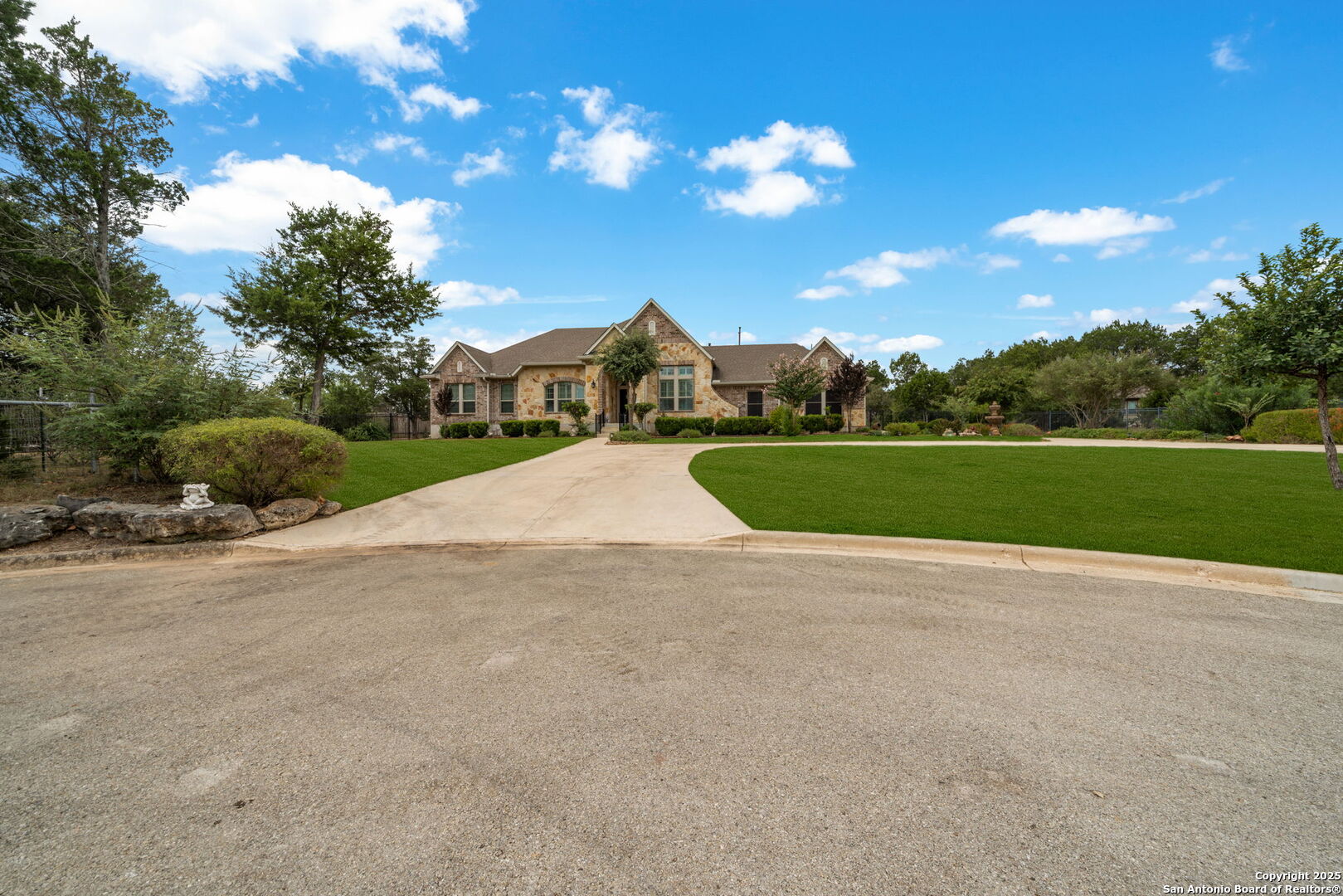 Amazing home in the highly desired Rockwall Ranch Community!!! Nestled on 1.324 acres in a cul de sac, this remarkable one story, three bed, three bath, three car garage home with an office has a ton to offer. Inside you will find hand scraped hard wood flooring throughout the entire home except in the bathrooms which have stylish tile. As you enter the foyer you will see a large office to your left and a formal dining room to your right with high ceilings and crown molding. As you walk past all of them, it opens up to an enormous great room that includes the living room with a limestone surround fireplace, informal dining room, oversized breakfast bar, island kitchen with gas cooking, built in appliances, and oodles of cabinets and counterspace. There is also, a breathtaking primary suite with a luxurious primary bath and two stroll-in closets. The secondary en suite bedroom has walk-in shower. The last secondary bedroom is right across the hall from the third full bathroom. Off the three car garage is a extra wide, super long driveway with room for an RV that is connected to more parking on the circle drive. For outdoor living there is 29x17 sqft. covered patio with, a ceiling fan, TV mount, and remote operated solar shades. It is so peaceful to just sit out there and look at the beautifully manicured yard and enjoy nature in comfort. Come see this retreat in the Texas Hill Country today!
