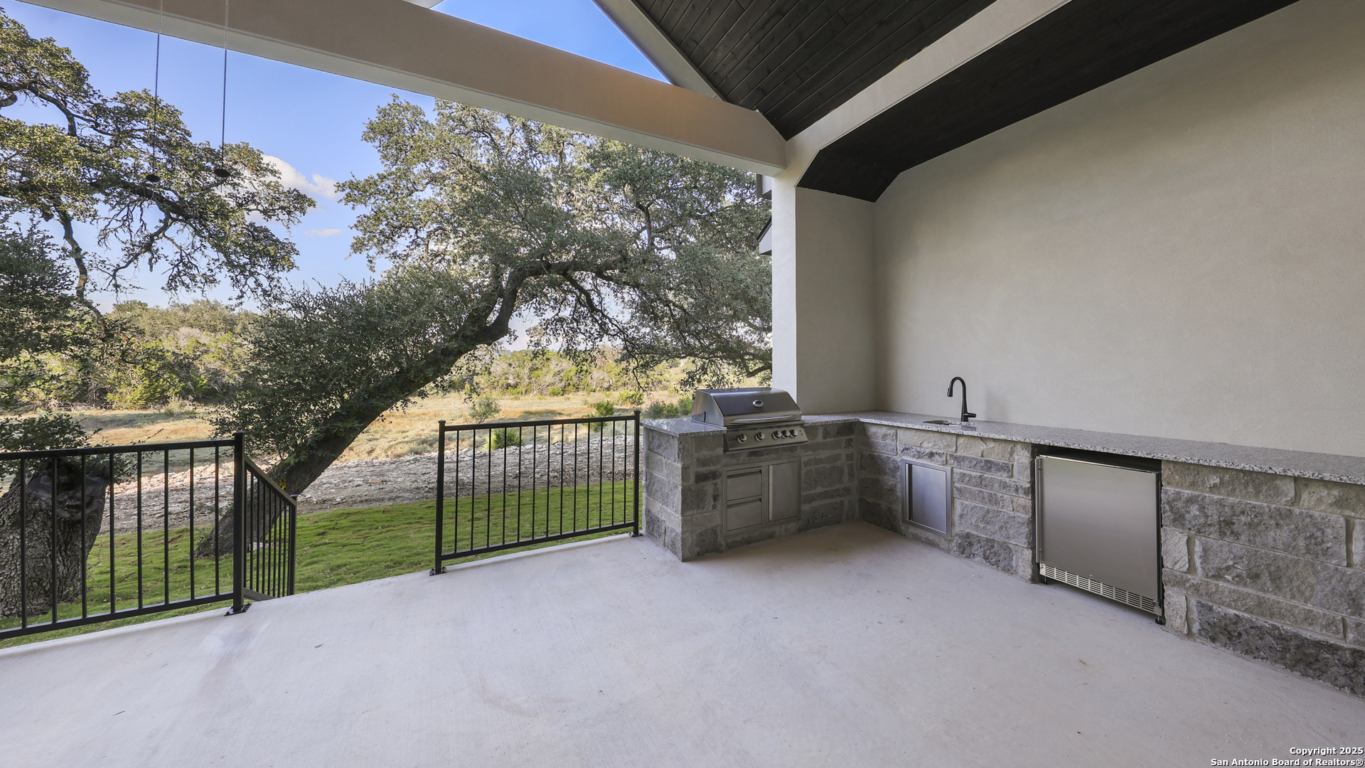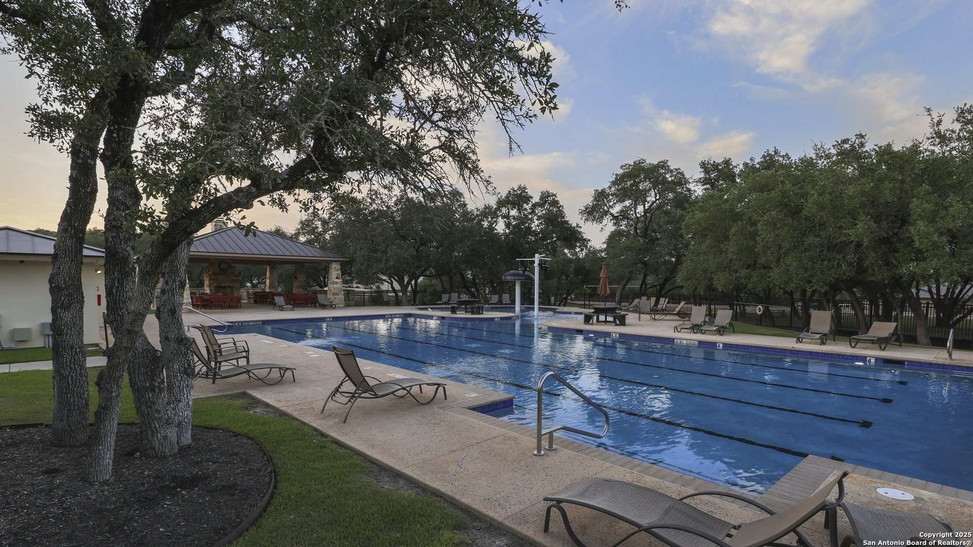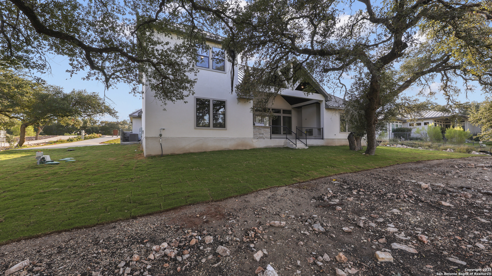 Welcome to your dream home! This gorgeous new construction in the coveted Copper Ridge neighborhood of New Braunfels offers 5 spacious bedrooms, 4.5 luxurious bathrooms, a bonus room for entertaining, and 3,962 square feet of meticulously designed living space. As you step inside, you'll be greeted by an open-concept layout with high ceilings, modern finishes, and abundant natural light throughout. The chef-inspired kitchen features top-of-the-line appliances, a large island, and custom cabinetry-perfect for entertaining. The expansive living area boasts a cozy fireplace, creating a warm and inviting space for family gatherings. The elegant master suite is a true retreat with a spa-like ensuite bath, dual vanities, a soaking tub, and a walk-in shower. Four additional well-sized bedrooms provide ample space for family or guests, each with its own walk-in closet. The covered patio offers plenty of room for lounging, dining, or enjoying the scenic views of the neighborhood and large oak trees. Located in the prestigious Copper Ridge community, residents enjoy exclusive amenities such as 24-hour gated security, a swimming pool, and scenic walking trails-all just minutes away from downtown New Braunfels, local parks, and the Guadalupe River. This home is truly a masterpiece, blending luxury, comfort, and convenience located on a quiet, cul-de-sac street. Don't miss your chance to make it yours!