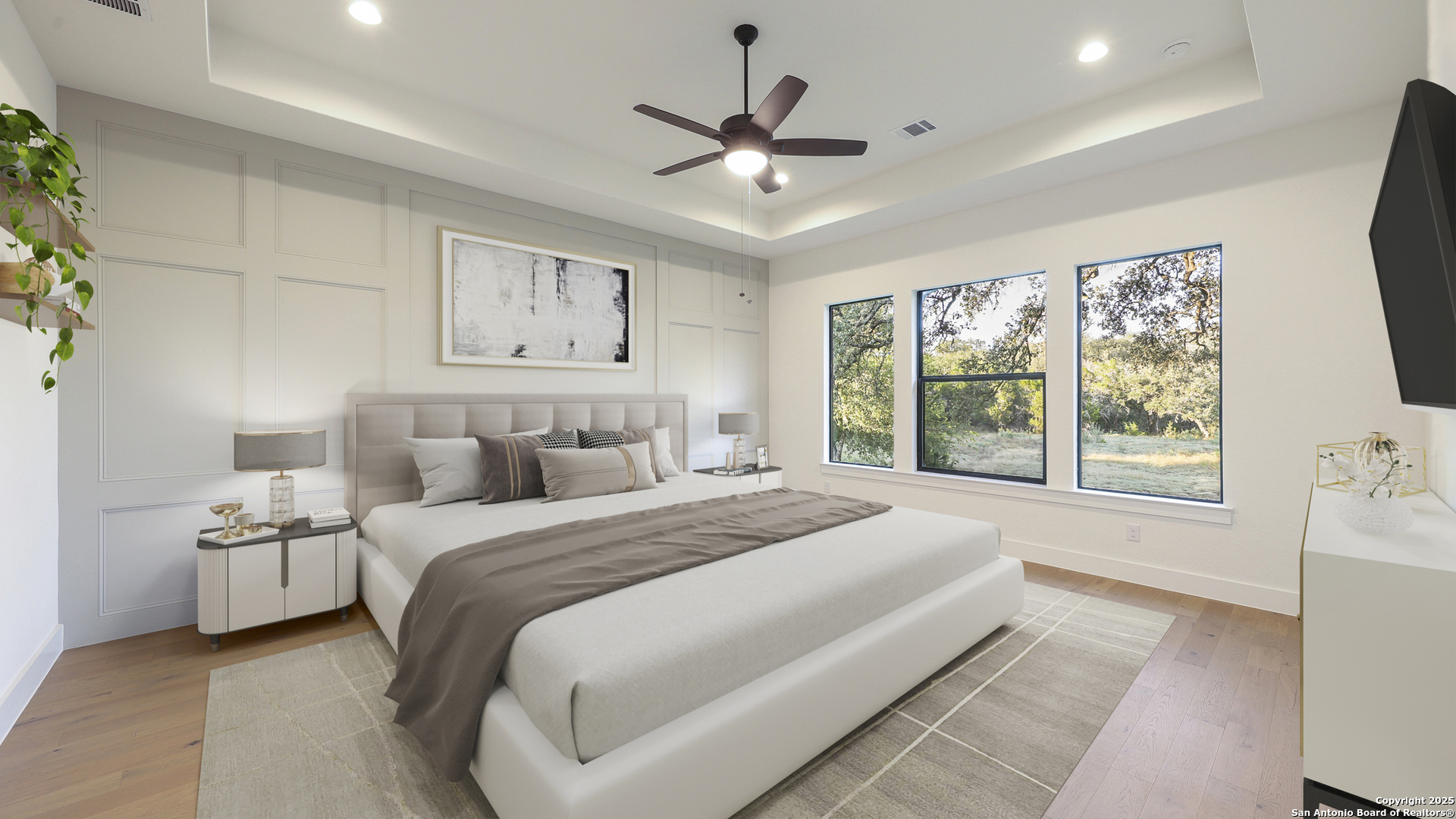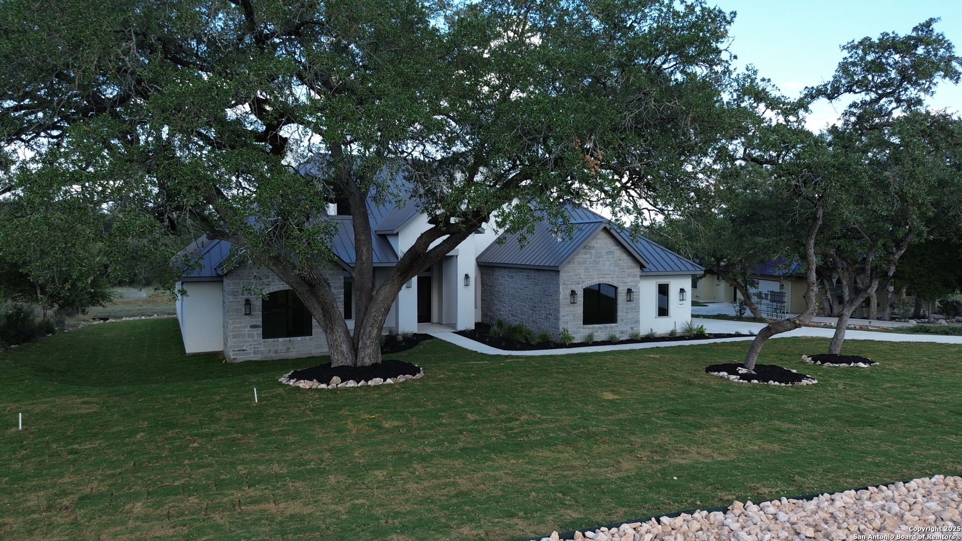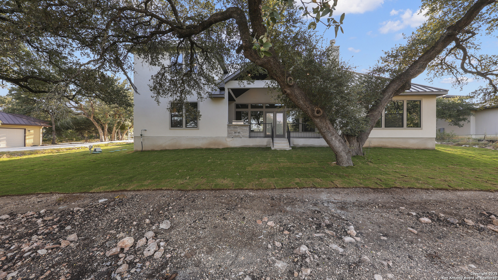 Welcome to your dream home! This gorgeous new construction in the coveted Copper Ridge neighborhood of New Braunfels offers 5 spacious bedrooms, 4.5 luxurious bathrooms, a bonus room for entertaining, and 3,962 square feet of meticulously designed living space. As you step inside, you'll be greeted by an open-concept layout with high ceilings, modern finishes, and abundant natural light throughout. The chef-inspired kitchen features top-of-the-line appliances, a large island, and custom cabinetry-perfect for entertaining. The expansive living area boasts a cozy fireplace, creating a warm and inviting space for family gatherings. The elegant master suite is a true retreat with a spa-like ensuite bath, dual vanities, a soaking tub, and a walk-in shower. Four additional well-sized bedrooms provide ample space for family or guests, each with its own walk-in closet. The covered patio offers plenty of room for lounging, dining, or enjoying the scenic views of the neighborhood and large oak trees. Located in the prestigious Copper Ridge community, residents enjoy exclusive amenities such as 24-hour gated security, a swimming pool, and scenic walking trails-all just minutes away from downtown New Braunfels, local parks, and the Guadalupe River. This home is truly a masterpiece, blending luxury, comfort, and convenience located on a quiet, cul-de-sac street. Don't miss your chance to make it yours!