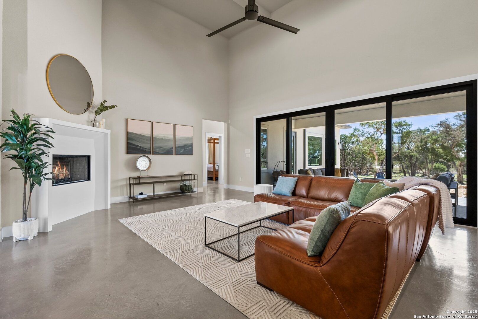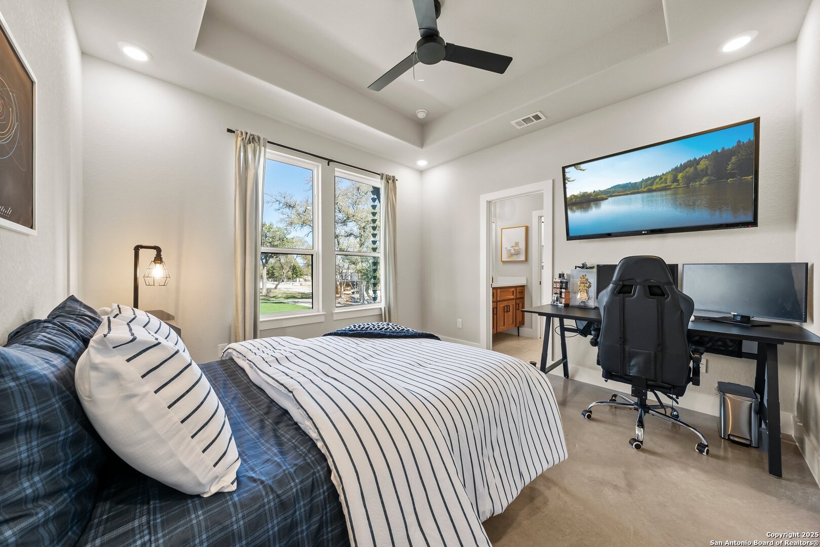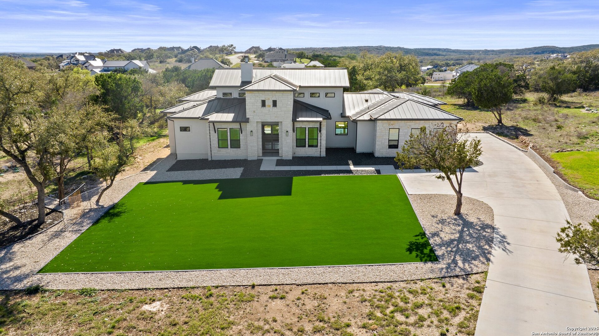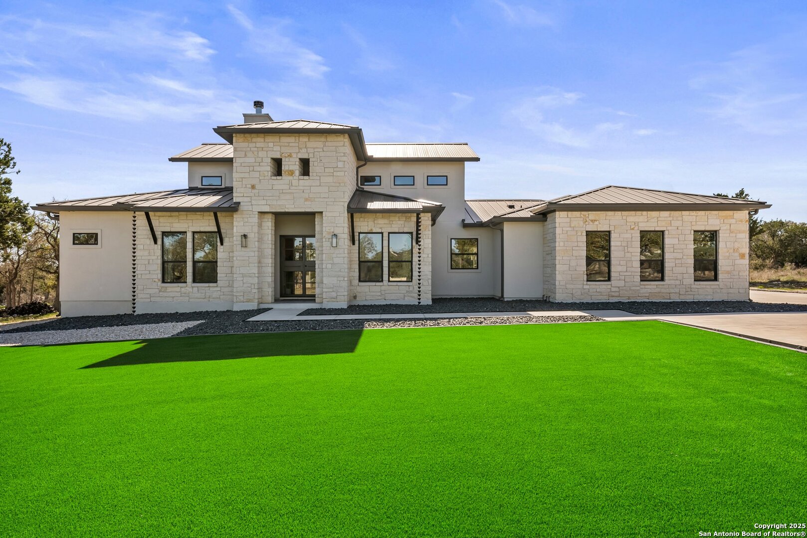 Welcome to this exclusive Weston Dean custom home completed in 2023 in the guarded Copper Ridge community. This 1 story residence epitomizes luxury and elegance. Upon entering through a grand, oversized metal door, you're greeted by a wall of windows that flood the home with natural light. The spacious living area features soaring ceilings, a gas fireplace, and seamless access to the expansive covered patio, creating an ideal indoor-outdoor flow. The gourmet kitchen boasts sleek quartz countertops, timeless backsplash, upgraded Michael Edwards cabinetry, stainless steel appliances, a hidden walk-in pantry, and a reverse osmosis system for clean drinking water. The home includes a dedicated office, a game room with an attached media room pre-wired for surround sound, and a Mother-in-Law floor plan for added privacy. Oversized windows throughout the home and tray ceilings add an additional layer of sophistication and architectural detail. The primary suite offers a private retreat with serene views of the beautifully xeriscaped backyard. The spa-like en-suite bath features a splendid walk-in shower, impressive double vanity and modern finishes along with deluxe walk-in closets. Additional highlights include patio with pre-plumbing for an outdoor kitchen (gas, water, electrical lines already installed), Cat5 plugs throughout, and pre-wired sound system on the patio and in the primary suite. Outdoors, the combined 4,500 sq. ft. of artificial turf between the front and back yard offers a low-maintenance lifestyle, while the backyard provides a private and a peaceful connection to nature. The 2.5-car garage includes a 50AMP plug for EV or RV charging, and the property features a 500-gallon propane tank, ready for a future pool installation. Copper Ridge is renowned for its resort-style amenities and high-end lifestyle, making this home an extraordinary find in a prestigious community. Features List and 3D tour link available.