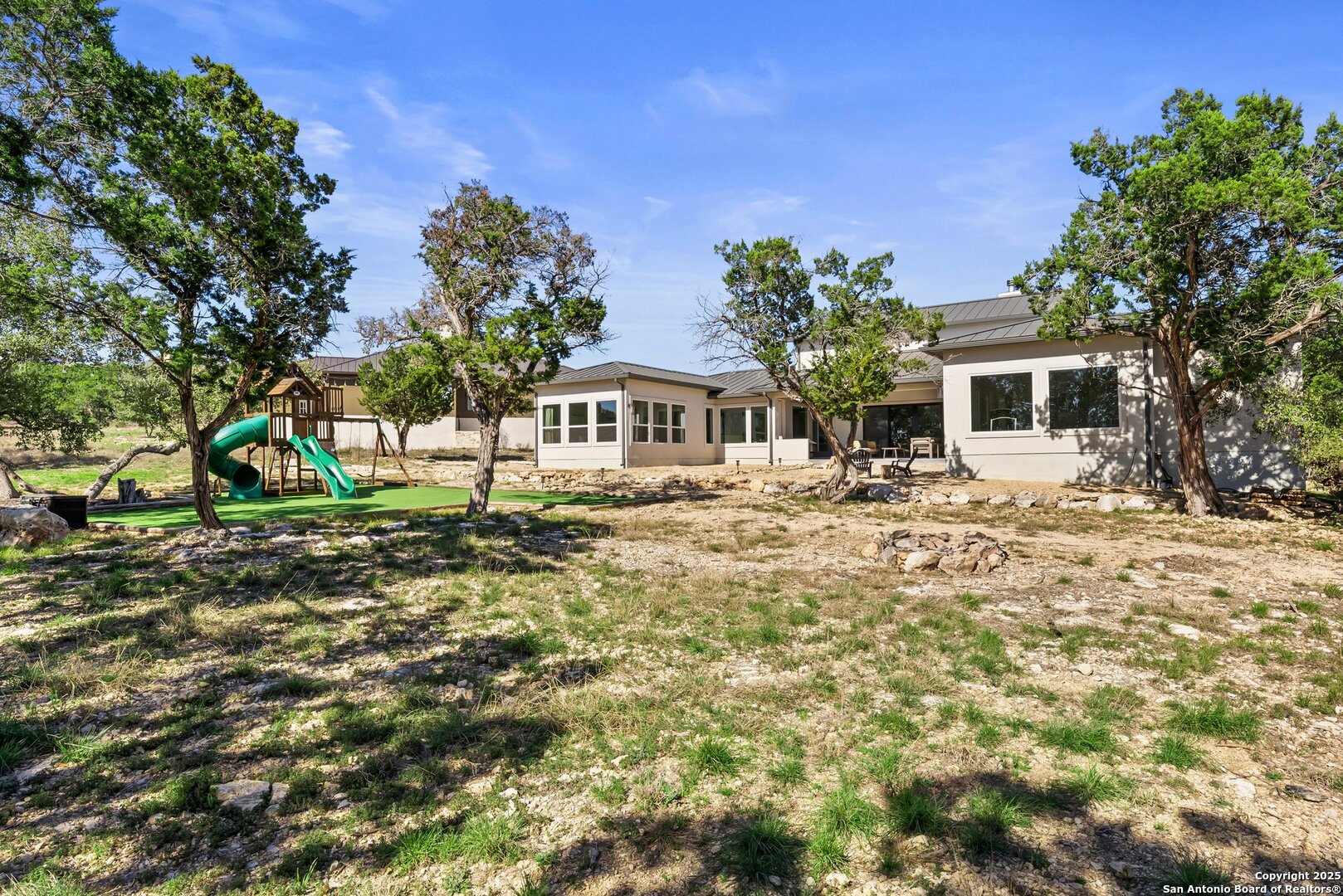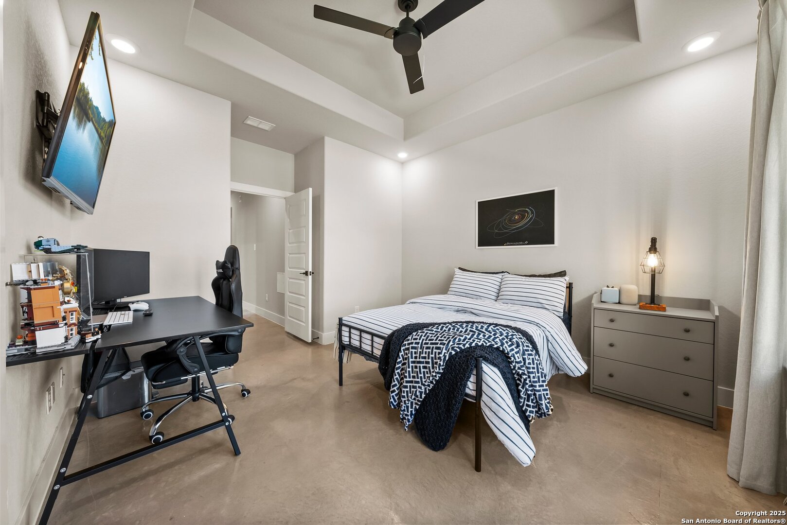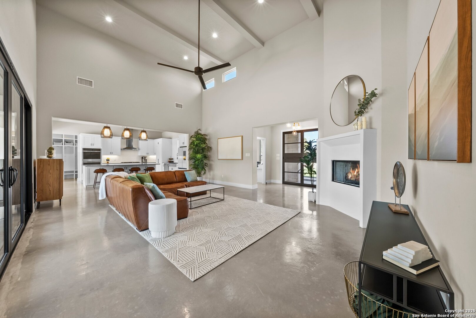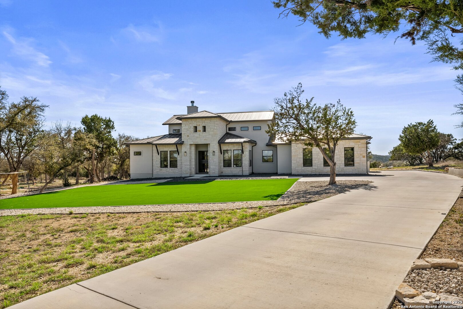 Welcome to this exclusive Weston Dean custom home completed in 2023 in the guarded Copper Ridge community. This 1 story residence epitomizes luxury and elegance. Upon entering through a grand, oversized metal door, you're greeted by a wall of windows that flood the home with natural light. The spacious living area features soaring ceilings, a gas fireplace, and seamless access to the expansive covered patio, creating an ideal indoor-outdoor flow. The gourmet kitchen boasts sleek quartz countertops, timeless backsplash, upgraded Michael Edwards cabinetry, stainless steel appliances, a hidden walk-in pantry, and a reverse osmosis system for clean drinking water. The home includes a dedicated office, a game room with an attached media room pre-wired for surround sound, and a Mother-in-Law floor plan for added privacy. Oversized windows throughout the home and tray ceilings add an additional layer of sophistication and architectural detail. The primary suite offers a private retreat with serene views of the beautifully xeriscaped backyard. The spa-like en-suite bath features a splendid walk-in shower, impressive double vanity and modern finishes along with deluxe walk-in closets. Additional highlights include patio with pre-plumbing for an outdoor kitchen (gas, water, electrical lines already installed), Cat5 plugs throughout, and pre-wired sound system on the patio and in the primary suite. Outdoors, the combined 4,500 sq. ft. of artificial turf between the front and back yard offers a low-maintenance lifestyle, while the backyard provides a private and a peaceful connection to nature. The 2.5-car garage includes a 50AMP plug for EV or RV charging, and the property features a 500-gallon propane tank, ready for a future pool installation. Copper Ridge is renowned for its resort-style amenities and high-end lifestyle, making this home an extraordinary find in a prestigious community. Features List and 3D tour link available.