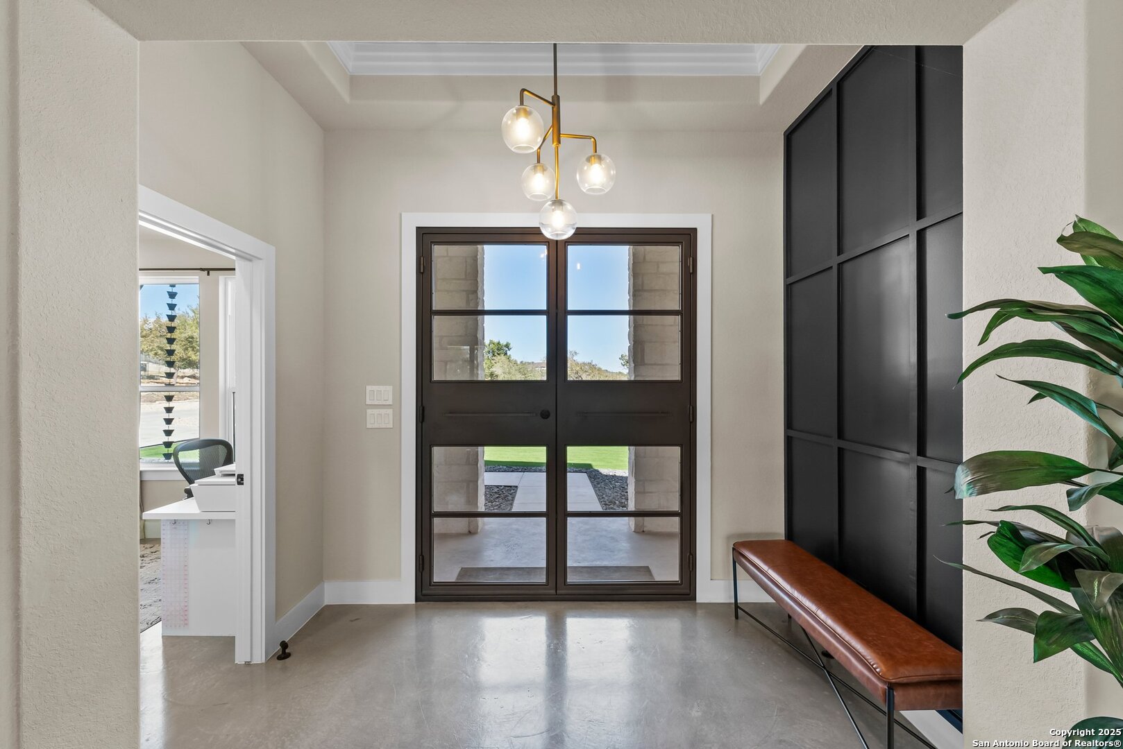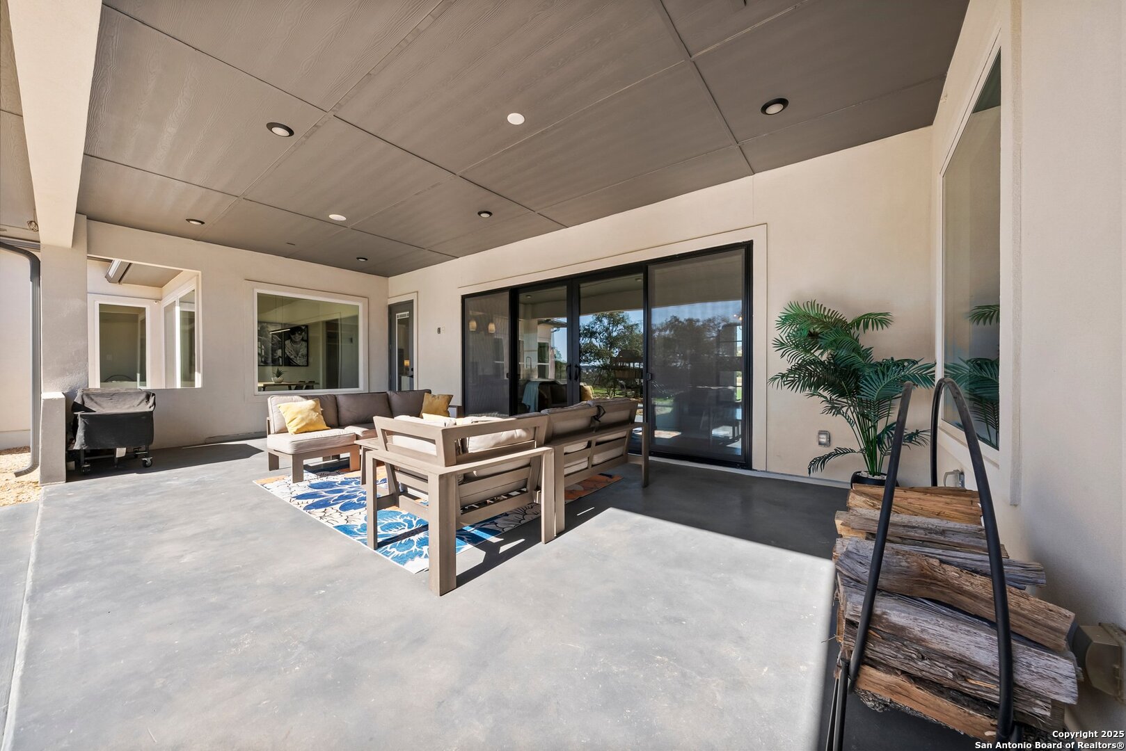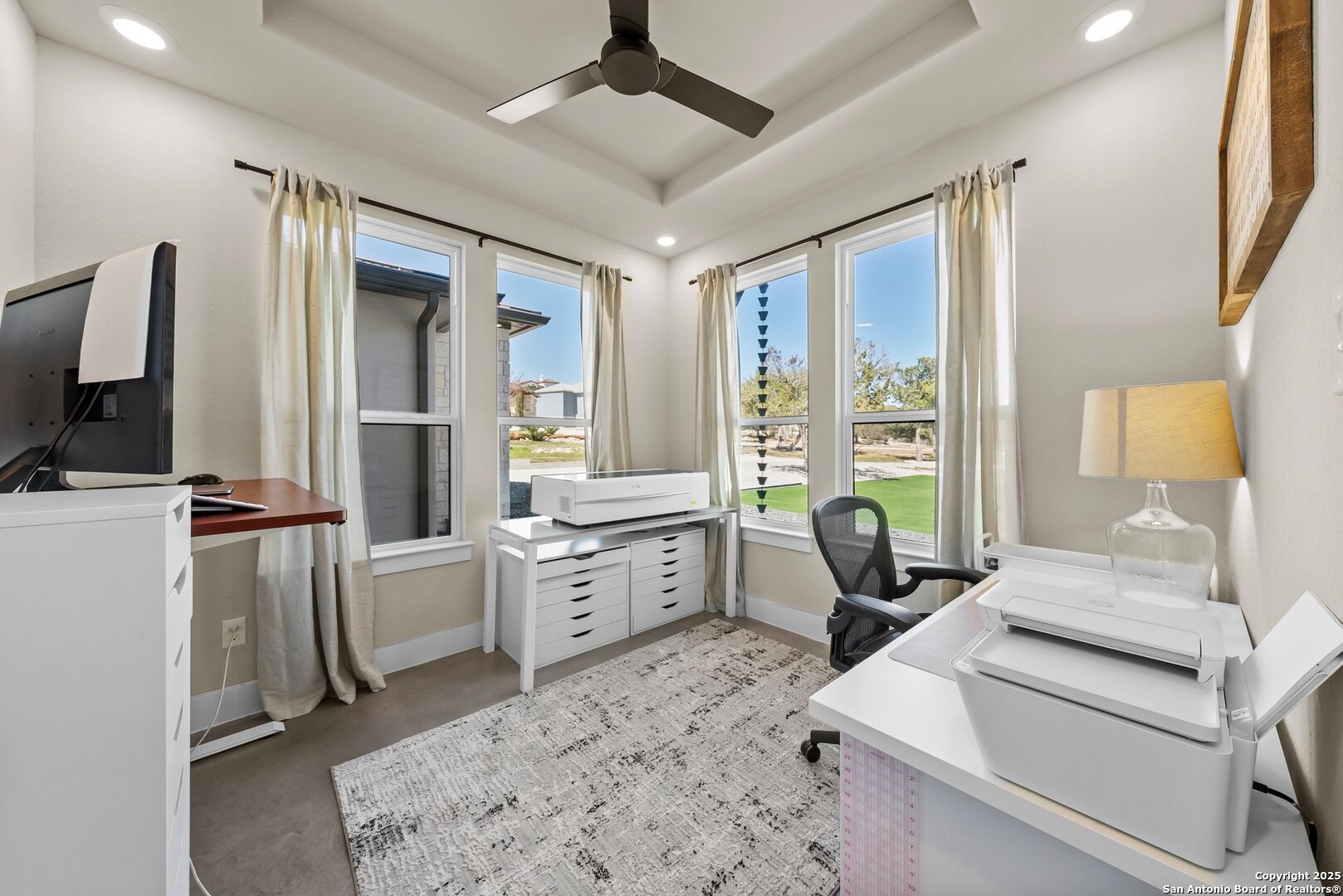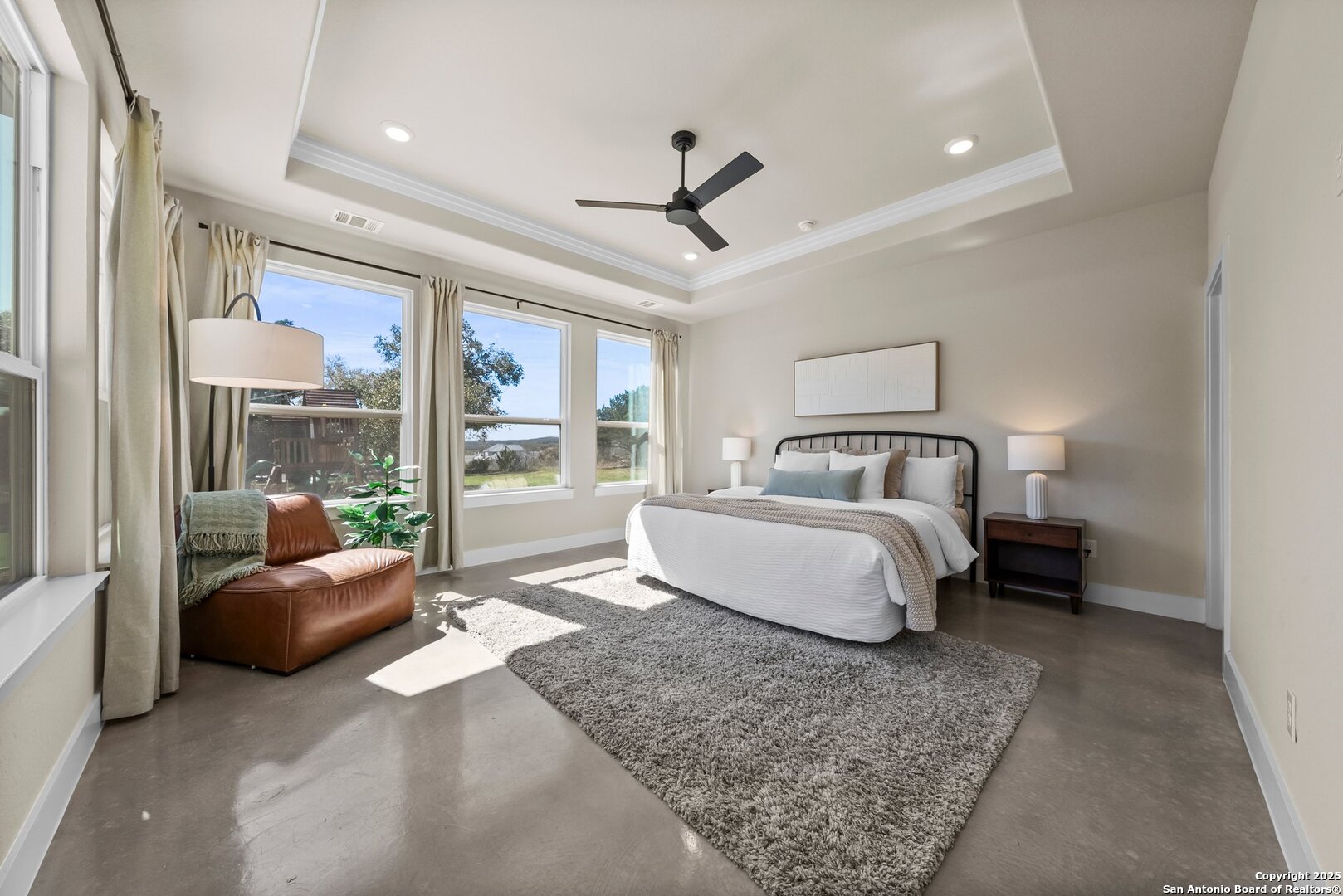 Welcome to this exclusive Weston Dean custom home completed in 2023 in the guarded Copper Ridge community. This 1 story residence epitomizes luxury and elegance. Upon entering through a grand, oversized metal door, you're greeted by a wall of windows that flood the home with natural light. The spacious living area features soaring ceilings, a gas fireplace, and seamless access to the expansive covered patio, creating an ideal indoor-outdoor flow. The gourmet kitchen boasts sleek quartz countertops, timeless backsplash, upgraded Michael Edwards cabinetry, stainless steel appliances, a hidden walk-in pantry, and a reverse osmosis system for clean drinking water. The home includes a dedicated office, a game room with an attached media room pre-wired for surround sound, and a Mother-in-Law floor plan for added privacy. Oversized windows throughout the home and tray ceilings add an additional layer of sophistication and architectural detail. The primary suite offers a private retreat with serene views of the beautifully xeriscaped backyard. The spa-like en-suite bath features a splendid walk-in shower, impressive double vanity and modern finishes along with deluxe walk-in closets. Additional highlights include patio with pre-plumbing for an outdoor kitchen (gas, water, electrical lines already installed), Cat5 plugs throughout, and pre-wired sound system on the patio and in the primary suite. Outdoors, the combined 4,500 sq. ft. of artificial turf between the front and back yard offers a low-maintenance lifestyle, while the backyard provides a private and a peaceful connection to nature. The 2.5-car garage includes a 50AMP plug for EV or RV charging, and the property features a 500-gallon propane tank, ready for a future pool installation. Copper Ridge is renowned for its resort-style amenities and high-end lifestyle, making this home an extraordinary find in a prestigious community. Features List and 3D tour link available.