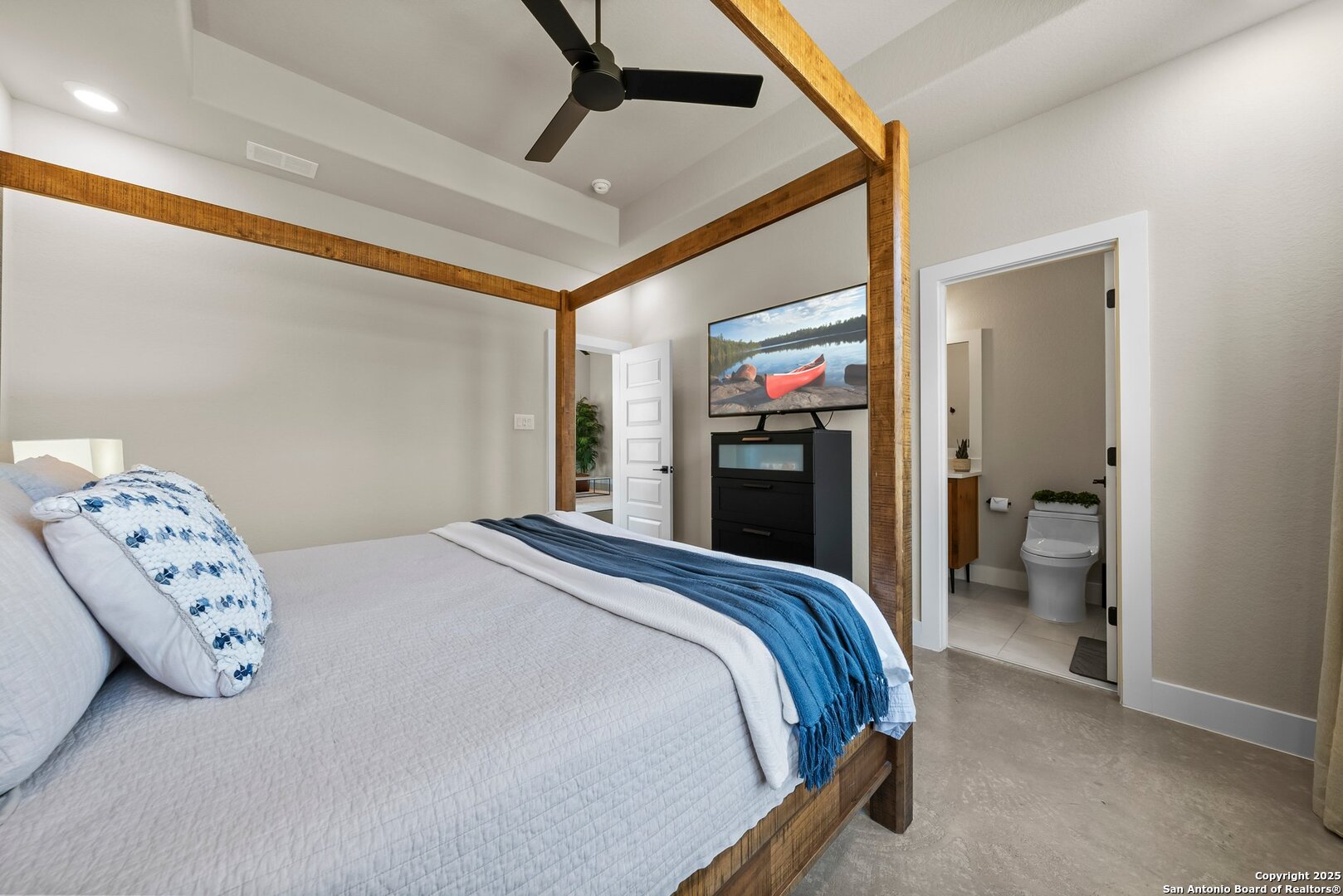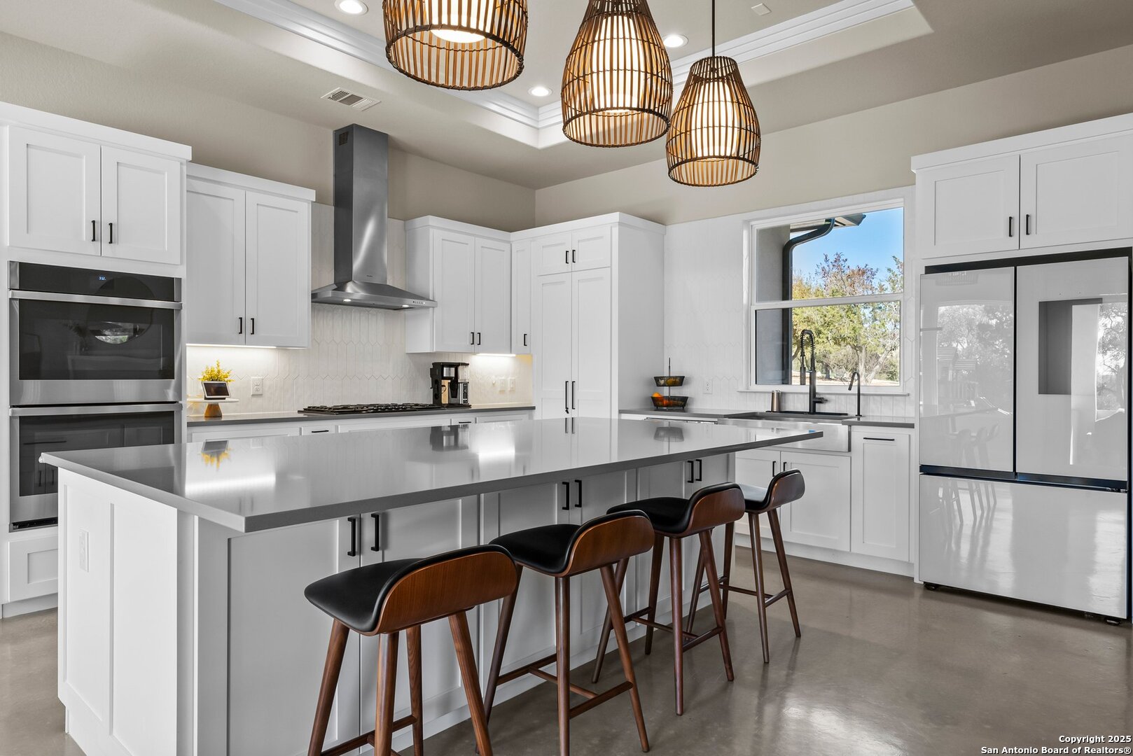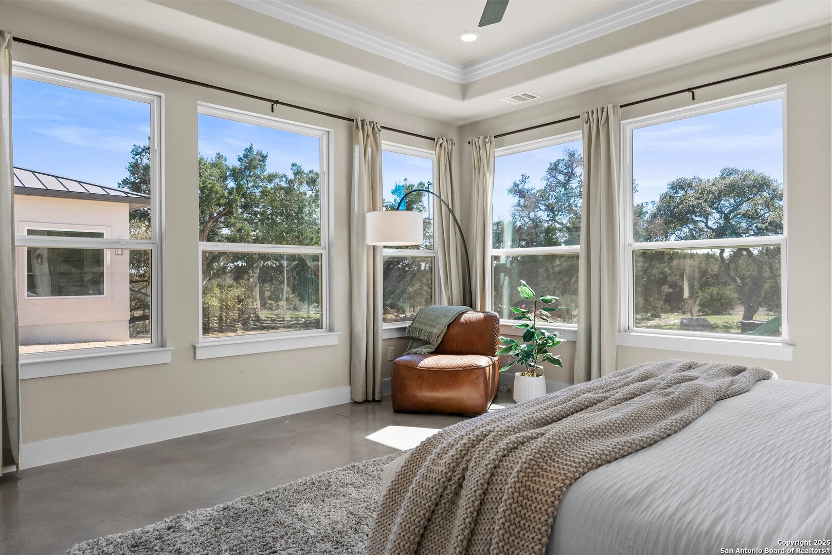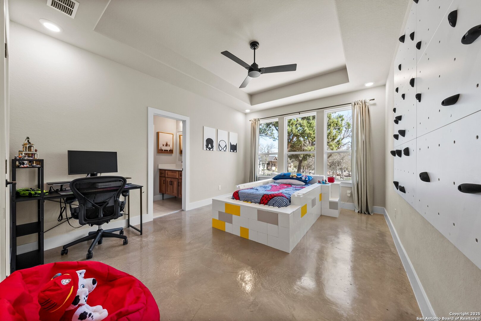 Welcome to this exclusive Weston Dean custom home completed in 2023 in the guarded Copper Ridge community. This 1 story residence epitomizes luxury and elegance. Upon entering through a grand, oversized metal door, you're greeted by a wall of windows that flood the home with natural light. The spacious living area features soaring ceilings, a gas fireplace, and seamless access to the expansive covered patio, creating an ideal indoor-outdoor flow. The gourmet kitchen boasts sleek quartz countertops, timeless backsplash, upgraded Michael Edwards cabinetry, stainless steel appliances, a hidden walk-in pantry, and a reverse osmosis system for clean drinking water. The home includes a dedicated office, a game room with an attached media room pre-wired for surround sound, and a Mother-in-Law floor plan for added privacy. Oversized windows throughout the home and tray ceilings add an additional layer of sophistication and architectural detail. The primary suite offers a private retreat with serene views of the beautifully xeriscaped backyard. The spa-like en-suite bath features a splendid walk-in shower, impressive double vanity and modern finishes along with deluxe walk-in closets. Additional highlights include patio with pre-plumbing for an outdoor kitchen (gas, water, electrical lines already installed), Cat5 plugs throughout, and pre-wired sound system on the patio and in the primary suite. Outdoors, the combined 4,500 sq. ft. of artificial turf between the front and back yard offers a low-maintenance lifestyle, while the backyard provides a private and a peaceful connection to nature. The 2.5-car garage includes a 50AMP plug for EV or RV charging, and the property features a 500-gallon propane tank, ready for a future pool installation. Copper Ridge is renowned for its resort-style amenities and high-end lifestyle, making this home an extraordinary find in a prestigious community. Features List and 3D tour link available.