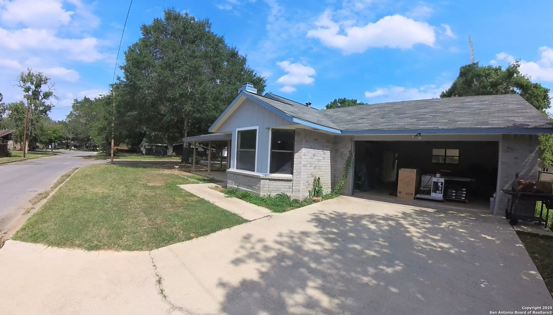 Charming 3 bed, 2 bath home on a spacious corner lot in the heart of Pleasanton, just minutes from local schools! A cozy living room with fireplace flows into the open dining and kitchen area - an ideal layout for comfortable living. All three bedrooms are located on the same side of the home. The kitchen remodel is well underway, and a generous walk-in pantry/laundry combo offers excellent storage. Outside, enjoy both covered front and back porches, a separate workshop with carport and driveway access, and a side-entry garage. Roof replaced approx. 5 years ago. The home was being thoughtfully renovated by the owner for long-term living - not a flip - and many of the remaining materials needed to complete the updates are already on site. With the majority of the remodel complete, this property presents a great opportunity for someone ready to add the finishing touches and realize its full potential. .25 acre lot, fenced backyard, slab foundation. Grab this value add property before it's gone. Schedule your showing today!