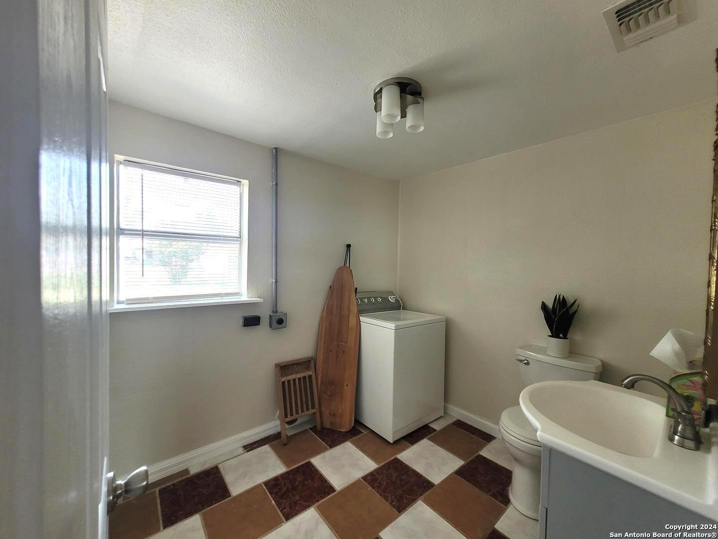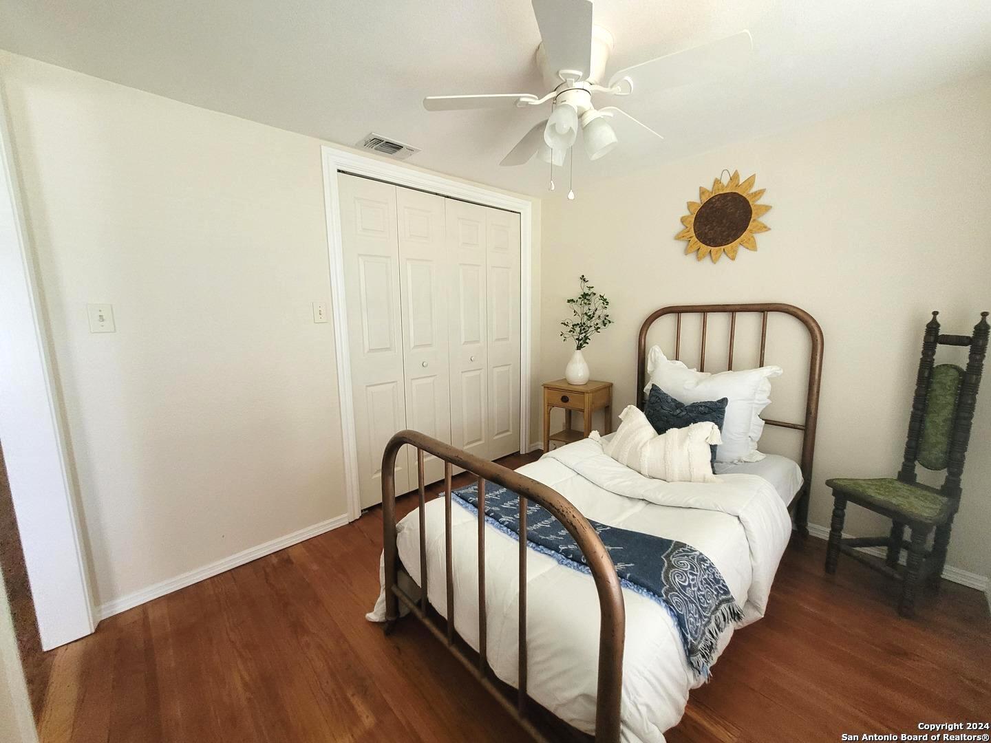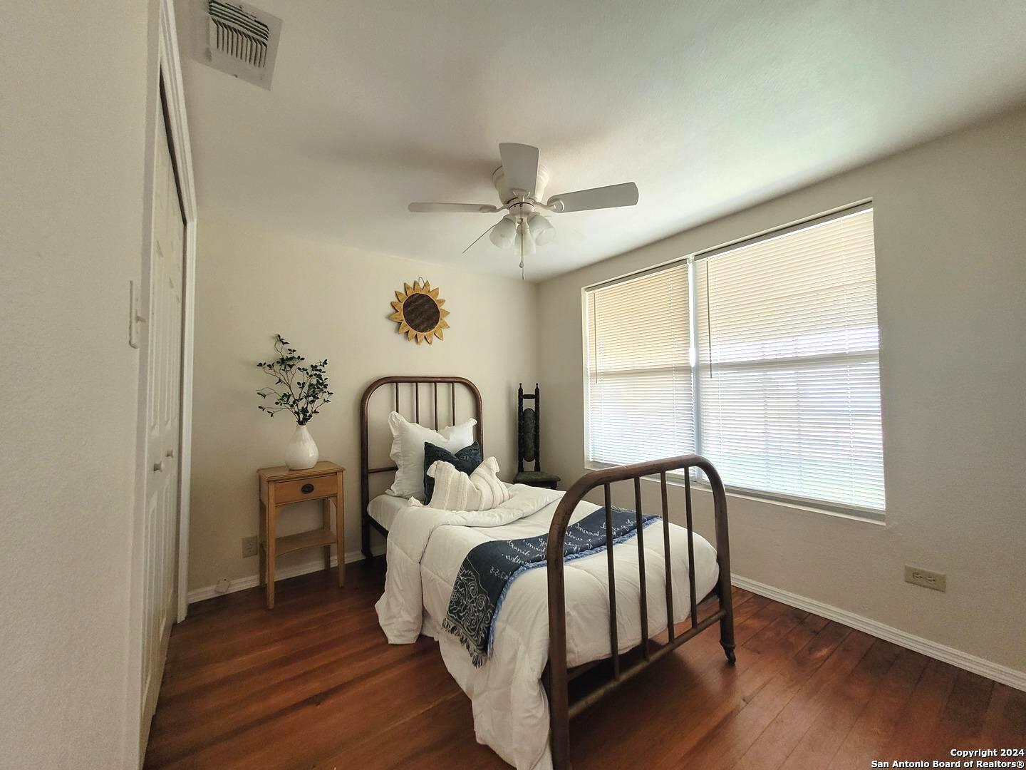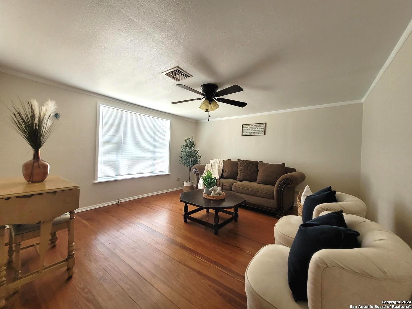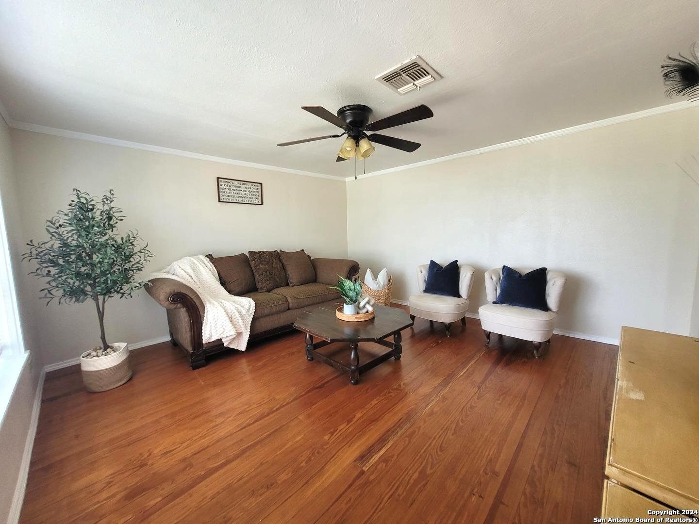 Beautiful Clean Home now available in Poth!--OWNER FINANCING AVAILABLE!--This corner lot property is located in a nice quiet area within walking distance from the School and the Football Stadium!!--The original Hardwood Floors give it that Rustic feel, and the fresh paint and remodeled bathroom provide a modern touch!-- New A/C unit installed in 2022, along with new Sewer line, and the Roof is only One Year Old!--Fully fenced with an outdoor patio area--2 car garage with additional storage room which could also be used as a workshop--Sellers definitely set this one up for you to come take a visit!--Easy access to everything in Poth, and short commute up 181 to Floresville and beyond.