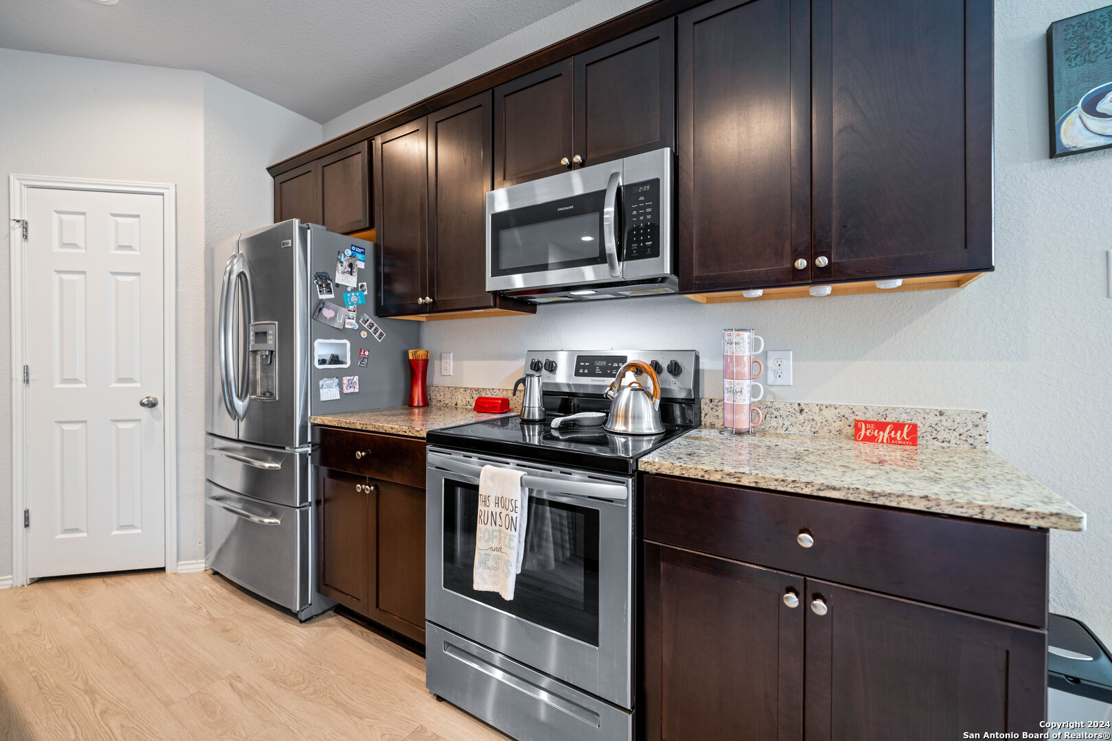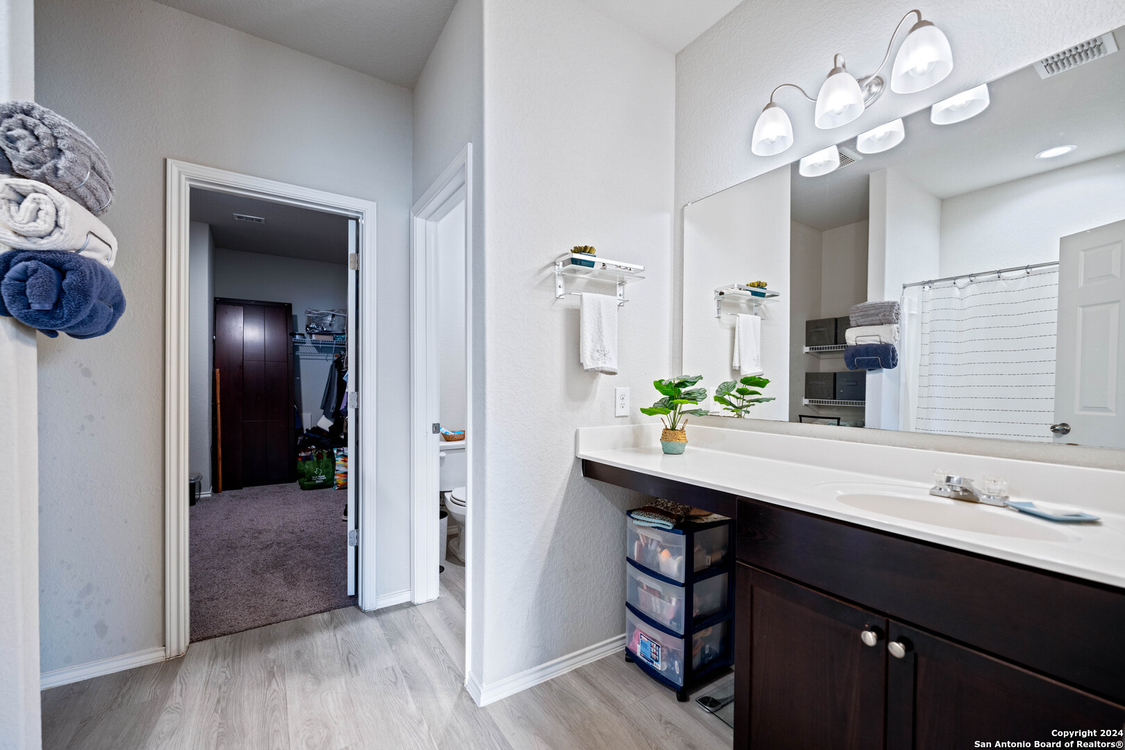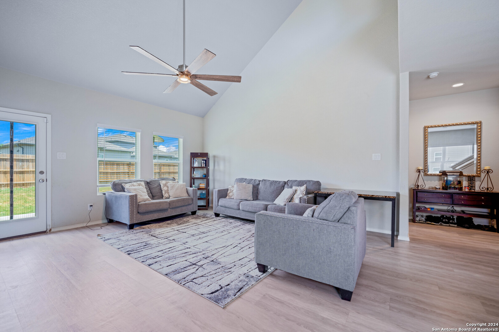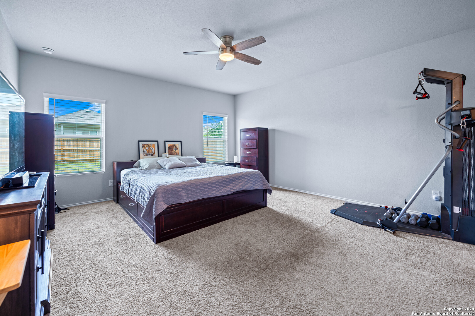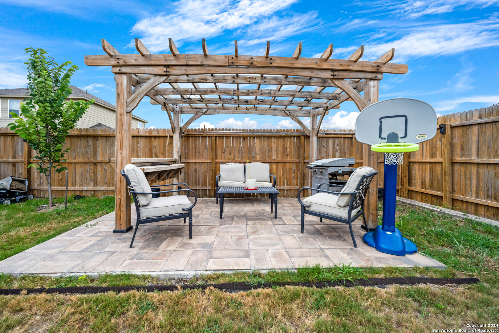 Welcome to your new home! SELLER offering $2,500 credit to buyer!! This meticulously maintained 4 bedrooms, 2.5 bath residence offers comfort, style, and convenience in a prime location. Upon entering, you'll find the perfect spot for a home office/sitting forum, moving into the home you will enter into a spacious living area perfect for entertaining or relaxing with family. Large utility area off the kitchen with walk-in pantry and laundry area. Kitchen allows for bar area seating or space for that perfect family table. Half bath located downstairs. The primary bedroom is generously sized, with large walk-in closet, also featuring additional sitting space ideal for a cozy reading nook or workout area. Upstairs the bonus area provides amply play space or room for a second tv area. Along side this space is a large enclosed 5th room. Nicely sized upstairs bedrooms throughout ensure everyone has their own comfortable space. Second bedroom offers its own walk-in closet. Outside, the backyard is a private oasis with a pergola and a BBQ pit, perfect for hosting gatherings or enjoying quiet evenings outdoors. Strategically placed trees provide ample shade as they mature, creating a serene and tranquil atmosphere. Located in a sought-after neighborhood with quick access to Highway 90, this home combines the best of suburban living with modern amenities. Don't miss out on this opportunity to make it yours! Sq footage of home is greater than what Appraisal District reflects, closer to 2600 sq feet.