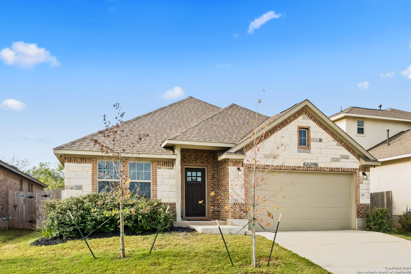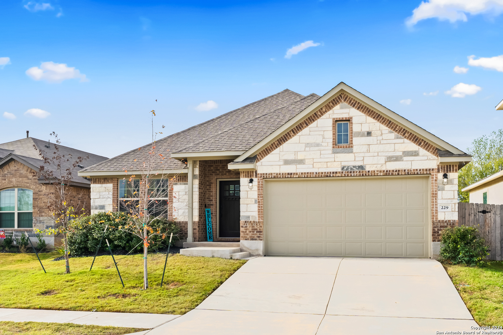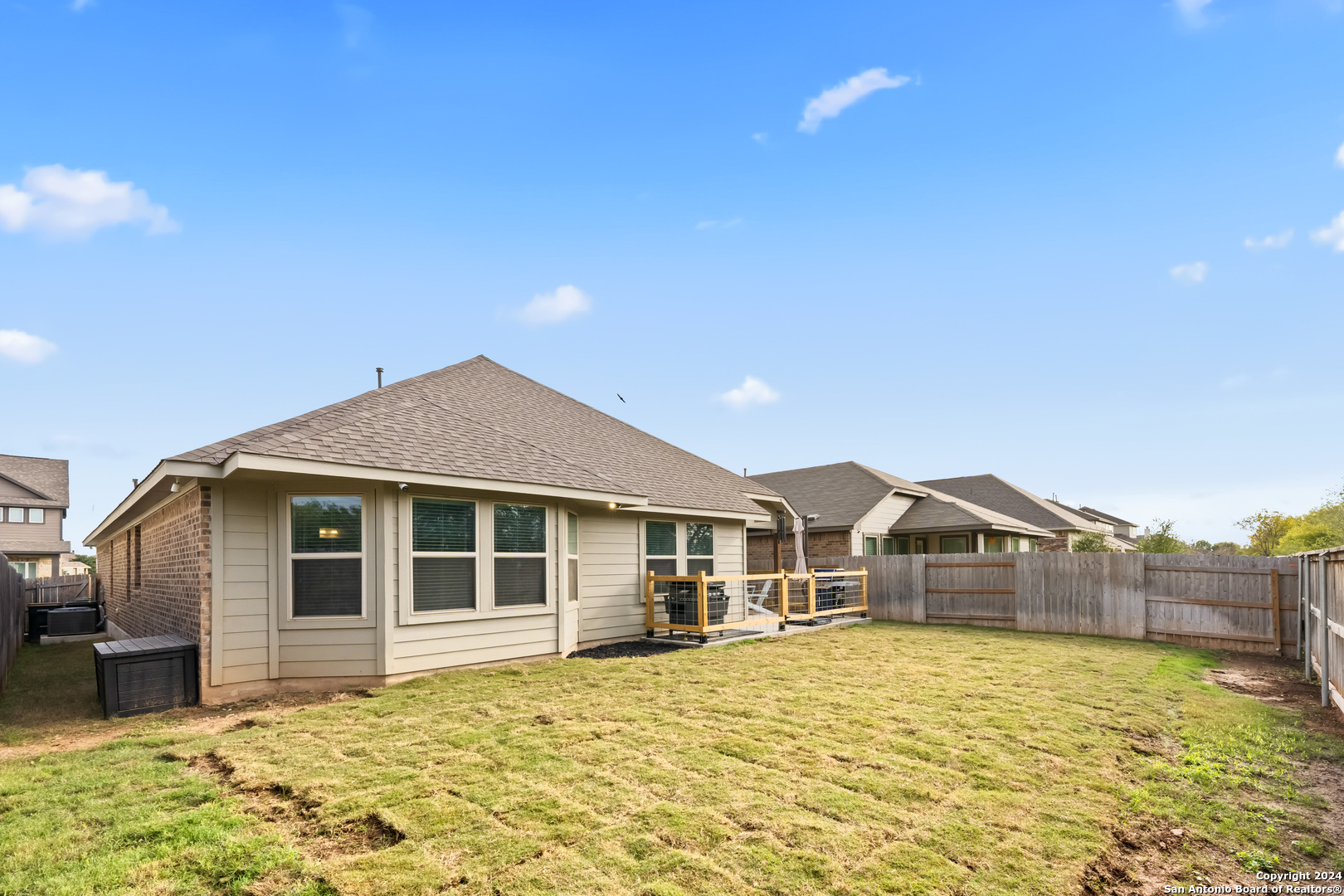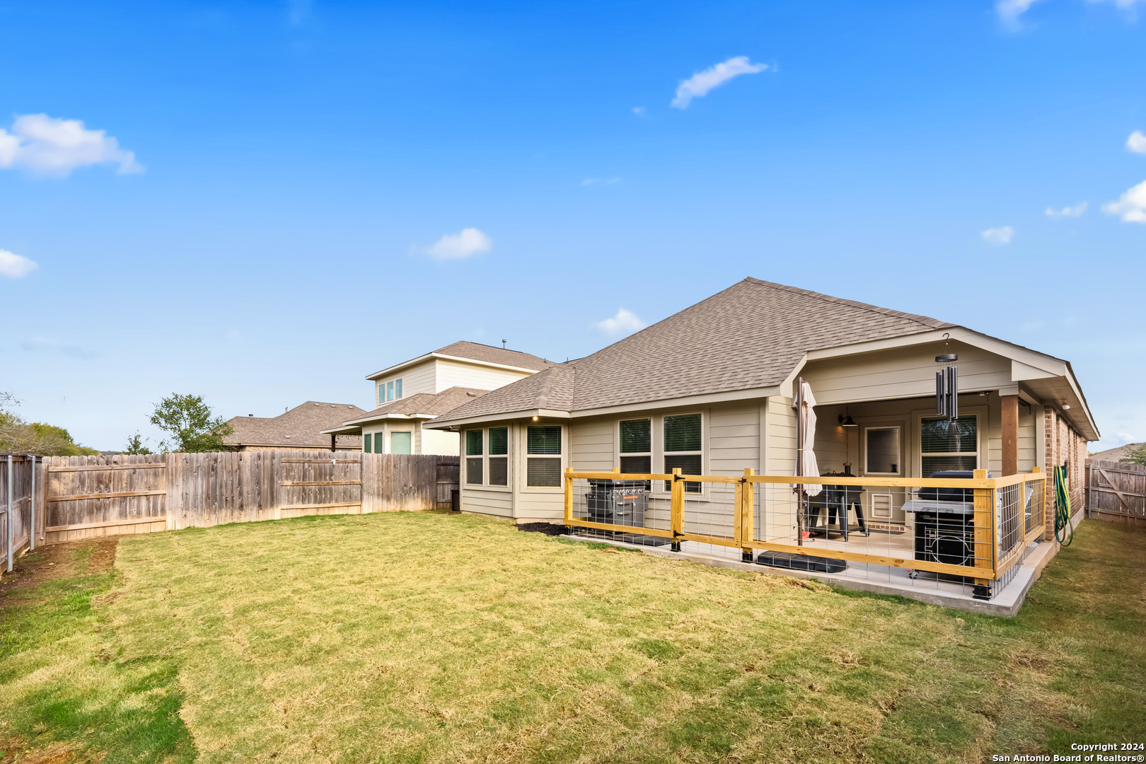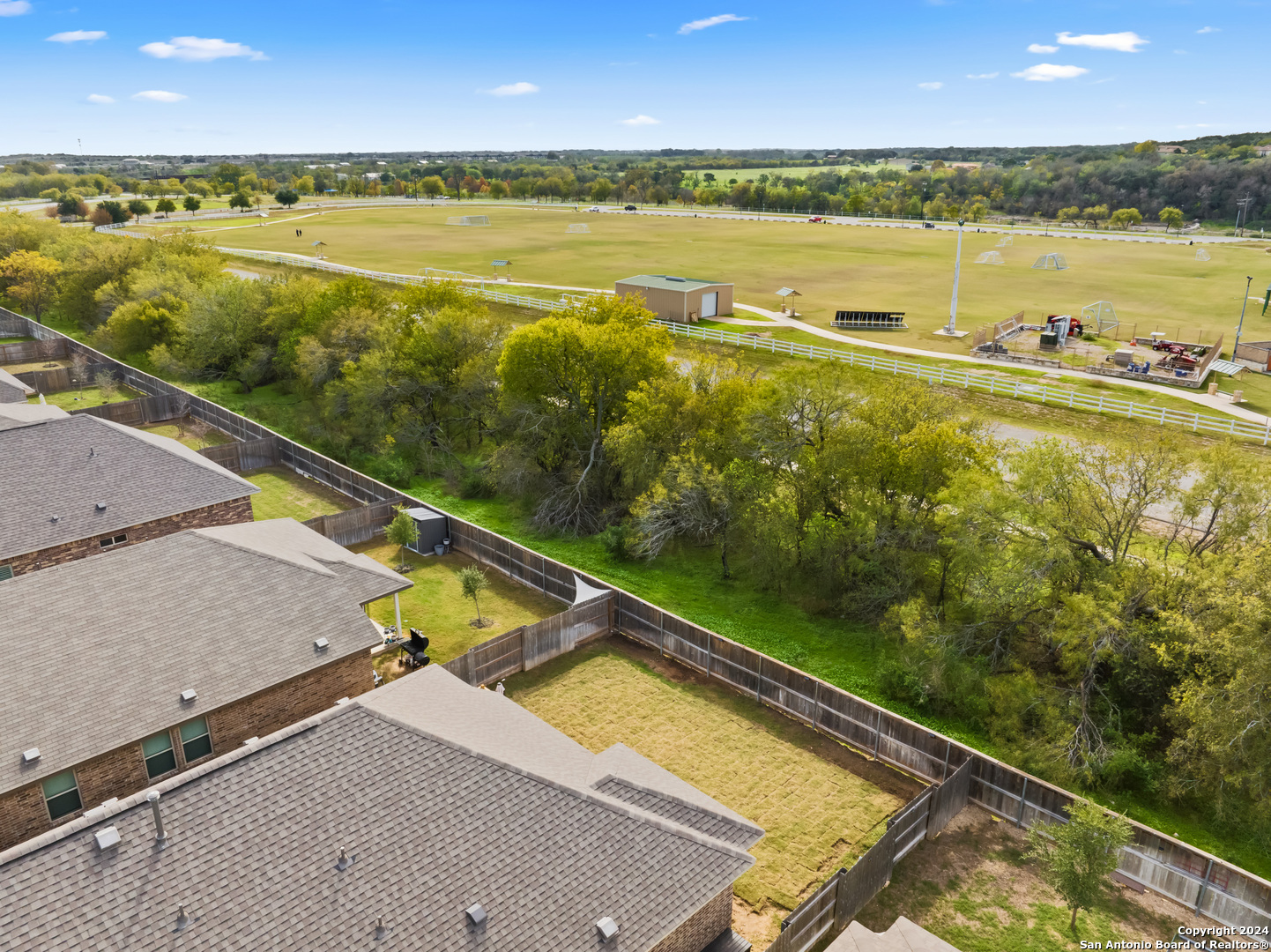 Seller is offering $5,000 in concessions for closing costs or rate buy down! The large single story layout with office and flex space make this Blanco Vista home very unique! This meticulously crafted residence, a mere two years old, is situated in the master-planned Blanco Vista community, offering the perfect blend of modern living and serene surroundings. As you step through the front door of this 2204-square-foot gem, you'll be immediately captivated by the wood-look tile that graces the open-concept living space. This single-story haven is designed with your comfort in mind, featuring 3 bedrooms, 2 bathrooms, and two versatile spaces-an inviting office and a flex room-that cater to your unique lifestyle needs. The heart of the home lies in the expansive kitchen, where culinary aspirations come to life. With its generous size and contemporary design, this kitchen is a chef's delight, perfect for entertaining or crafting family meals. The open layout creates a seamless connection to the living areas, enhancing the sense of spaciousness. Your private sanctuary awaits in the generously sized primary bedroom, offering plenty of room for a cozy sitting area. As you step outside, discover the enchanting covered and extended back patio, a perfect spot for al fresco dining or simply unwinding. The true highlight, however, is the unparalleled privacy afforded by having no rear neighbors and a backdrop of mature trees, providing a tranquil retreat right in your backyard. Blanco Vista is not just a neighborhood; it's a lifestyle. Enjoy the perks of a master-planned community, including an on-site elementary school, two pools-one junior Olympic-sized and one designed for the little ones-lush parks, playgrounds, and miles of hike and bike trails. Embrace the serenity of living close to the Blanco River, where outdoor adventures await. Don't miss the opportunity to make this stunning residence your own!