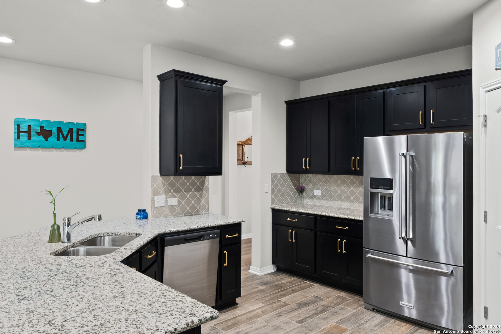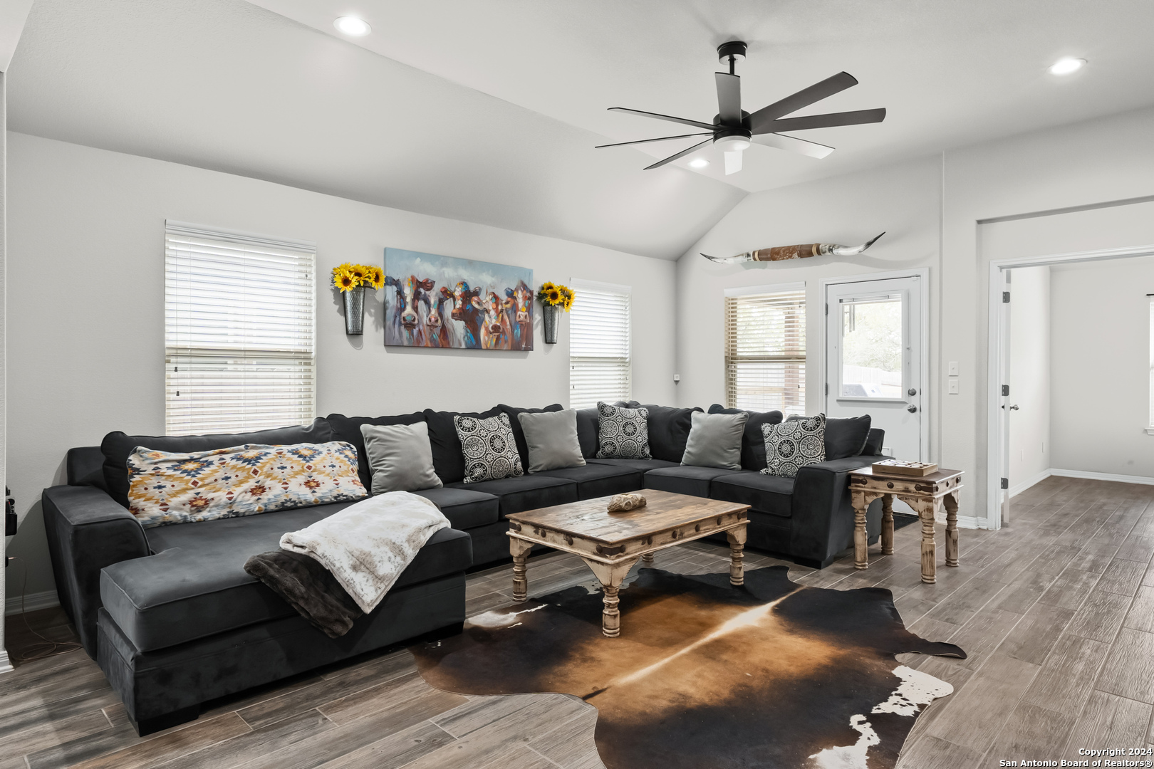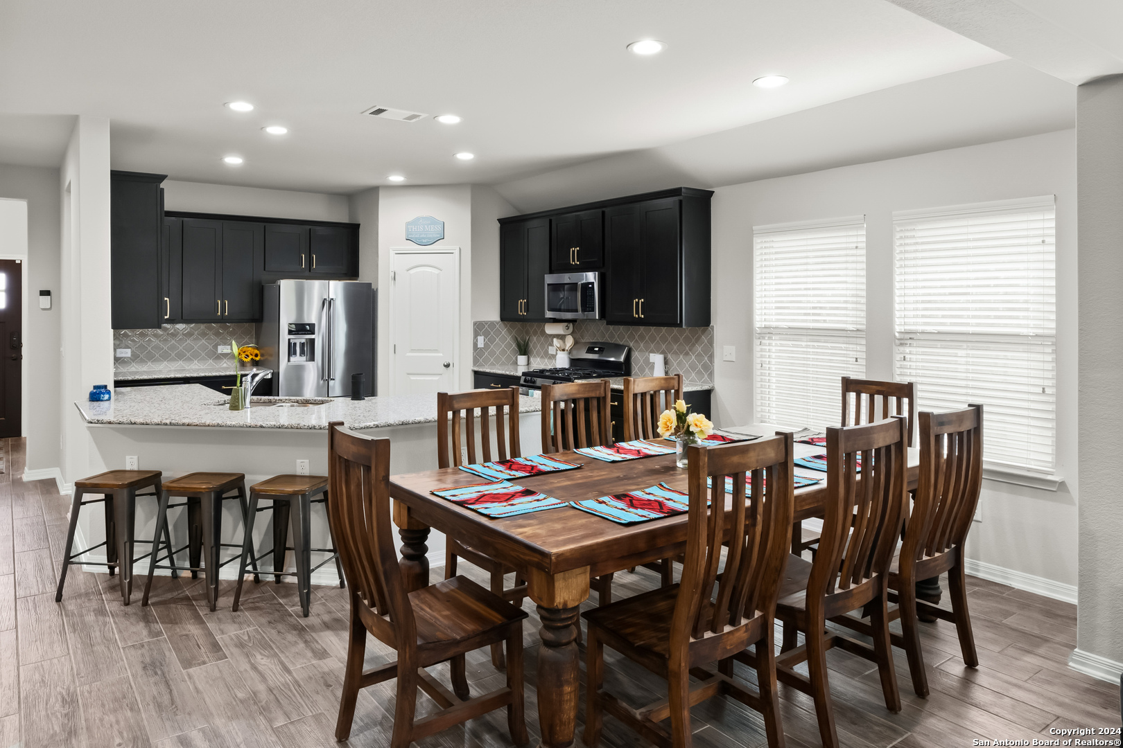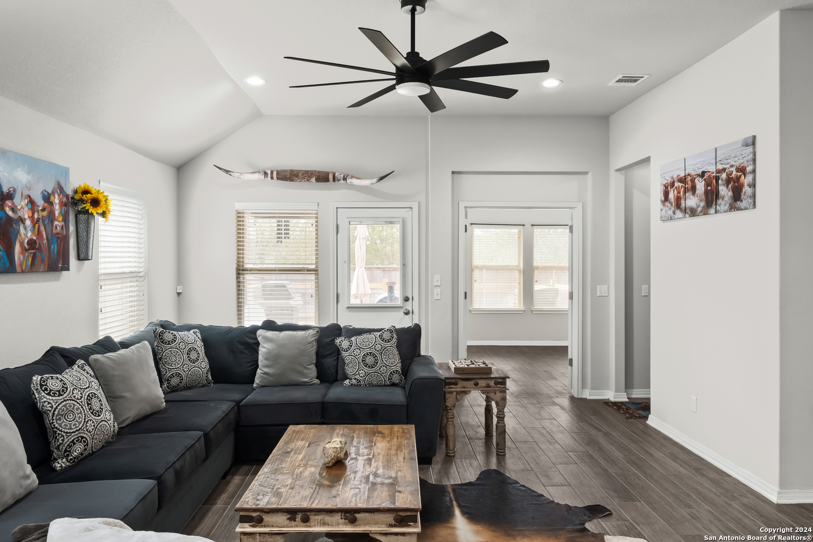 Seller is offering $5,000 in concessions for closing costs or rate buy down! The large single story layout with office and flex space make this Blanco Vista home very unique! This meticulously crafted residence, a mere two years old, is situated in the master-planned Blanco Vista community, offering the perfect blend of modern living and serene surroundings. As you step through the front door of this 2204-square-foot gem, you'll be immediately captivated by the wood-look tile that graces the open-concept living space. This single-story haven is designed with your comfort in mind, featuring 3 bedrooms, 2 bathrooms, and two versatile spaces-an inviting office and a flex room-that cater to your unique lifestyle needs. The heart of the home lies in the expansive kitchen, where culinary aspirations come to life. With its generous size and contemporary design, this kitchen is a chef's delight, perfect for entertaining or crafting family meals. The open layout creates a seamless connection to the living areas, enhancing the sense of spaciousness. Your private sanctuary awaits in the generously sized primary bedroom, offering plenty of room for a cozy sitting area. As you step outside, discover the enchanting covered and extended back patio, a perfect spot for al fresco dining or simply unwinding. The true highlight, however, is the unparalleled privacy afforded by having no rear neighbors and a backdrop of mature trees, providing a tranquil retreat right in your backyard. Blanco Vista is not just a neighborhood; it's a lifestyle. Enjoy the perks of a master-planned community, including an on-site elementary school, two pools-one junior Olympic-sized and one designed for the little ones-lush parks, playgrounds, and miles of hike and bike trails. Embrace the serenity of living close to the Blanco River, where outdoor adventures await. Don't miss the opportunity to make this stunning residence your own!