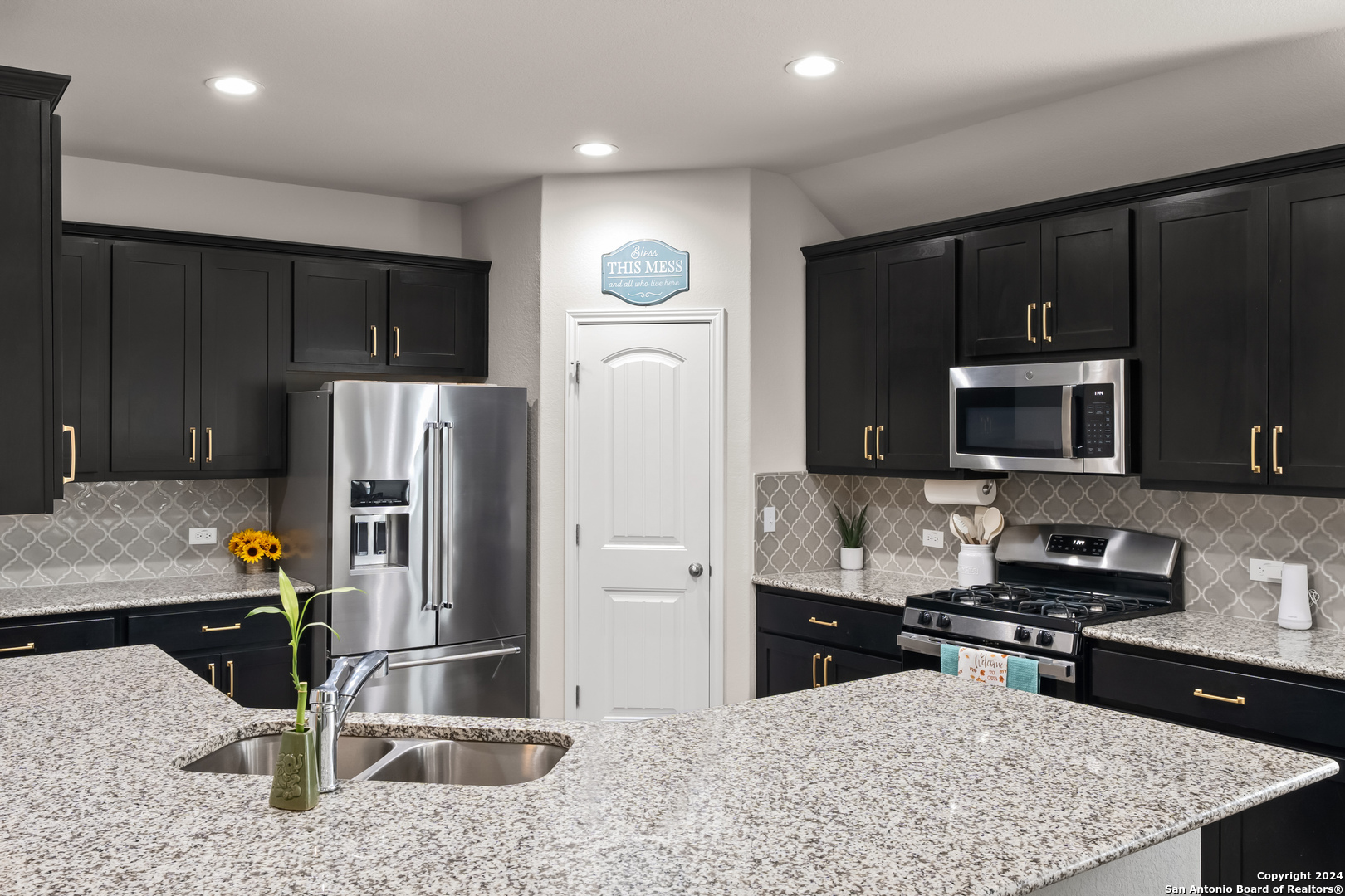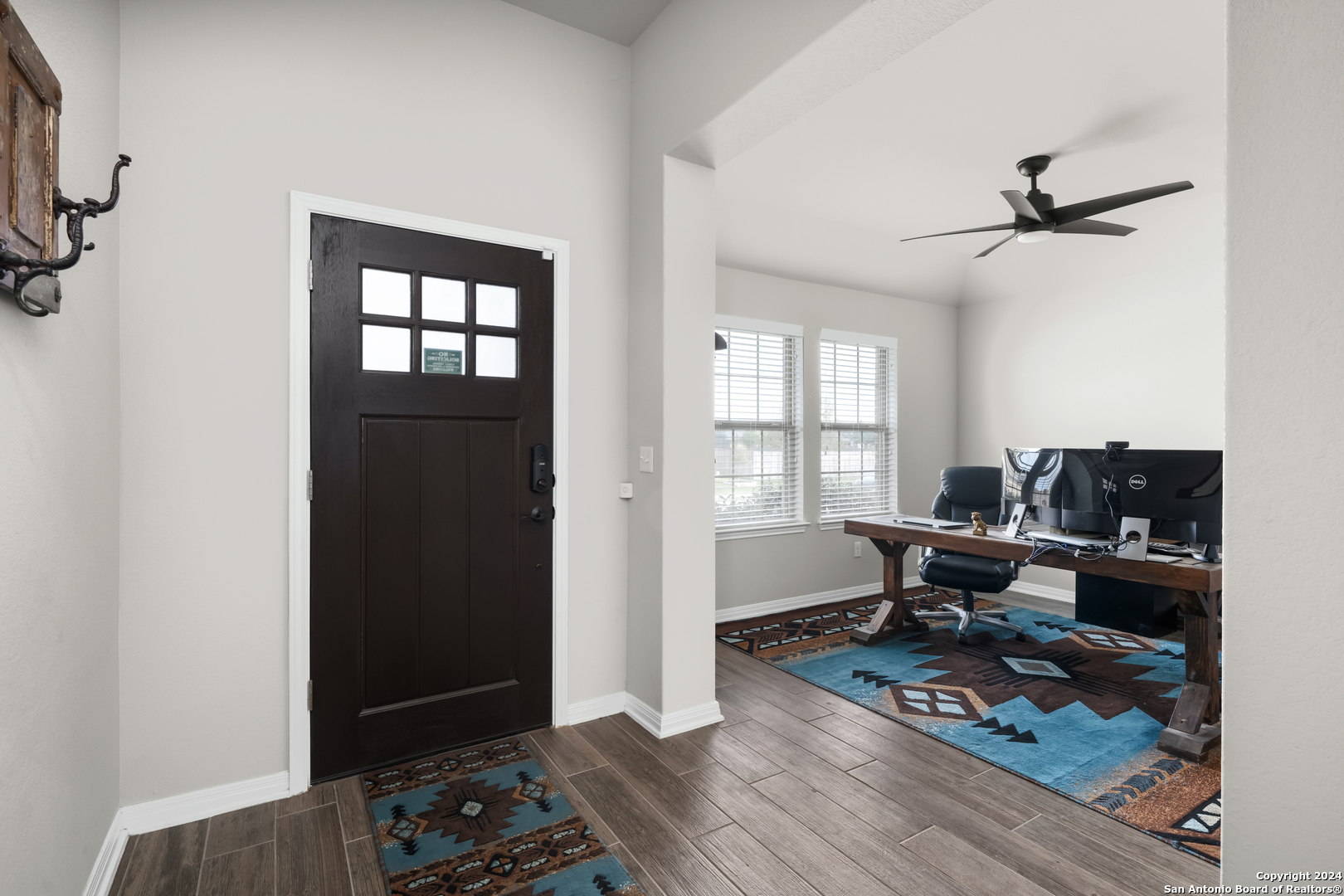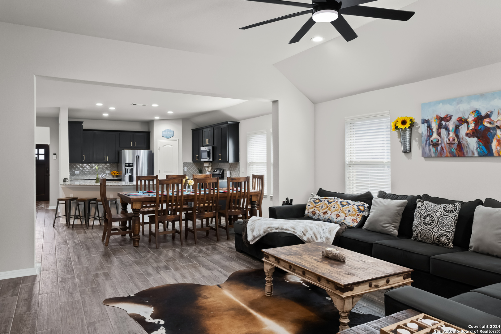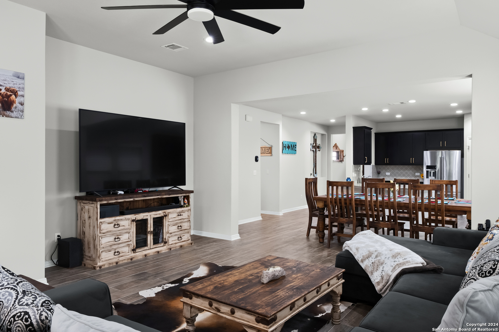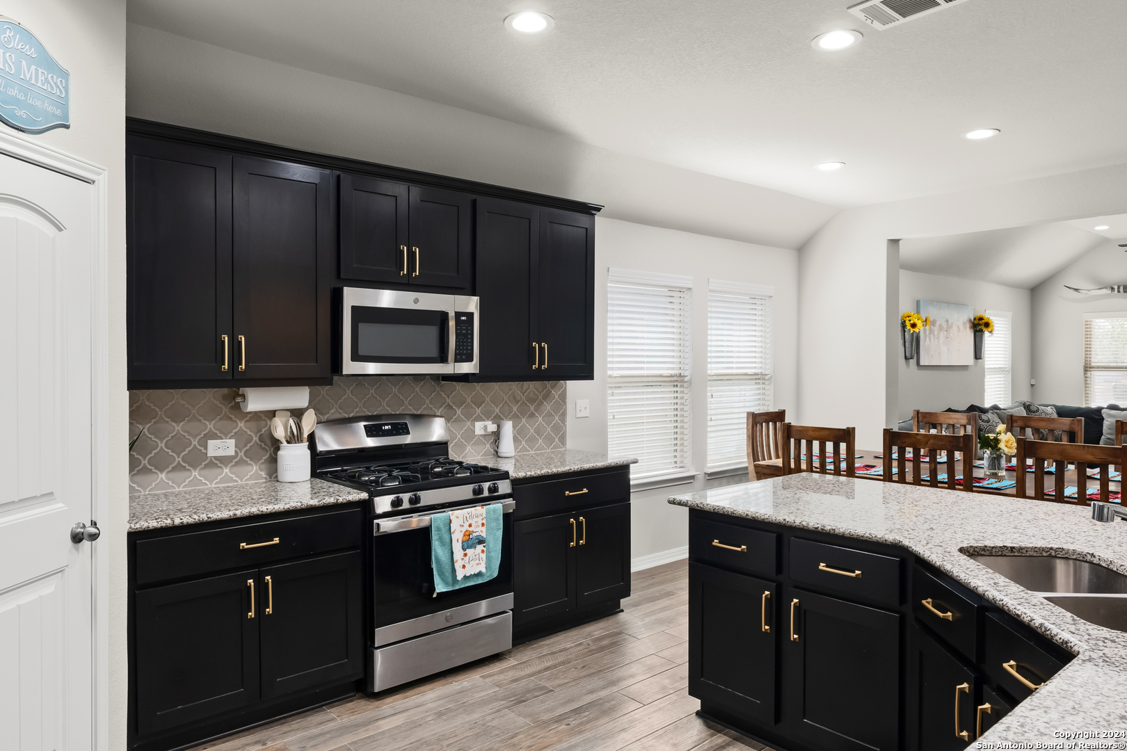 Seller is offering $5,000 in concessions for closing costs or rate buy down! The large single story layout with office and flex space make this Blanco Vista home very unique! This meticulously crafted residence, a mere two years old, is situated in the master-planned Blanco Vista community, offering the perfect blend of modern living and serene surroundings. As you step through the front door of this 2204-square-foot gem, you'll be immediately captivated by the wood-look tile that graces the open-concept living space. This single-story haven is designed with your comfort in mind, featuring 3 bedrooms, 2 bathrooms, and two versatile spaces-an inviting office and a flex room-that cater to your unique lifestyle needs. The heart of the home lies in the expansive kitchen, where culinary aspirations come to life. With its generous size and contemporary design, this kitchen is a chef's delight, perfect for entertaining or crafting family meals. The open layout creates a seamless connection to the living areas, enhancing the sense of spaciousness. Your private sanctuary awaits in the generously sized primary bedroom, offering plenty of room for a cozy sitting area. As you step outside, discover the enchanting covered and extended back patio, a perfect spot for al fresco dining or simply unwinding. The true highlight, however, is the unparalleled privacy afforded by having no rear neighbors and a backdrop of mature trees, providing a tranquil retreat right in your backyard. Blanco Vista is not just a neighborhood; it's a lifestyle. Enjoy the perks of a master-planned community, including an on-site elementary school, two pools-one junior Olympic-sized and one designed for the little ones-lush parks, playgrounds, and miles of hike and bike trails. Embrace the serenity of living close to the Blanco River, where outdoor adventures await. Don't miss the opportunity to make this stunning residence your own!