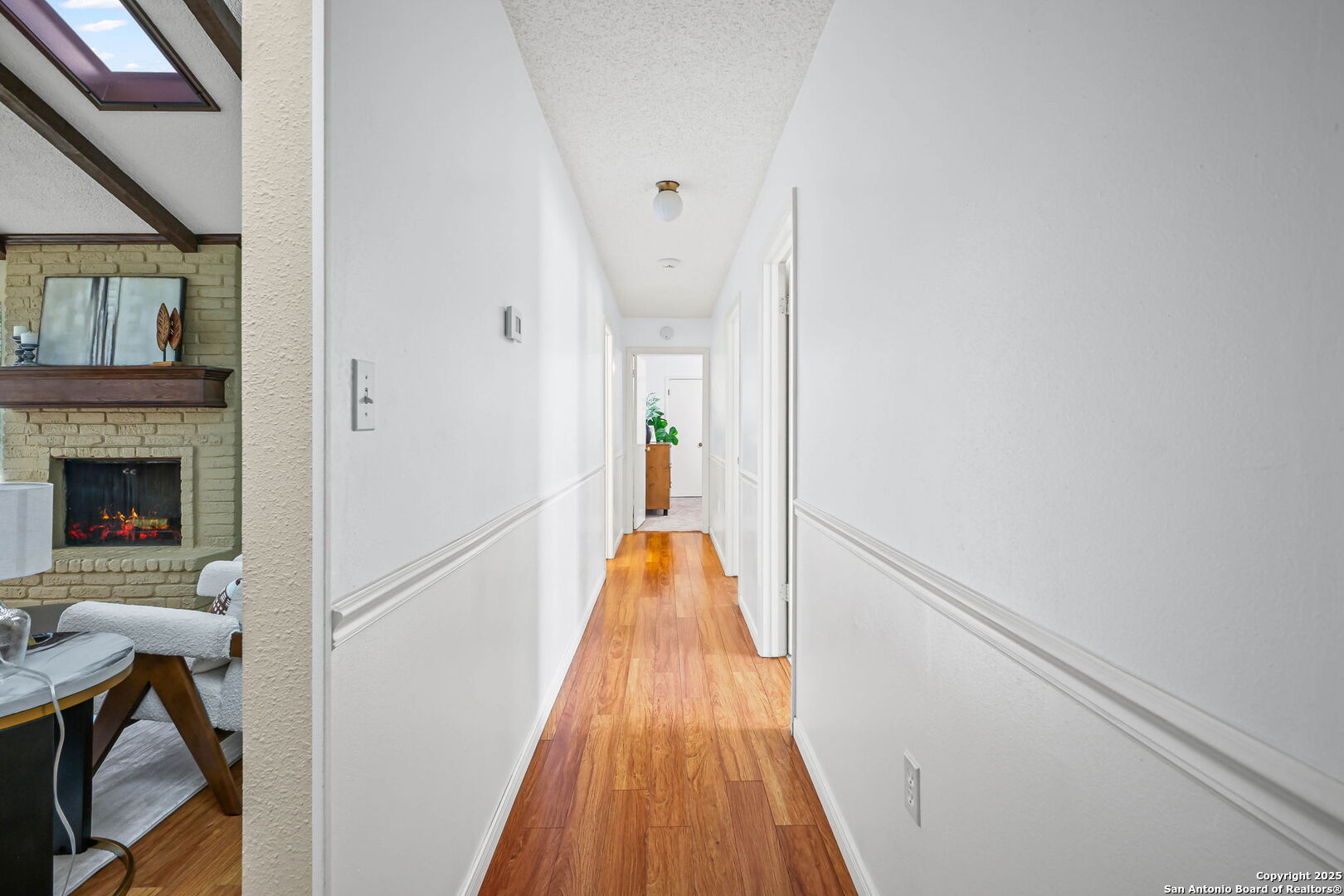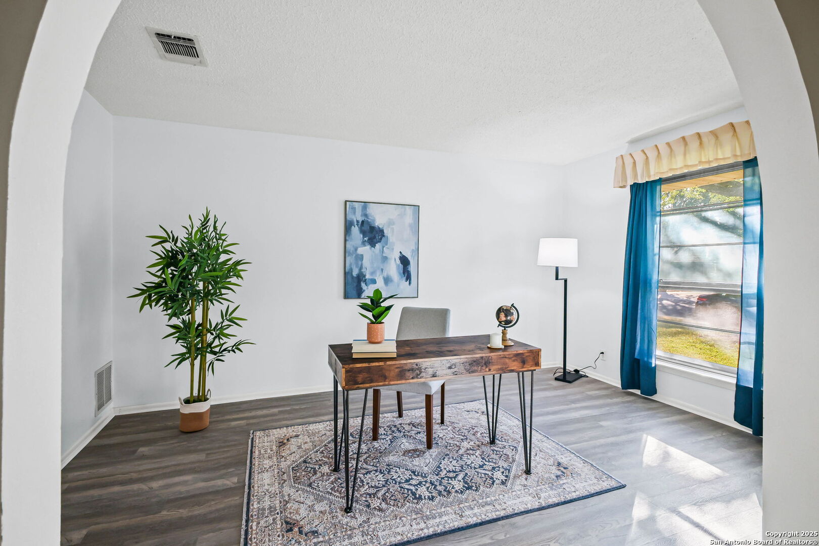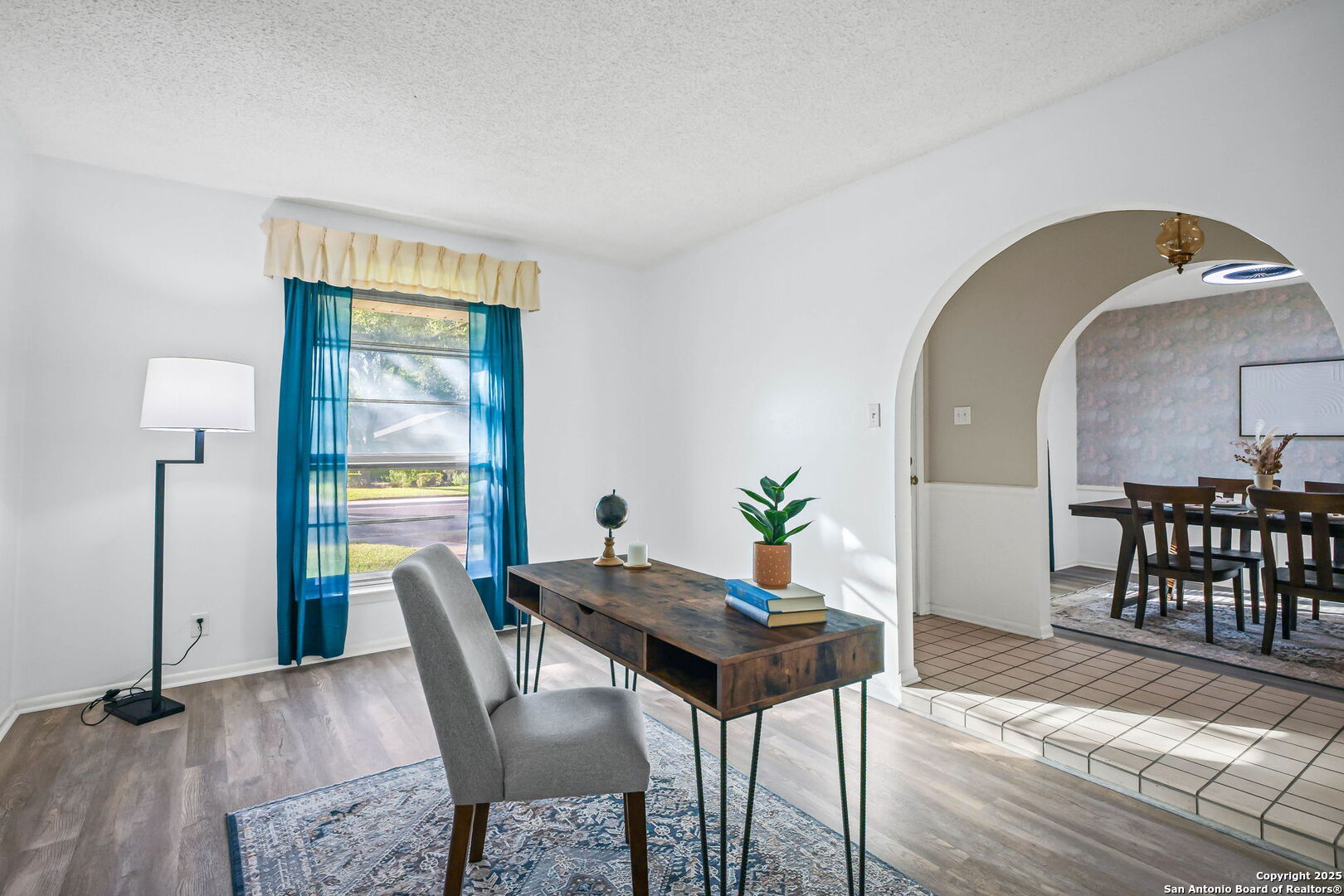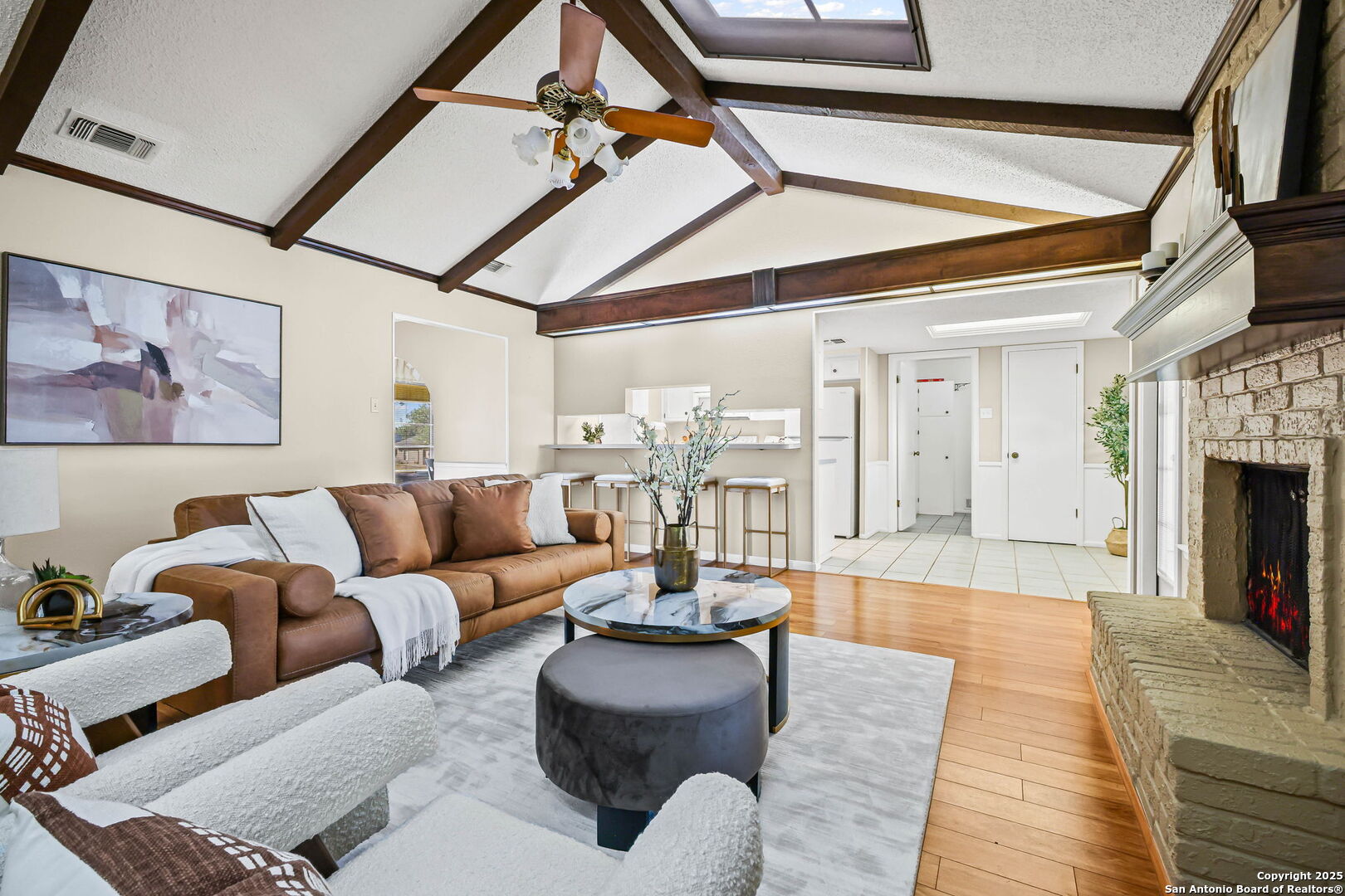OPEN HOUSE: Saturday, Oct 18 * 1-4 PM and Sunday, Oct 19 * 12-3 PM This meticulously maintained single-story ranch sits on a spacious corner lot with a side-entry two-car garage and extra storage. Inside, you'll find four bedrooms, a large living room, and two dining areas-including a separate formal dining room. The vaulted living room with a cozy wood-burning fireplace is perfect for entertaining. Enjoy charming architectural details like wood beams and arched entryways leading to the dining room and private study/office both with new laminate flooring. Step out back to your own outdoor oasis featuring a gazebo next to a sparkling clean pool, sprinkler system, covered patio with new ceiling fans. If you're handy, you'll love the two sheds-one equipped with workbenches and power for your projects. You'll appreciate the fact that this has a diving POOL and NO HOA. Located in highly rated SCUCISD, and just minutes from JBSA Randolph and JBSA Fort Sam Houston, shopping, and dining. Don't miss it-schedule your showing today! Tons of potential here!