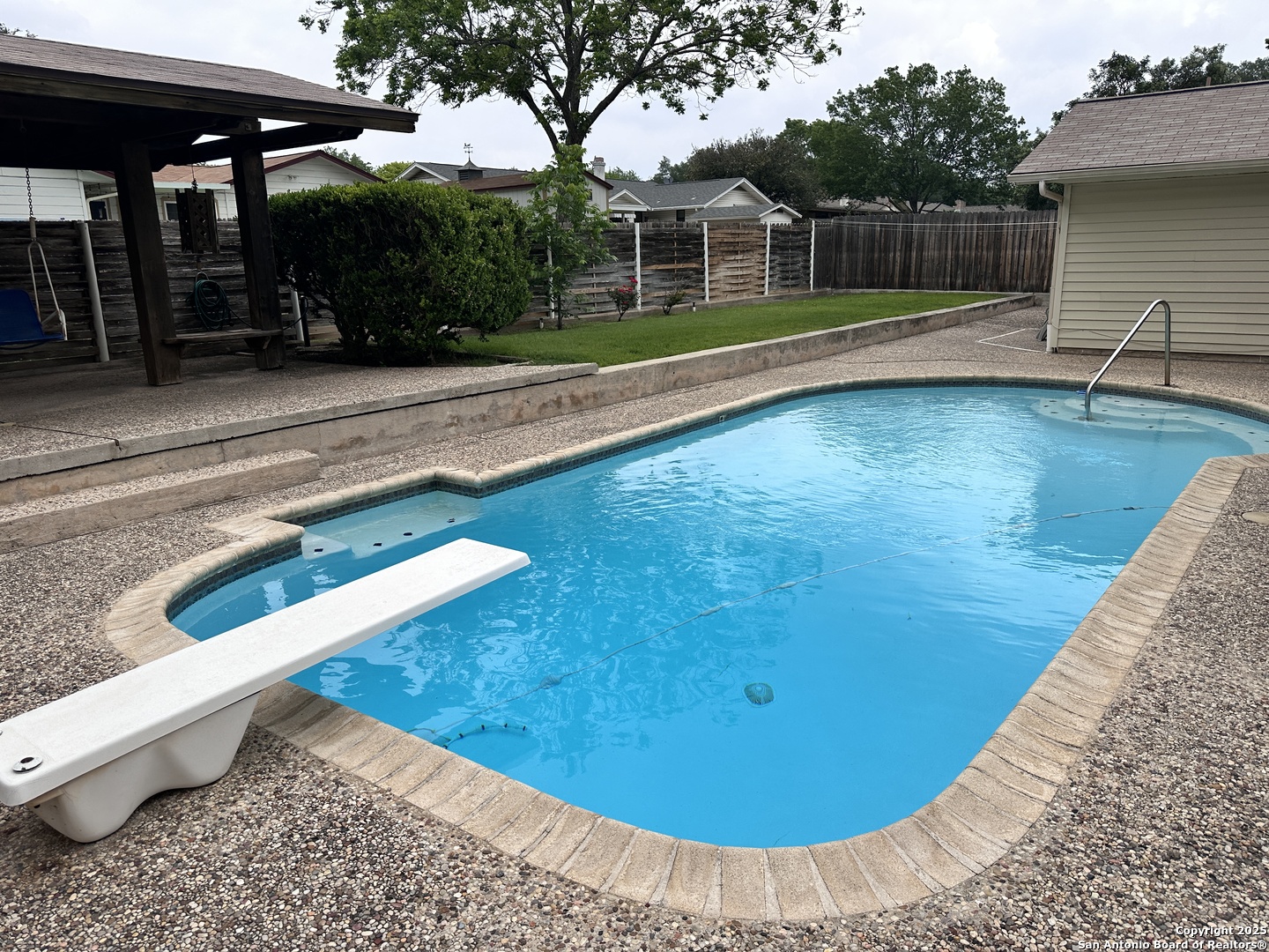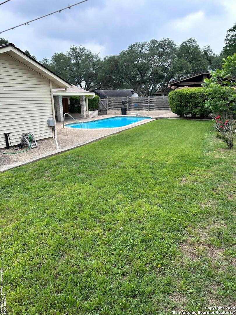 Stunning Corner Lot Home in Greenfield Village - Ready to Go! This charming single-story ranch-style home, located on a spacious corner lot, offers everything you need for comfortable living and entertaining. Oversized, side-entry two-car garage with a walk-in workshop, Outdoor Oasis with a Beautiful Gary Pool, sprinkler system. With a newer roof, fresh paint, new water heater, remodeled shower- it's truly move-in ready. Inside, you'll find generously sized bedrooms with walk-in closets. The large living area with vaulted ceilings and a cozy wood-burning fireplace is perfect for hosting friends and family. Step outside to the covered deck and patio area, ideal for entertaining or unwinding in the evening. The expansive backyard includes two large storage sheds that convey with the property, offering ample storage options. Highly sought-after Schertz-Cibolo-Universal City ISD and just minutes from Randolph AFB, Fort Sam Houston, shopping, dining, and more. Don't miss out on this exceptional home! Schedule your showing today!
