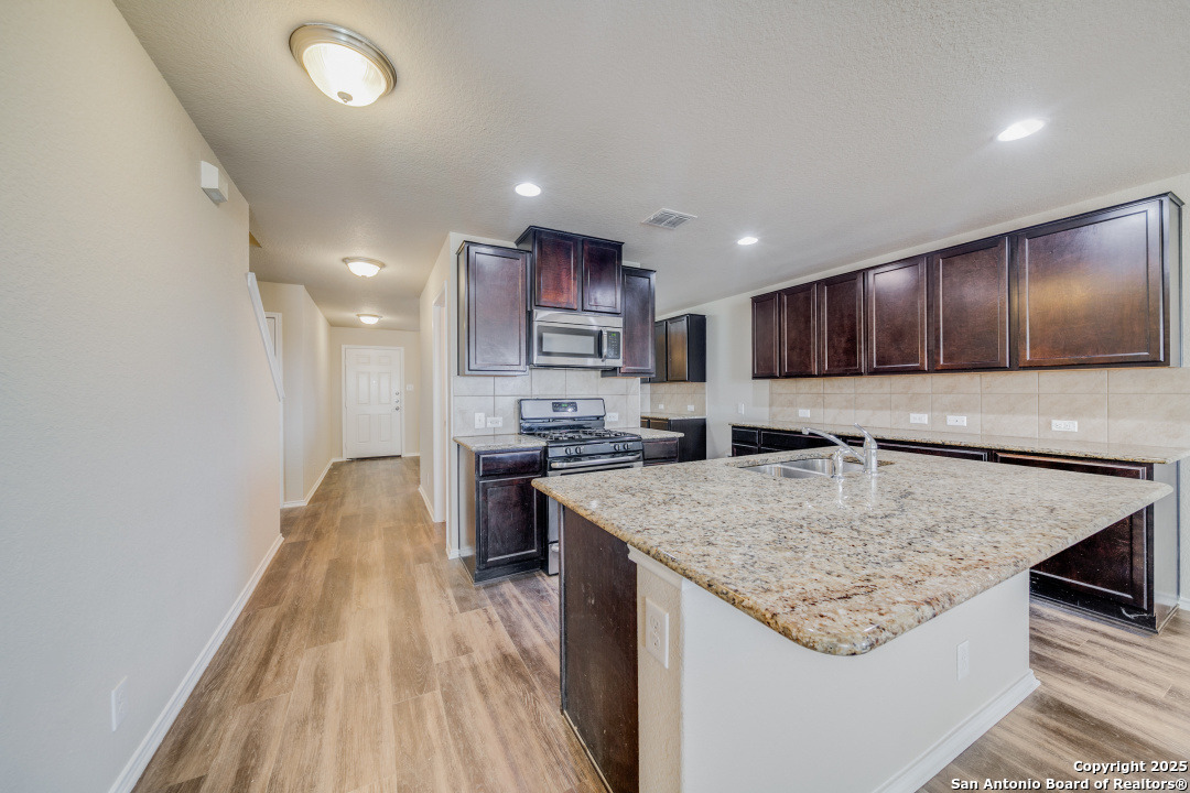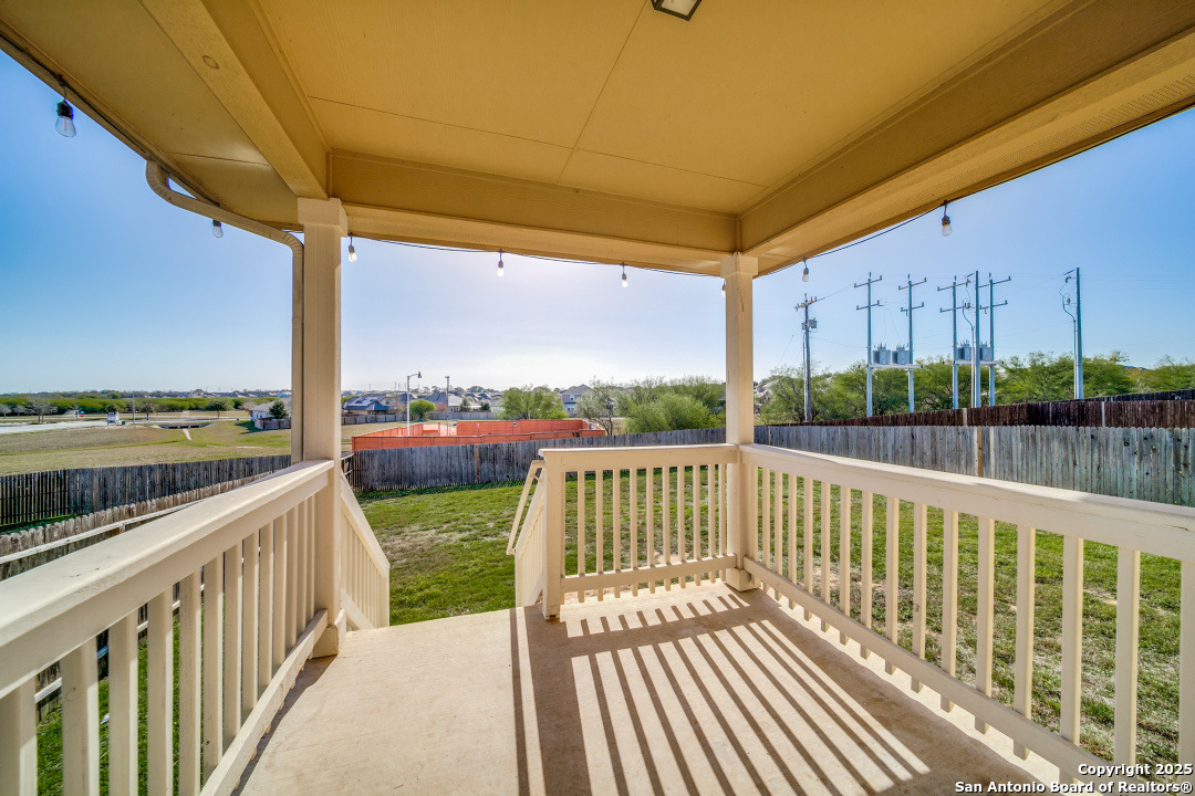 This well-maintained home is located near Randolph AFB, IH 35, and Loop 1604, and offers a convenient and desirable location for both work and play. It has a spacious, open floor plan, perfect for work and play. The community is family-friendly with a playground and elementary and junior high schools around the corner. The primary suite is located downstairs for added privacy. , The kitchen has a gas cooking range and beautiful granite countertops. Upstairs are 4 additional bedrooms that lead into a generously sized game room. Additional amenities include a full sprinkler system, gutters, water softener, and an automatic garage door opener for added convenience.