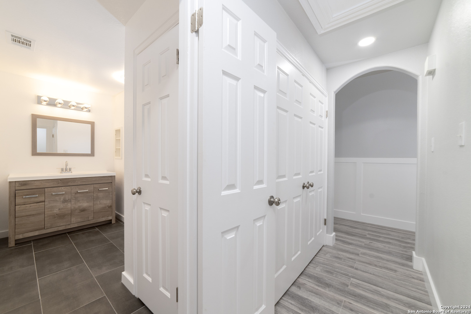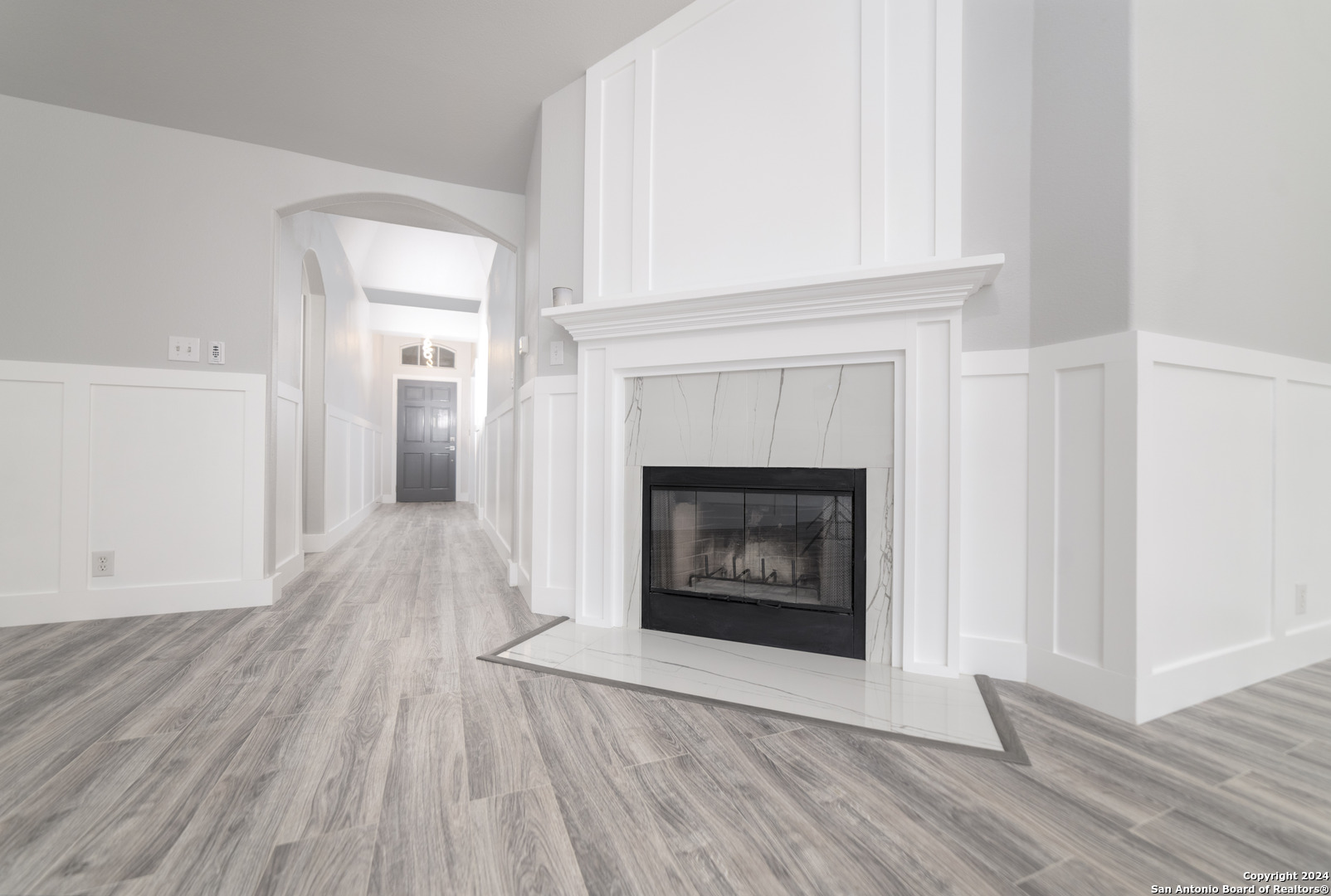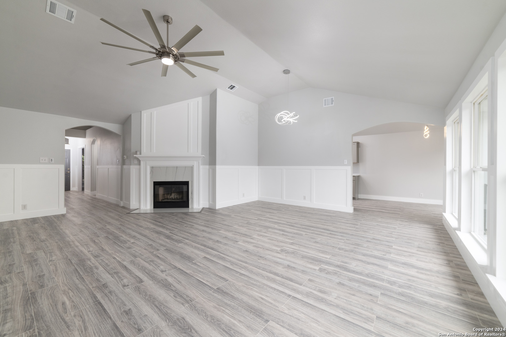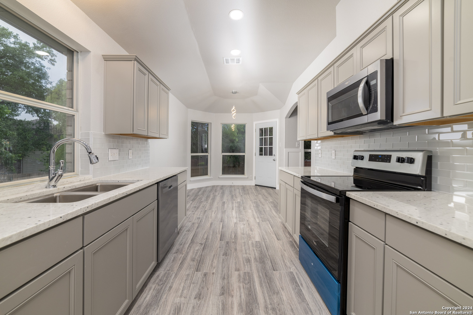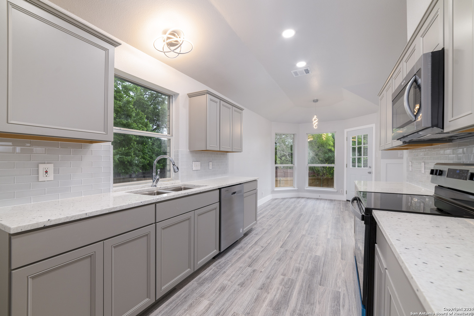 Nestled in the heart of the well-established neighborhood of Greenshire, 1596 Osage Ave embodies the perfect blend of classic charm and modern elegance. This meticulously renovated residence is a testament to timeless sophistication, offering a serene retreat from the hustle and bustle of everyday life. Step inside to discover a meticulously crafted interior where every detail exudes sophistication. The centerpiece of the living space is a stunning fireplace, perfect for cozy evenings spent with loved ones. Adorned with wainscoting, the walls add a touch of classic elegance to the contemporary ambiance. The kitchen is a chef's delight, boasting sleek countertops, stainless steel appliances, and a large walk-in pantry for all your storage needs. Whether you're whipping up a gourmet meal or simply enjoying a morning cup of coffee, this space is sure to inspire your culinary adventures. Retreat to the luxurious master suite, where relaxation awaits. Pamper yourself in the ensuite bathroom, complete with a garden tub and separate shower, perfect for unwinding after a long day. With spacious closets and ample natural light, this sanctuary offers the ultimate in comfort and tranquility. Outside, the peaceful surroundings of this quiet street provide the perfect backdrop for outdoor enjoyment. Relax on the patio or take a stroll through the neighborhood, soaking in the beauty of the lush greenery and mature trees. Conveniently located near shopping, dining, and entertainment options, this home offers easy access to everything Schertz has to offer. Plus, with quick access to major highways, commuting to San Antonio or elsewhere is a breeze. Don't miss your chance to experience the best of modern living in this exquisite home. Schedule a showing today and make 1596 Osage Ave your own private oasis in the heart of Schertz.