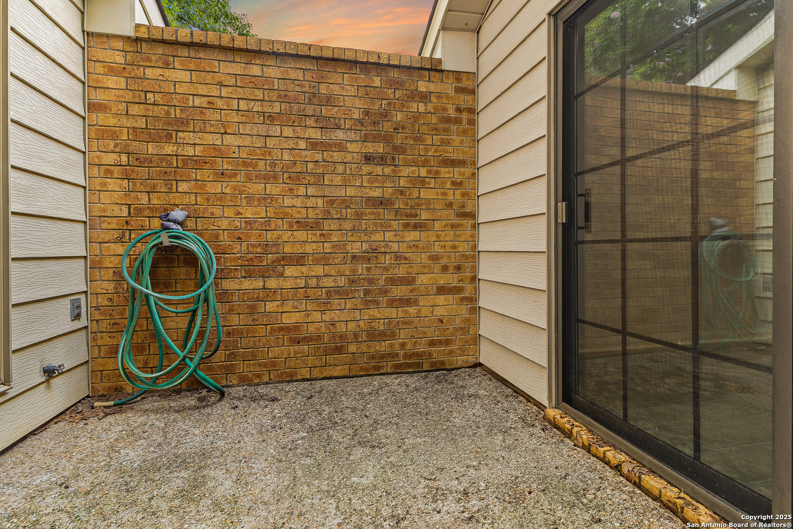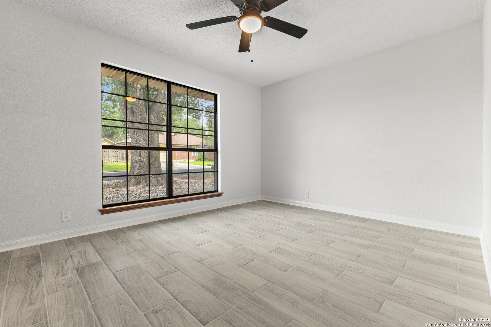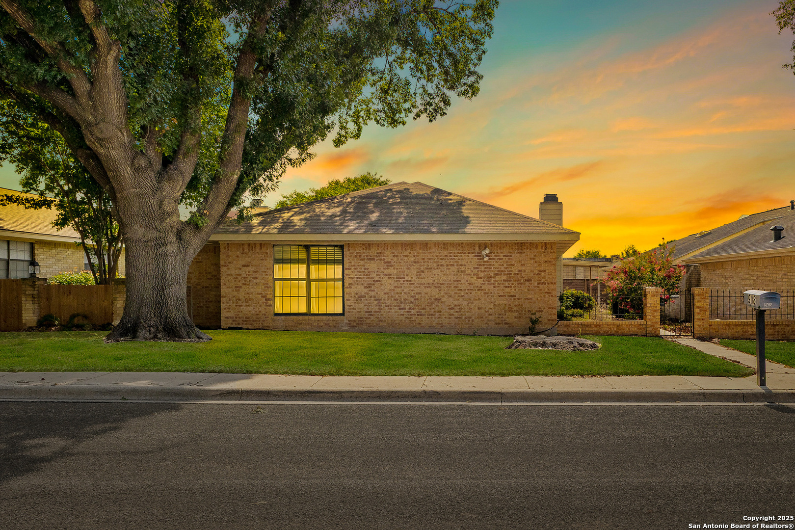 Step into this charming and unique home in the heart of Schertz, offering no carpet and easy-to-maintain landscaping. The open-concept floor plan features ceramic tile flooring throughout, creating a clean and cohesive look. Enjoy soaring ceilings with rustic wood beams and a cozy wood-burning fireplace that anchors the spacious living area. The primary suite includes a skylight and a private atrium-an ideal space to unwind with a good book or morning coffee. Located just minutes from I-35, Randolph AFB, and local shopping, this home is nestled in a quiet, established community with no HOA-a rare find in such a convenient location.