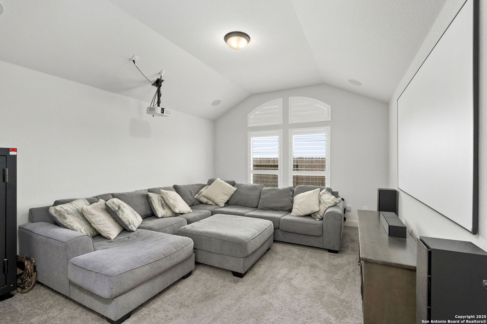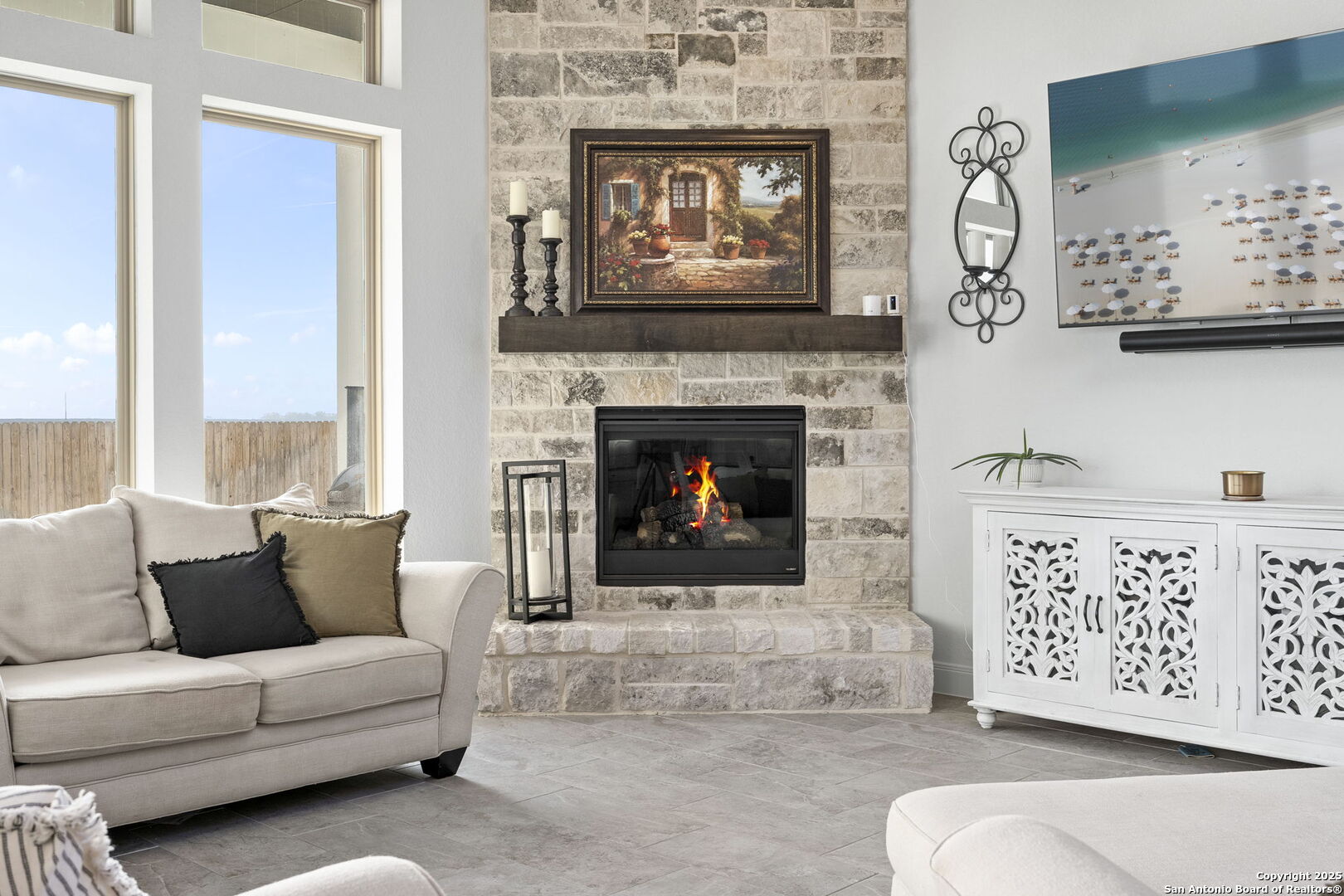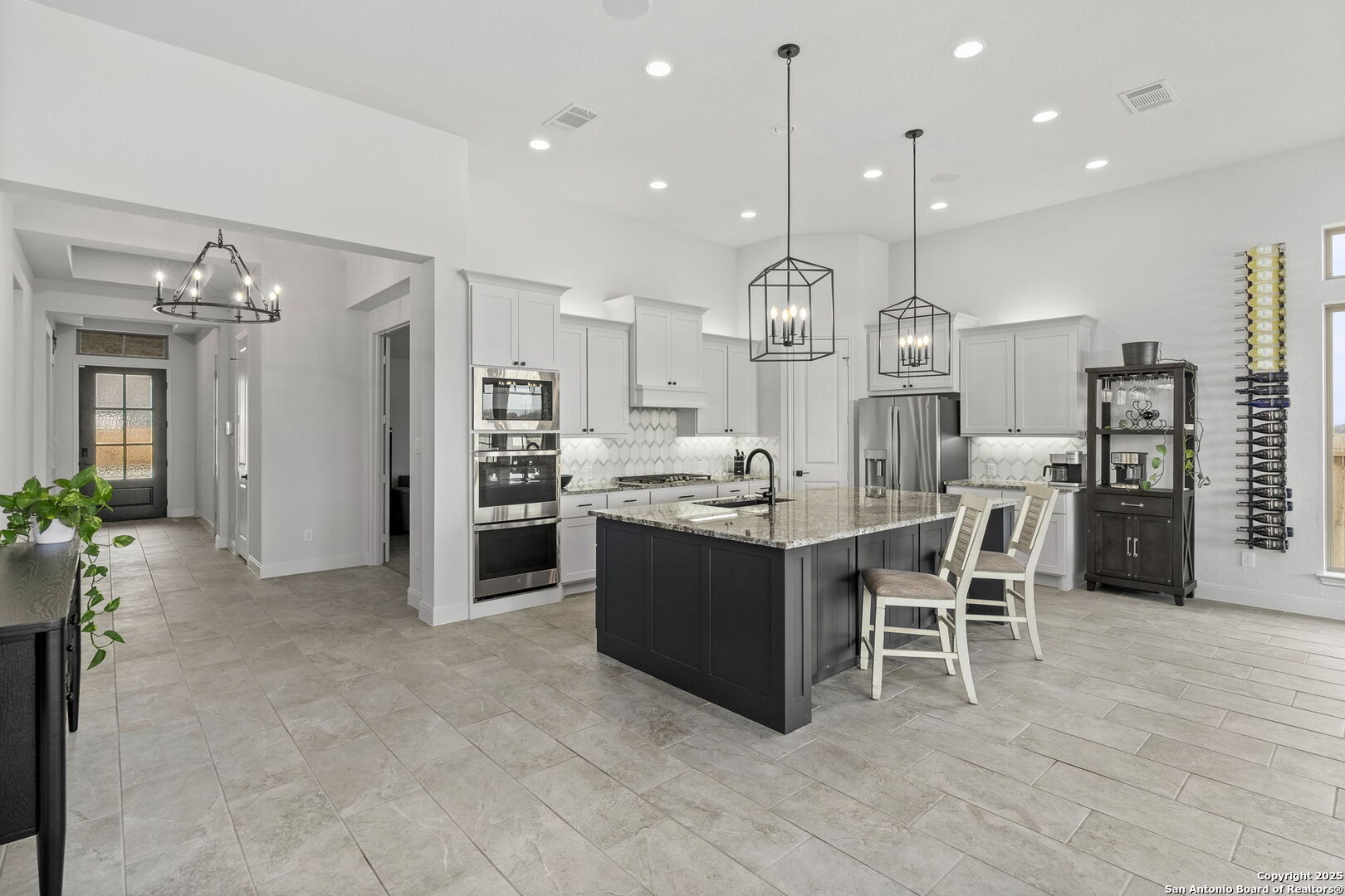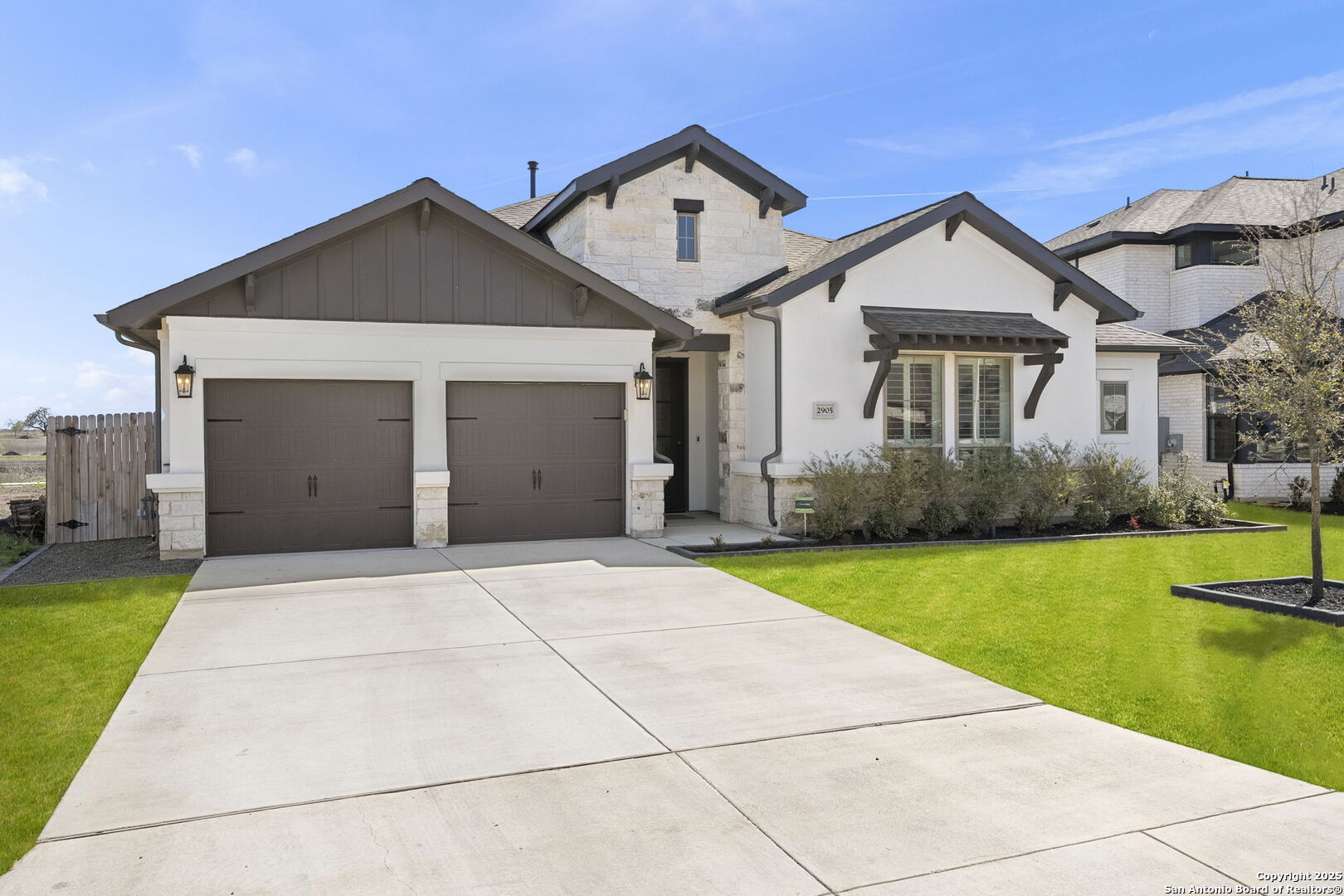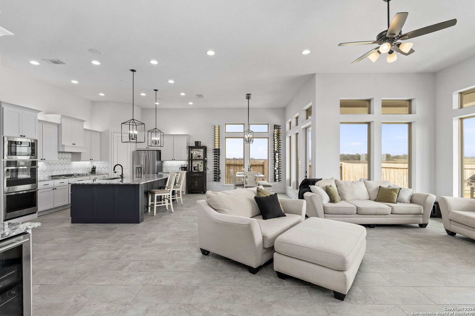 Built in 2024 by Perry Homes, this stunning 2,987 sq. ft. residence offers modern luxury and thoughtful design. Step into a grand entryway that sets the tone for this spacious home, featuring a dedicated media room complete with a projector and screen. The chef's kitchen is a culinary dream, boasting double ovens, granite countertops, a breakfast bar, and ample storage. It seamlessly opens to the dining area and living room, where a butler's bar and a striking white rock gas fireplace create a warm and inviting ambiance. Large windows flood the space with natural light while offering serene views of the country greenbelt. The primary suite is a true retreat, with an en suite bathroom featuring a garden tub, an oversized walk-in shower with a bench, a double vanity, and multiple closets-one of which conveniently connects to the utility room with additional storage. Perfect for multi-generational living or guests, one of the secondary bedrooms includes a private en suite bathroom. Two additional bedrooms share a Jack-and-Jill bathroom, ensuring comfort and privacy for all. Enjoy outdoor living on the extended covered patio, ideal for entertaining or relaxing as you take in breathtaking sunsets. Located in the highly sought-after Navarro ISD and conveniently positioned near I-10 and Hwy 46, this home offers easy access to both Seguin and New Braunfels. Plus, the 2-year and 10-year builder's warranties are still in place for added peace of mind. Don't miss this exceptional opportunity-schedule your showing today!
