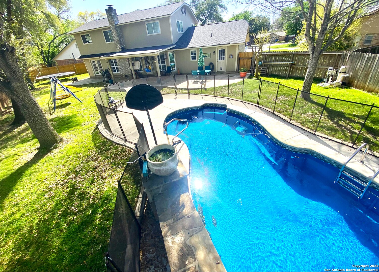 Embrace the charm of Seguin and discover prime living in this fantastic home located in an unbeatable neighborhood. Nestled in a cul-de-sac, this property offers the perfect balance of convenience and tranquility. As you step inside, you'll be captivated by the flood of natural light, spaciousness and attention to detail. Boasting nearly 3,000 square feet of carefully crafted living space, every room is an invitation to comfort and elegance. TWO MASTER SUITES! Storage is never a concern here, as this home offers an abundance of cleverly designed spaces to stow away belongings without sacrificing style. From walk-in closets to built-in storage solutions, every square foot of this property has been optimized for your convenience. Step outside to experience your own private oasis-a dazzling in-ground pool awaits, promising endless hours of relaxation and entertainment. Whether you're hosting summer gatherings or enjoying quiet evenings under the stars, this poolside retreat is the epitome of luxury living.