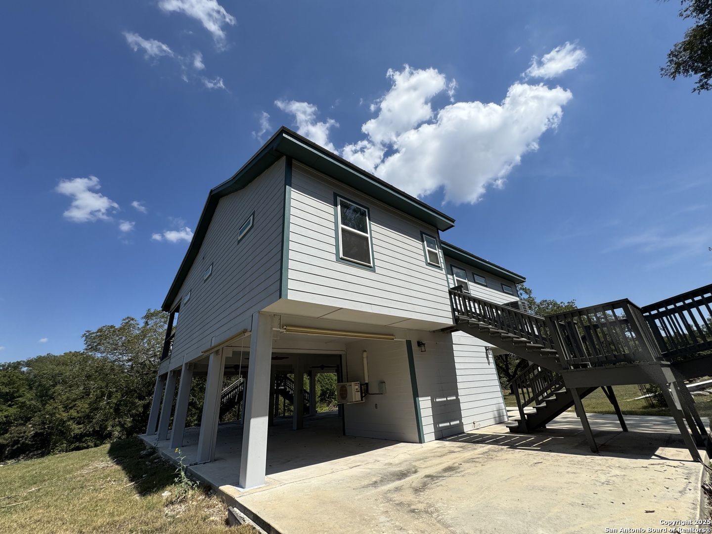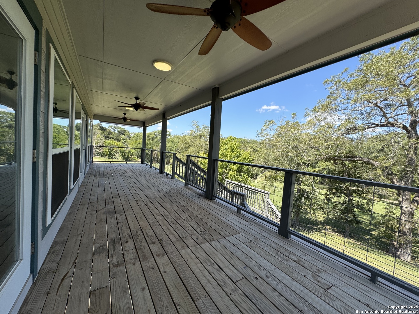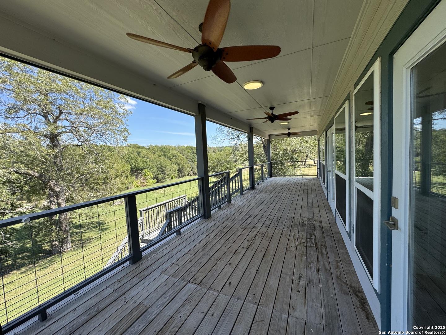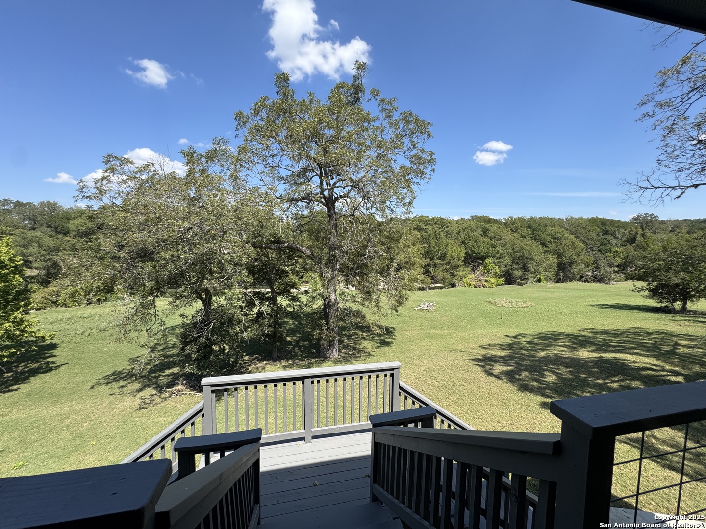 This property is a rare find in the much sought-after neighborhood of Cypress Springs on the Guadalupe. The house is located on two acres with close to 200 ft of riverfront access, complete with a 12x12 private (Trex) deck. Folks can sit under the mature Cypress Trees and enjoy the coolness of the river or get wet putting chairs in the shallow parts of the water. This single-owner's home, built with family in mind, is 5,342 sq ft of living space. Upstairs has a large owner's suite, a full kitchen, adjoining the pantry and laundry room. The spacious open-living concept area with a stone fireplace has a half-bath and two large bedrooms split by a Jack-N-Jill bathroom. The hardwood floors, surrounding windows and high beamed ceilings give the rooms an open and airy feeling. Out the front of this room, there is a covered deck great for morning coffee time. The sunroom off the back of the great room - with windows surrounding this room - leads one to think they live in a tree house and is a great room to cuddle up and watch the stars or a rainstorm. The room is complete with two cabinets, a sink, and a beverage refrigerator on either side of the gas rock fireplace. Solid oak open-tread stairs lead downstairs to a casual living area on a stained & stamped concrete floor. The owners added a second smaller kitchen to allow for casual dinners or bringing in food from the BBQ. This area also has lofty ceilings and a stone, gas-log fireplace. There are two large bedrooms and a Jack-N-Jill bathroom between the rooms. Walk out the front door onto a covered porch with two additional decks to enjoy the cool South-Texas evenings. Exit the back of the house from either the upstairs sunroom or downstairs casual room onto decks. Again, the upstairs deck has a feeling of treehouse living, whereas the downstairs 3-tiered decks are great for entertaining. The lower deck is complete with a new round hot tub, a firepit, and a gas-rock fireplace at the end of the upper covered deck. From the deck, take a short walk to the new 15x30 above-ground swimming pool. The pool boasts a deck on one side, complete with railings and gates for comfort and safety. In addition is the smaller, second house built on steel pylons sunk deep into the ground. This house is approx. 3,000 sq ft with a lovely front porch, a large primary suite, and two additional smaller bedrooms with a Jack-n-Jill bath. Under the house, there is a fantastic view of the river and a cool breeze where one can sit and watch the deer as they journey to the river for a quick drink of water. The area is complete with a storage room and a full bath handy when coming up from a swim or a kayaking trip on the river.