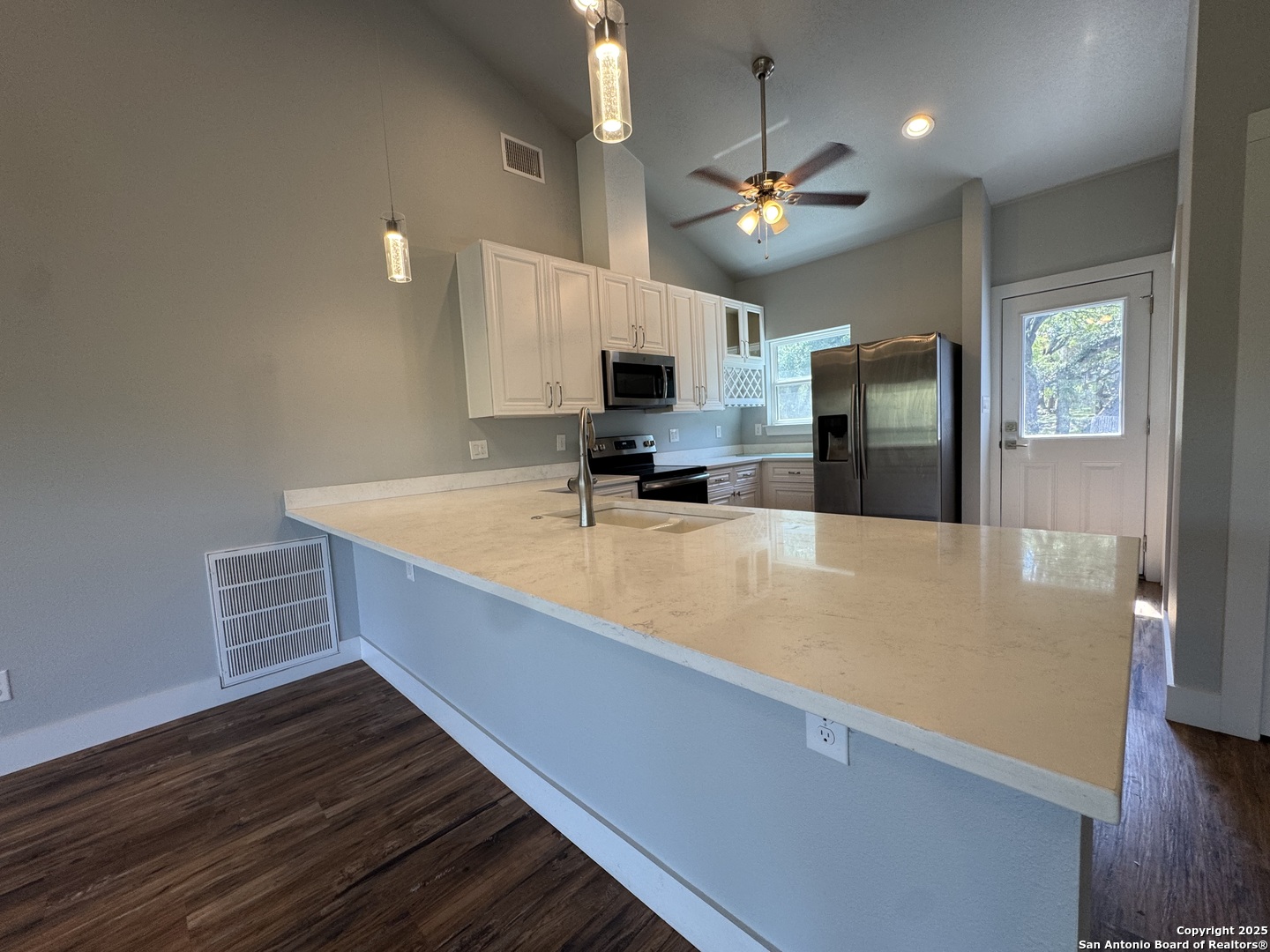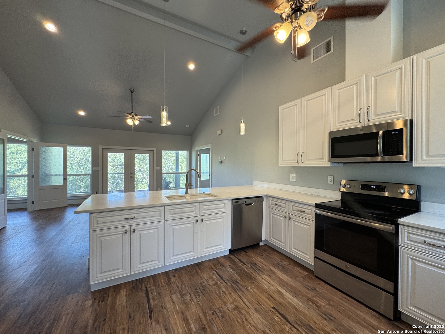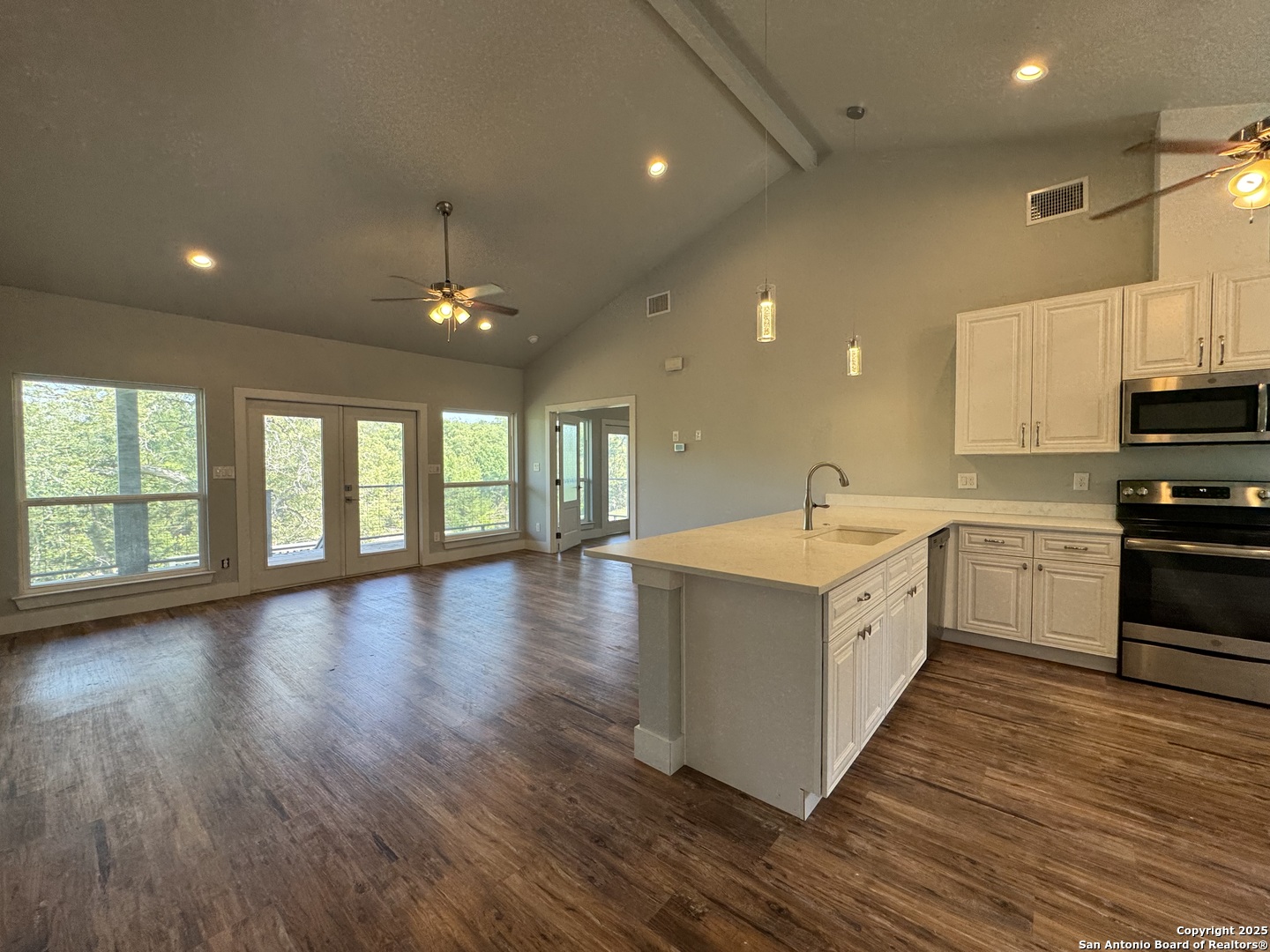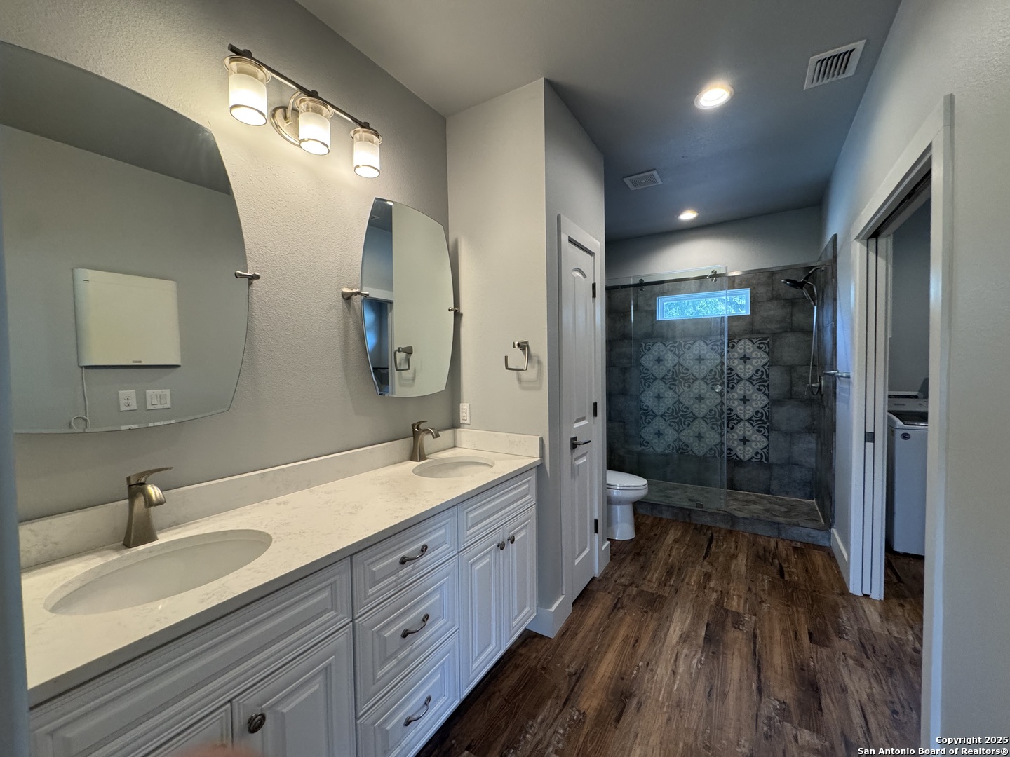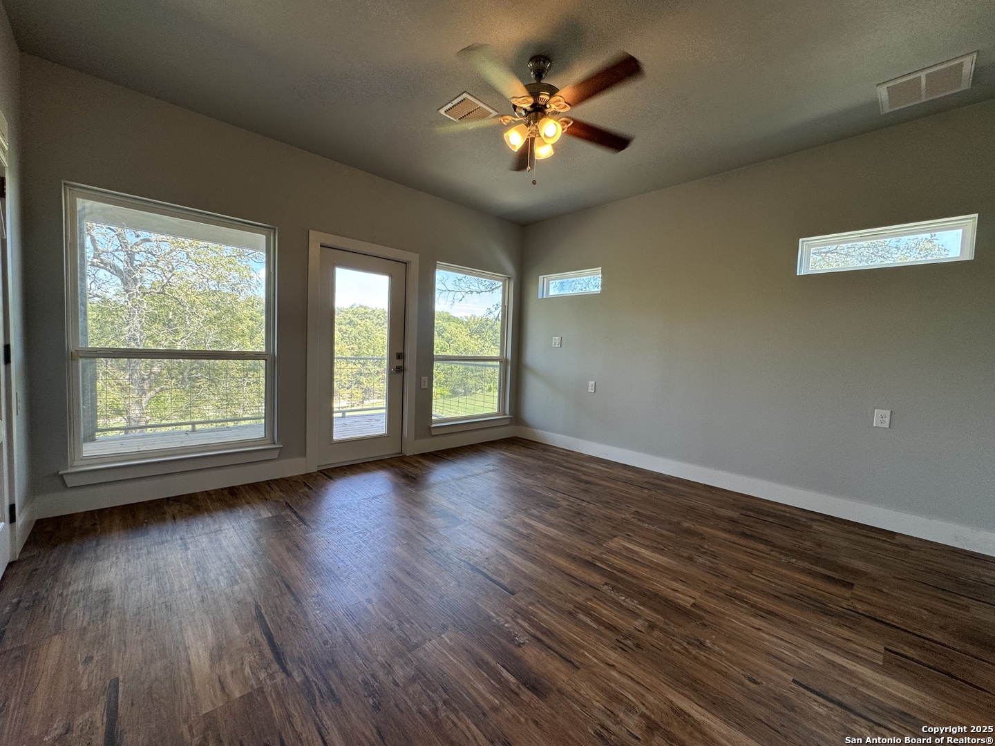 This property is a rare find in the much sought-after neighborhood of Cypress Springs on the Guadalupe. The house is located on two acres with close to 200 ft of riverfront access, complete with a 12x12 private (Trex) deck. Folks can sit under the mature Cypress Trees and enjoy the coolness of the river or get wet putting chairs in the shallow parts of the water. This single-owner's home, built with family in mind, is 5,342 sq ft of living space. Upstairs has a large owner's suite, a full kitchen, adjoining the pantry and laundry room. The spacious open-living concept area with a stone fireplace has a half-bath and two large bedrooms split by a Jack-N-Jill bathroom. The hardwood floors, surrounding windows and high beamed ceilings give the rooms an open and airy feeling. Out the front of this room, there is a covered deck great for morning coffee time. The sunroom off the back of the great room - with windows surrounding this room - leads one to think they live in a tree house and is a great room to cuddle up and watch the stars or a rainstorm. The room is complete with two cabinets, a sink, and a beverage refrigerator on either side of the gas rock fireplace. Solid oak open-tread stairs lead downstairs to a casual living area on a stained & stamped concrete floor. The owners added a second smaller kitchen to allow for casual dinners or bringing in food from the BBQ. This area also has lofty ceilings and a stone, gas-log fireplace. There are two large bedrooms and a Jack-N-Jill bathroom between the rooms. Walk out the front door onto a covered porch with two additional decks to enjoy the cool South-Texas evenings. Exit the back of the house from either the upstairs sunroom or downstairs casual room onto decks. Again, the upstairs deck has a feeling of treehouse living, whereas the downstairs 3-tiered decks are great for entertaining. The lower deck is complete with a new round hot tub, a firepit, and a gas-rock fireplace at the end of the upper covered deck. From the deck, take a short walk to the new 15x30 above-ground swimming pool. The pool boasts a deck on one side, complete with railings and gates for comfort and safety. In addition is the smaller, second house built on steel pylons sunk deep into the ground. This house is approx. 3,000 sq ft with a lovely front porch, a large primary suite, and two additional smaller bedrooms with a Jack-n-Jill bath. Under the house, there is a fantastic view of the river and a cool breeze where one can sit and watch the deer as they journey to the river for a quick drink of water. The area is complete with a storage room and a full bath handy when coming up from a swim or a kayaking trip on the river.