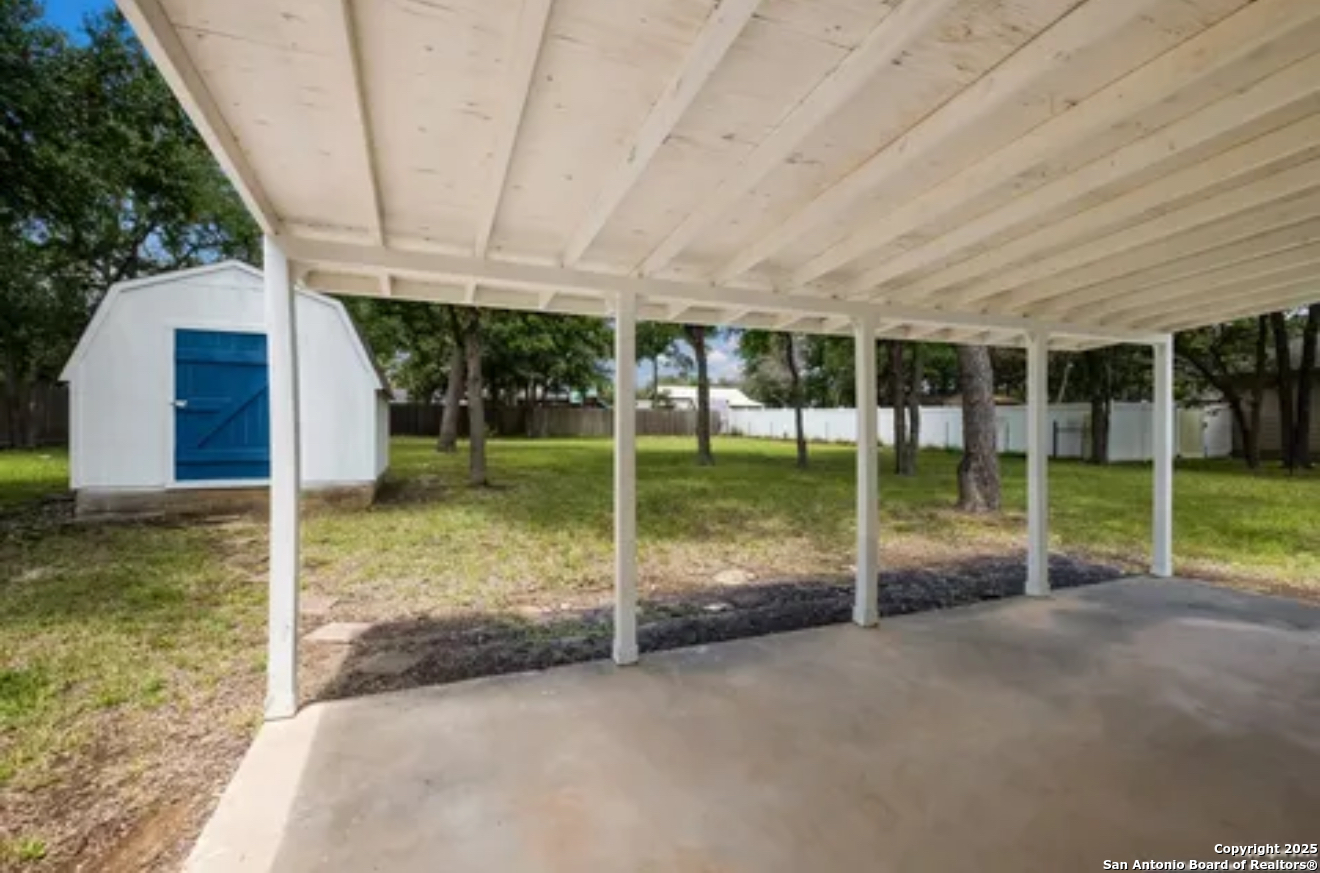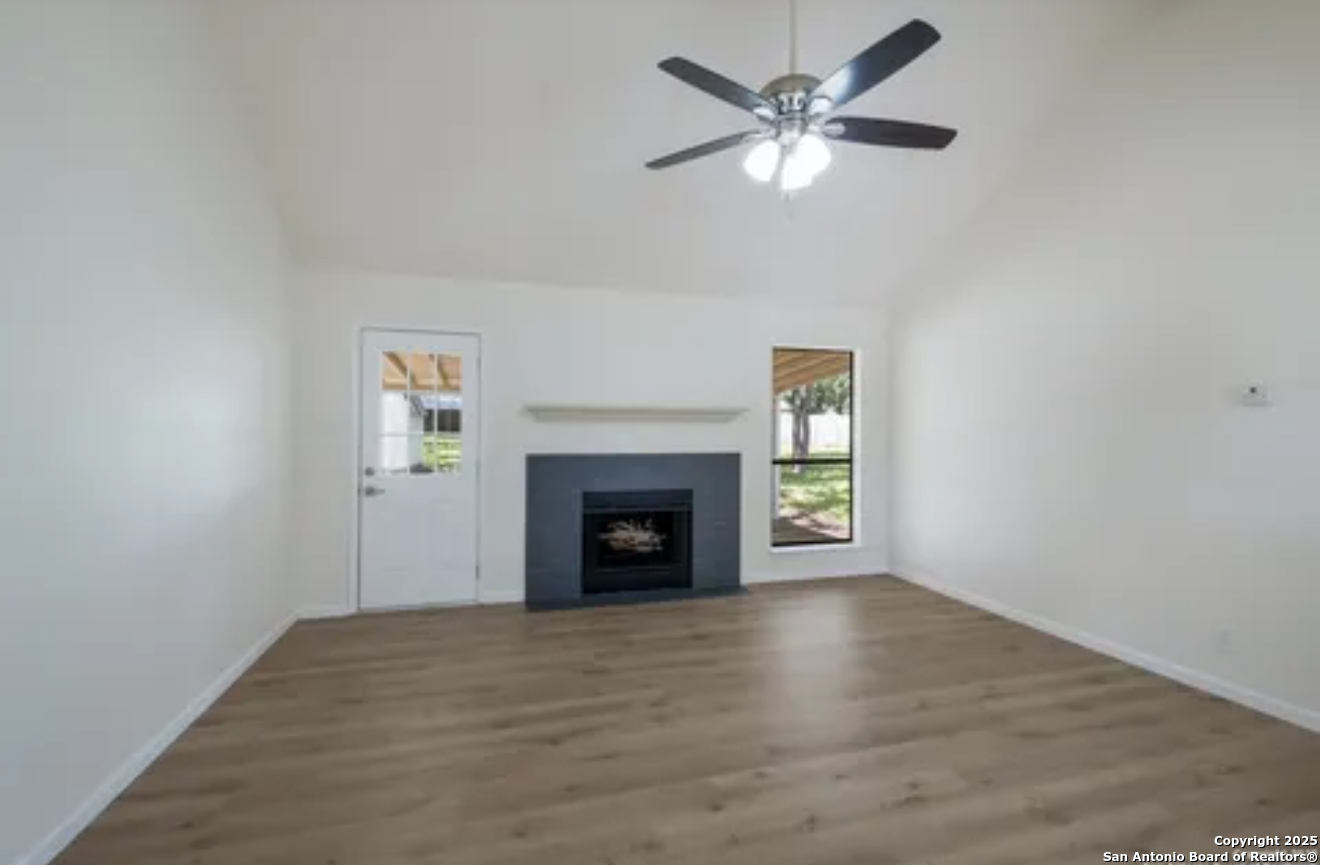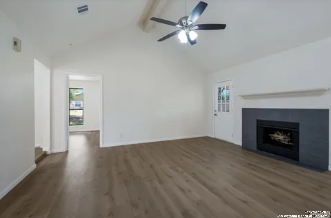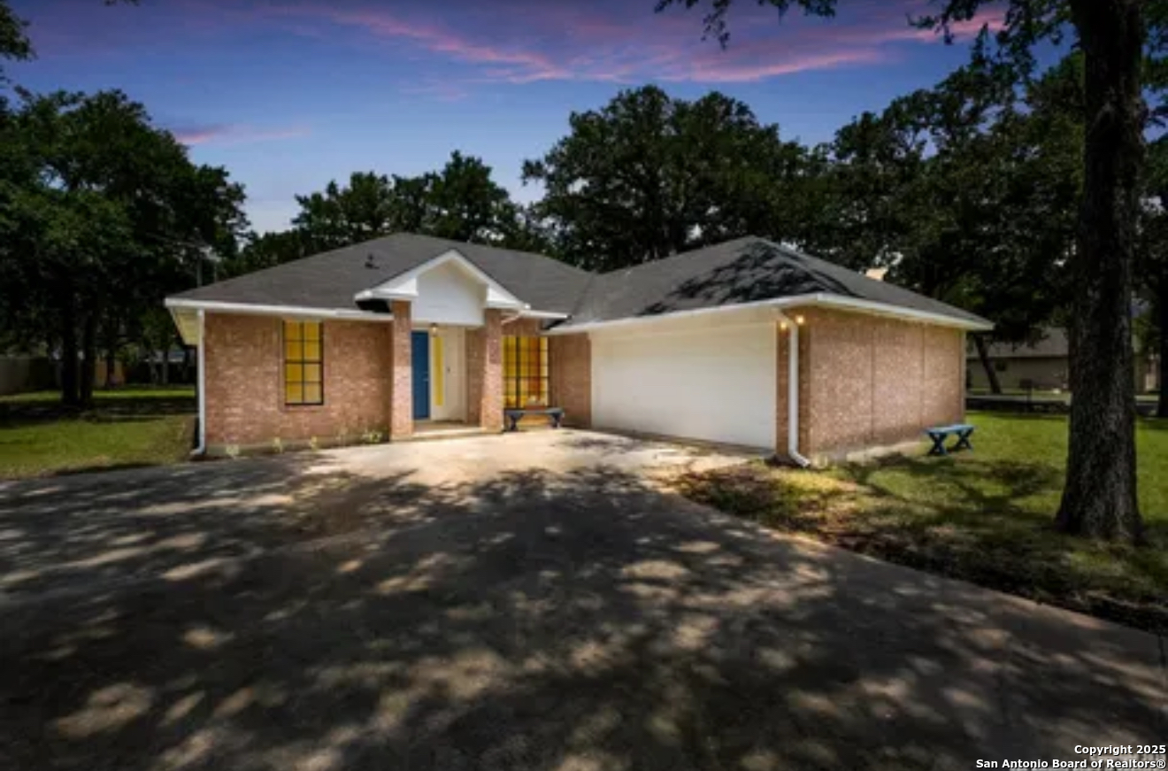 Move-in ready! Charming 3-bed, 2-bath home on a peaceful half-acre in Comal ISD! Updated with quartz counters, stainless appliances, fresh paint, new flooring, and fixtures. Step inside to an open layout with vaulted ceilings, great natural light, and a cozy fireplace. The split primary suite features dual vanities, a modern walk-in shower, and a spacious closet. Enjoy mature trees, a covered patio, and fully fenced backyard. USDA eligible-zero down payment for qualified buyers! Quick access to Hwy 281 & 46, close to Boerne, New Braunfels, and Canyon Lake.