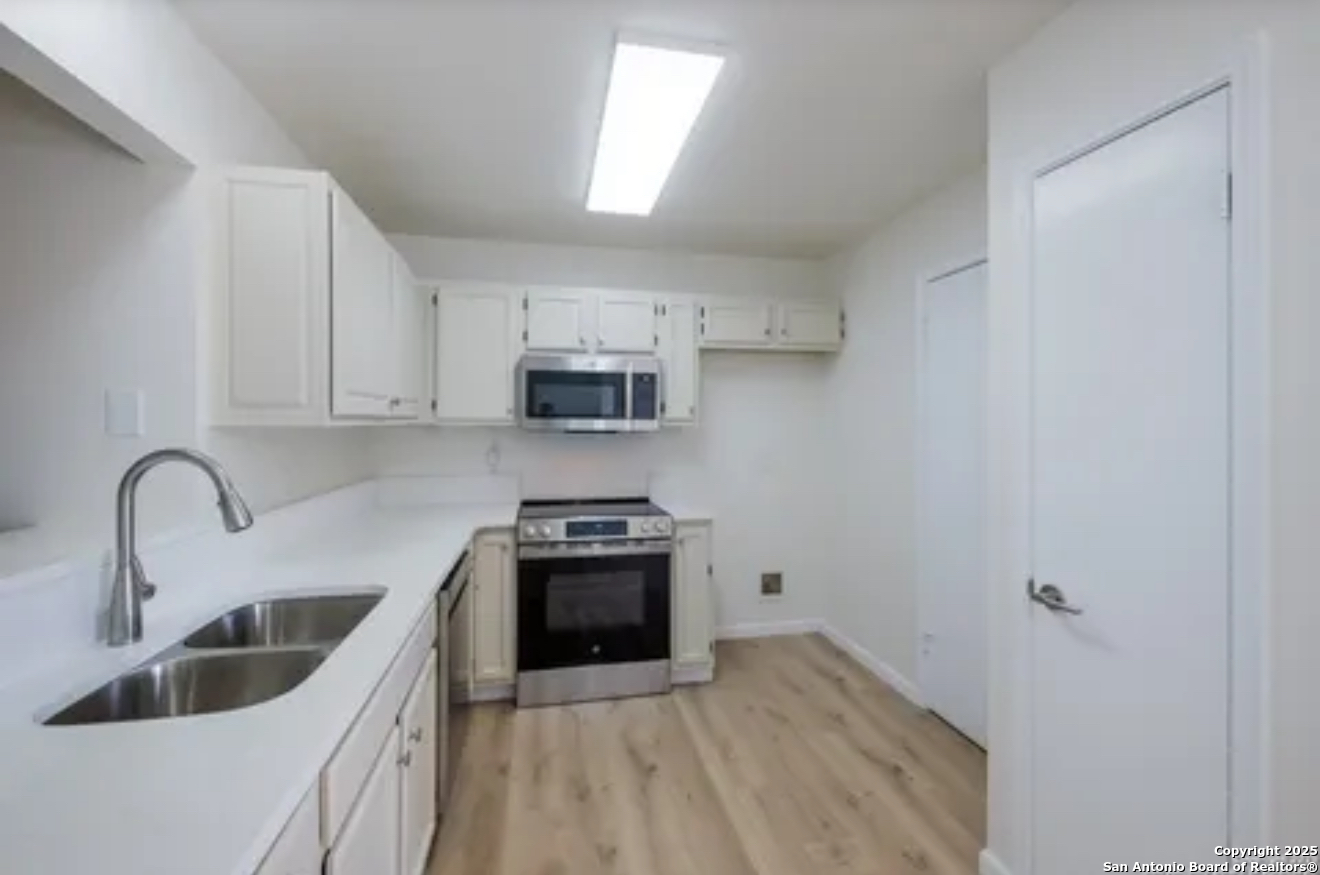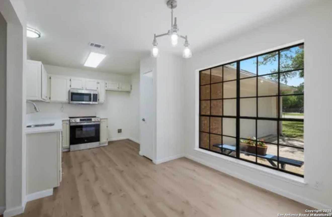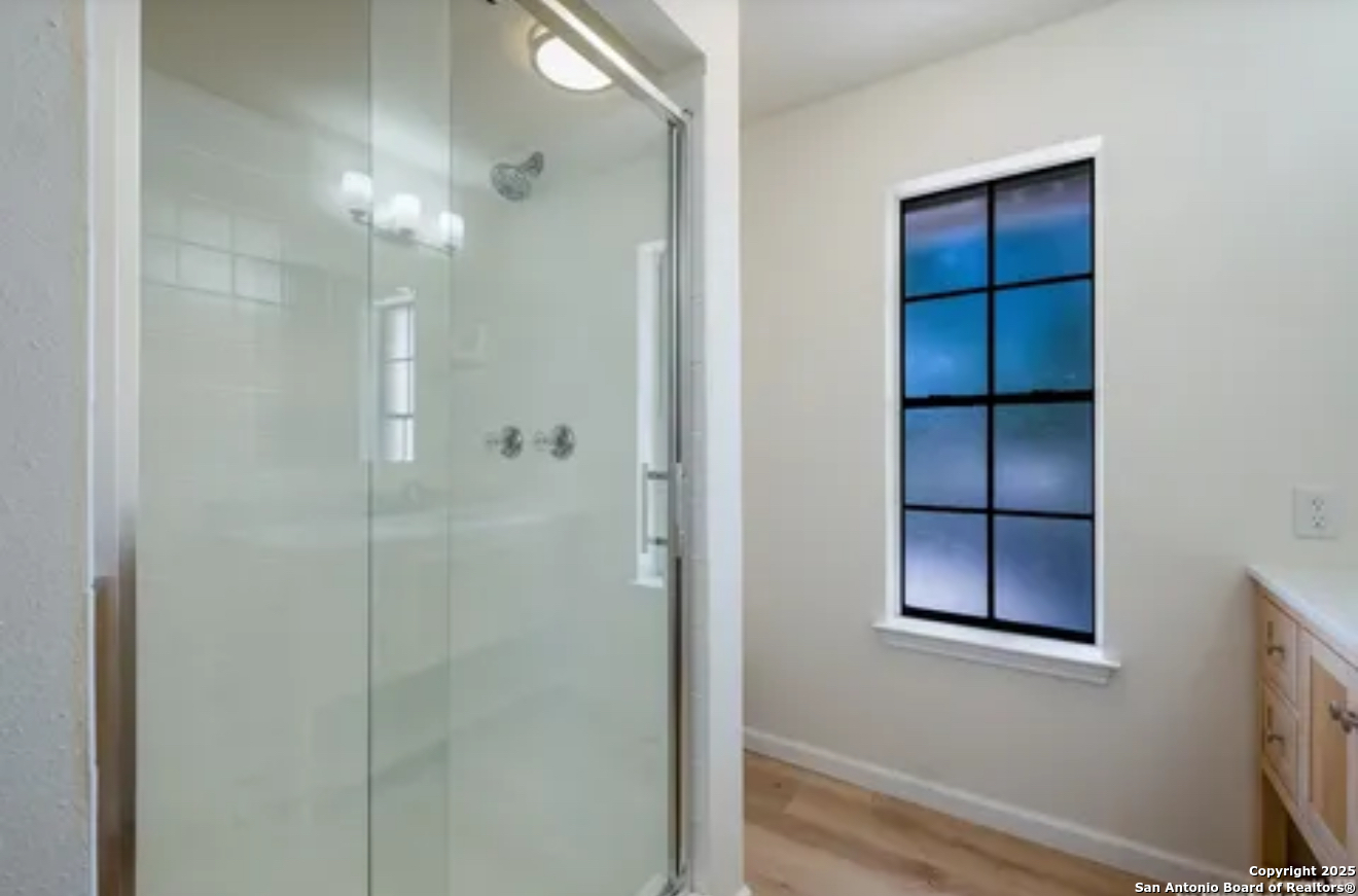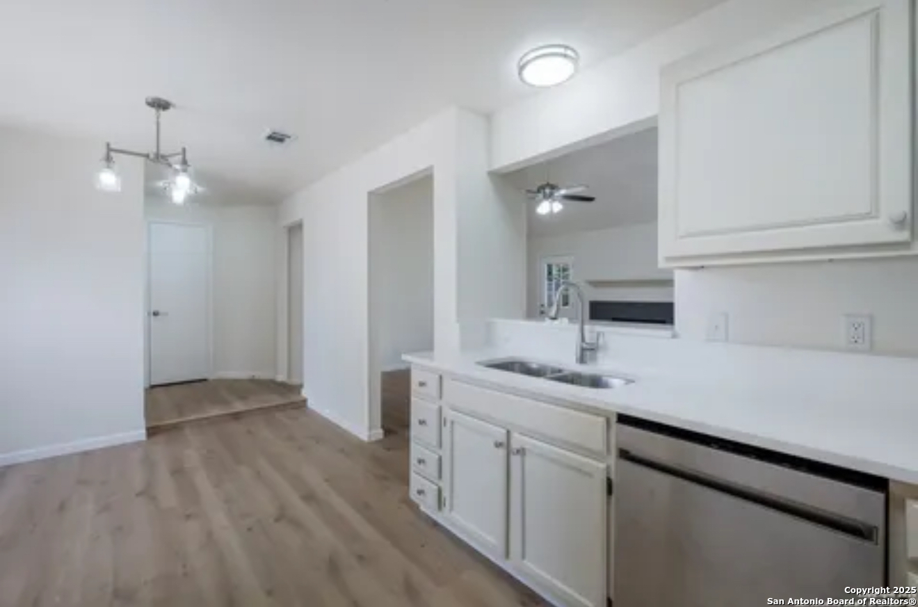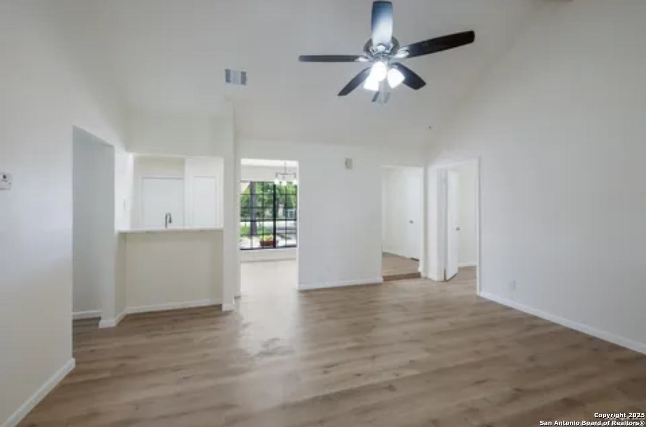 Move-in ready! Charming 3-bed, 2-bath home on a peaceful half-acre in Comal ISD! Updated with quartz counters, stainless appliances, fresh paint, new flooring, and fixtures. Step inside to an open layout with vaulted ceilings, great natural light, and a cozy fireplace. The split primary suite features dual vanities, a modern walk-in shower, and a spacious closet. Enjoy mature trees, a covered patio, and fully fenced backyard. USDA eligible-zero down payment for qualified buyers! Quick access to Hwy 281 & 46, close to Boerne, New Braunfels, and Canyon Lake.
