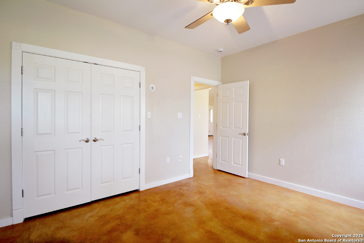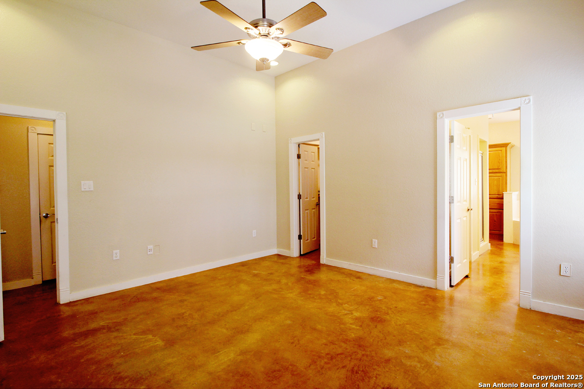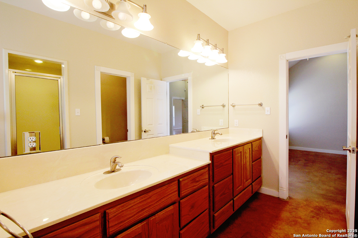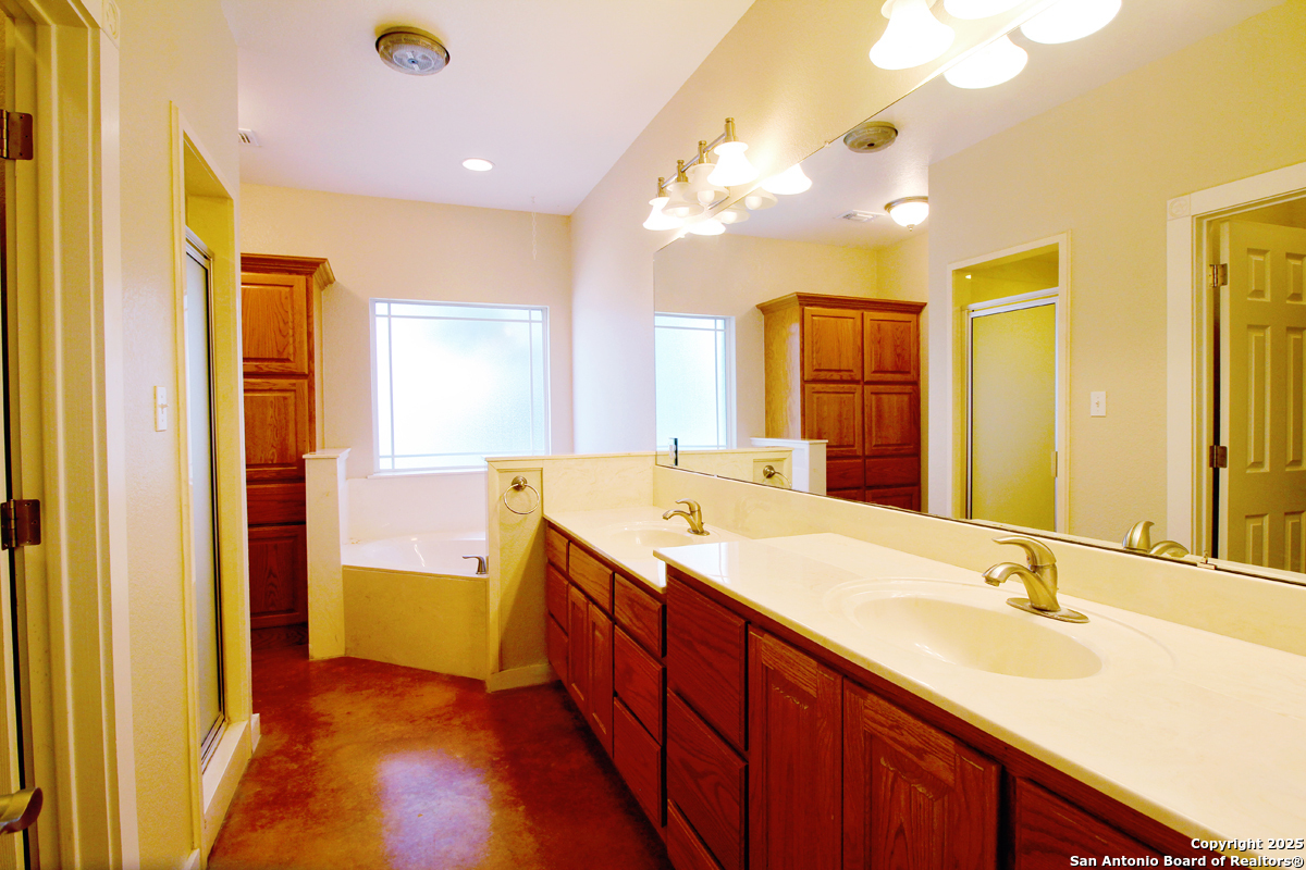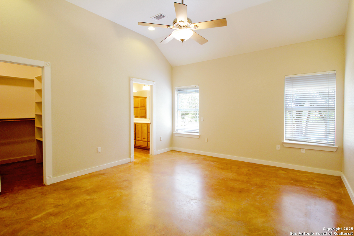 Step into the Texas Hill Country in the quiet, peaceful and relaxing Stallion Estates subdivision. This spacious and open floor plan was perfectly designed for this country home. Special features include a massive rock fireplace, split bedrooms, high ceilings and stained concrete floors throughout. The gourmet island kitchen features SS appliances and multiple custom cabinets. Every room was well thought-out in design and function. Built-ins include an office with generous desktops, cabinets and storage, large utility room with more counter workspace and another work room in the garage. Oversized garage with spacious driveway. Very nice, covered backyard patio. US 281 provides immediate access to San Antonio and Blanco, Johnson City and Austin.