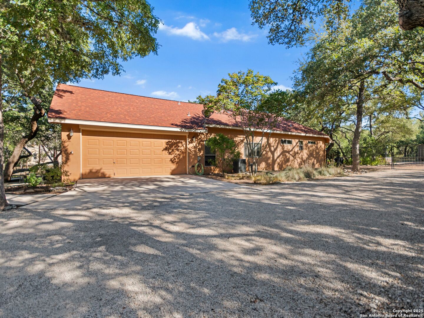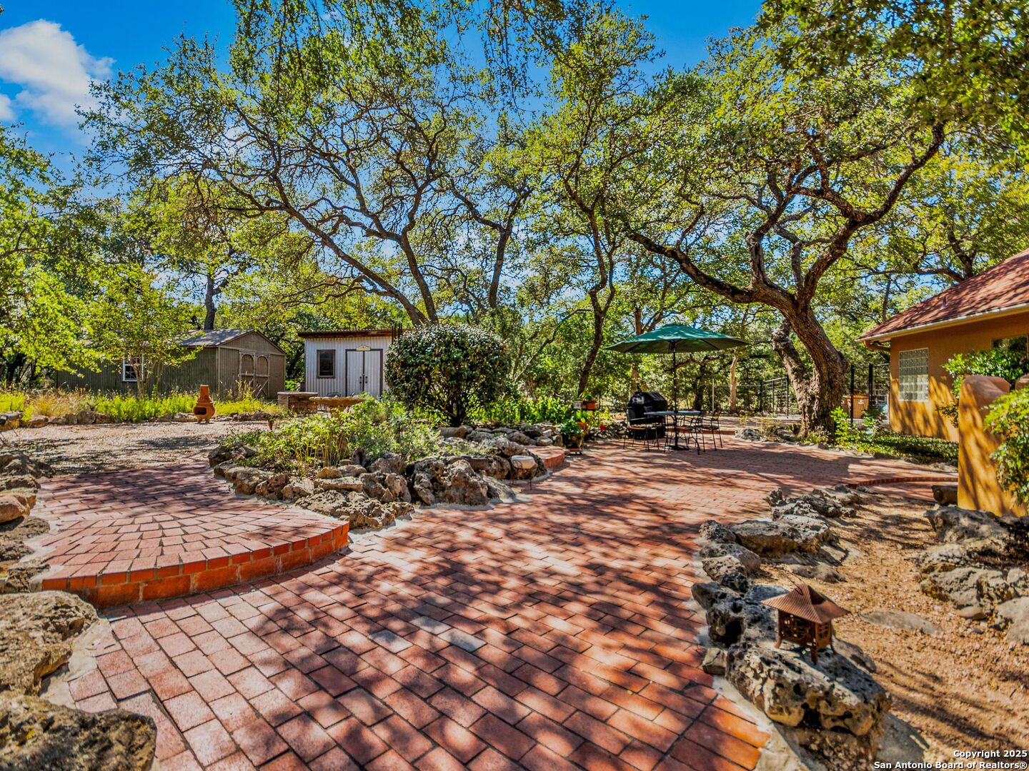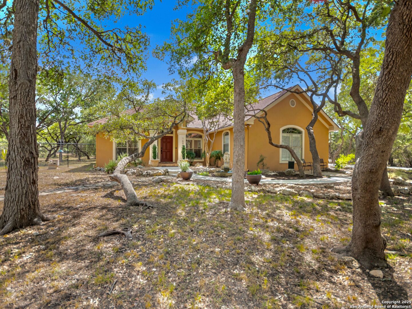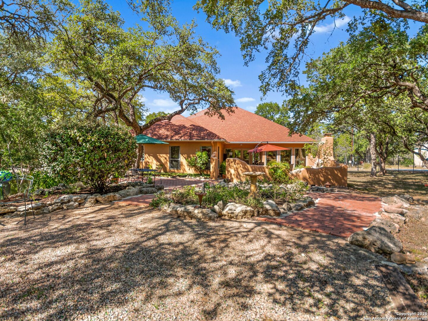 Welcome home to your tranquil escape in the heart of the Texas Hill Country. This impeccably clean and well-maintained property offers the perfect blend of functionality, charm, and serenity - all within the boundaries of a friendly community featuring private Guadalupe River access through the HOA park. Step inside and be greeted by an abundance of natural light that highlights the spacious layout and elegant stone flooring throughout the main living areas. Set up for either three bedrooms and an office or take advantage of the potential for a double office setup, this home easily accommodates both family life and work-from-home needs. At the heart of the home lies the stunning chef-inspired kitchen, designed for both everyday living and entertaining. Enjoy a large island that provides ample workspace and storage, perfect for preparing gourmet meals or gathering with guests. The breakfast area features huge windows that flood the space with light and offer sweeping views of the outdoors, truly bringing the outside in. Enjoy Texas evenings around your custom outdoor fireplace or gather with friends around the fire pit under the stars. The expansive outdoor living spaces are made for entertaining and peaceful relaxation. The fully fenced 2-acre lot is ideal for animals, and includes raised garden beds, a garden shed, and a workshop - everything you need for a self-sustaining lifestyle. Located within the prestigious Smithson Valley High School district, this home combines country comfort with convenient access to top-rated schools and amenities. Whether you're dreaming of a peaceful retreat, a hobby farm, or a place to simply enjoy wide-open spaces and nature, this home offers it all and more.