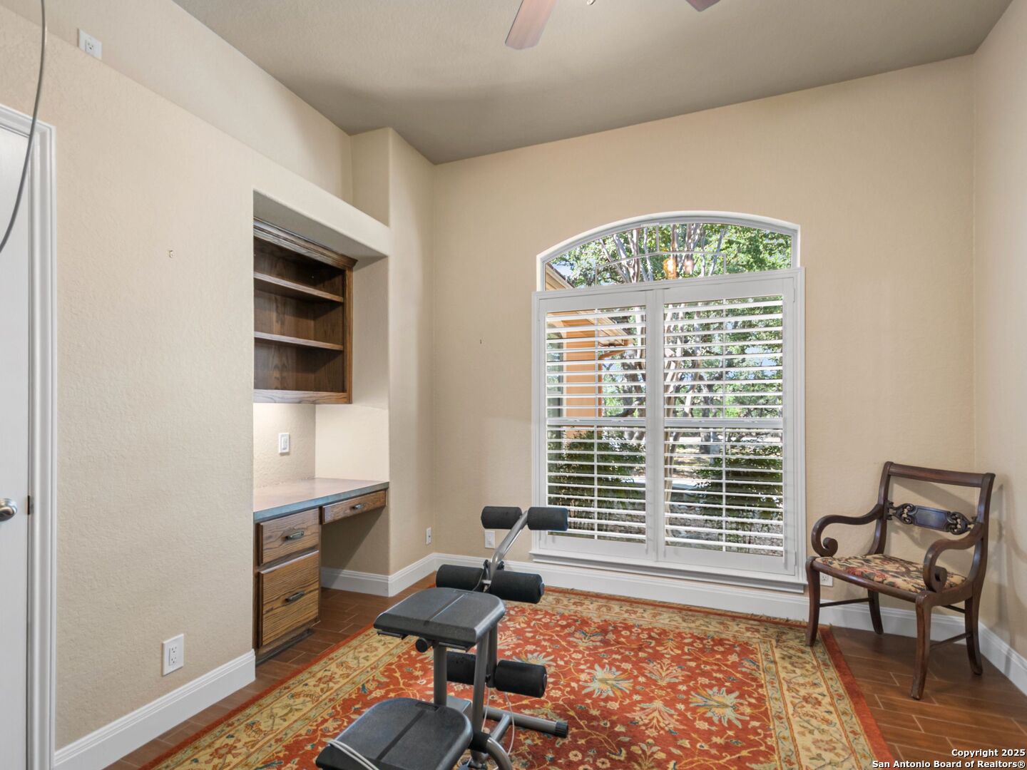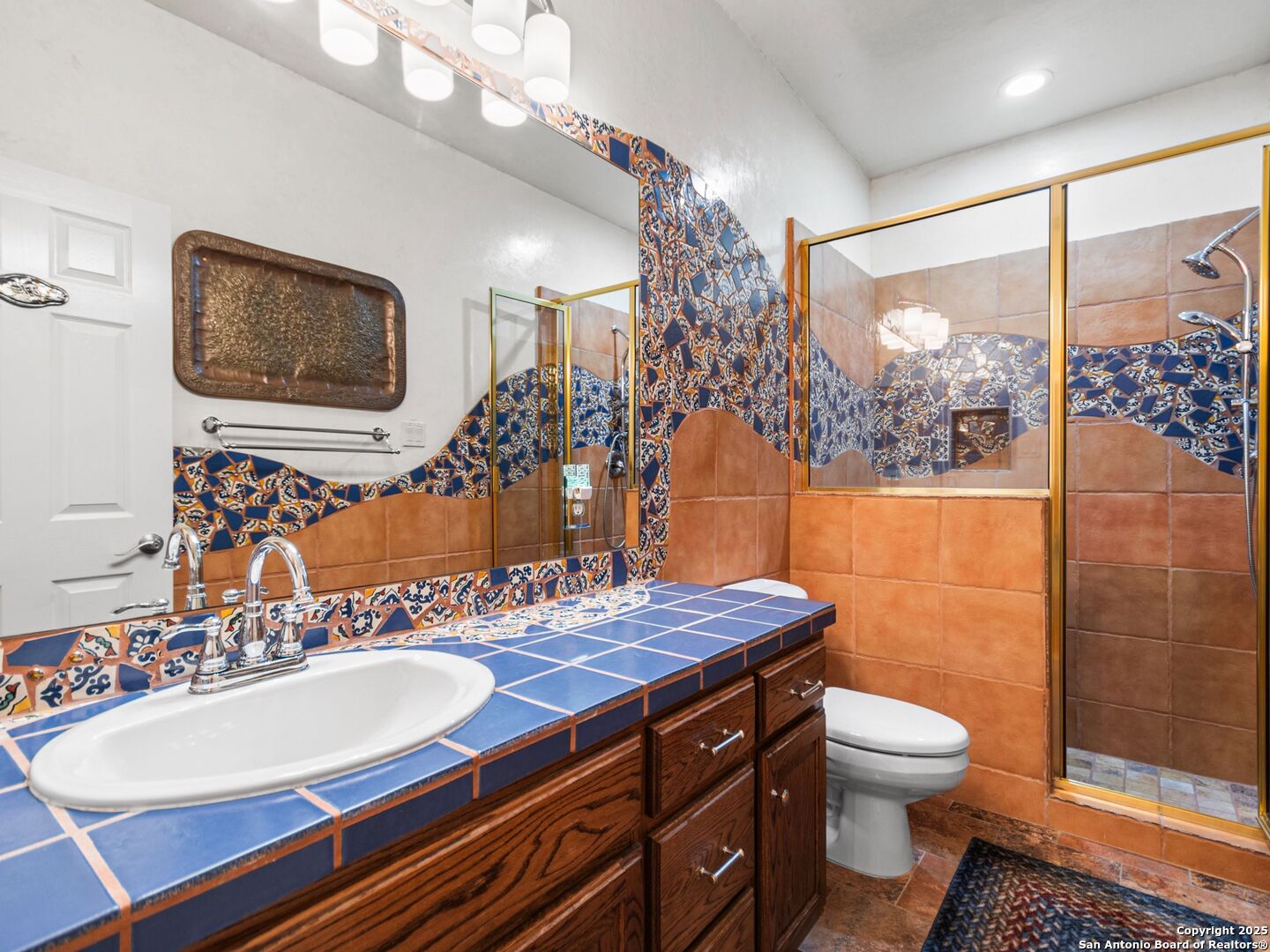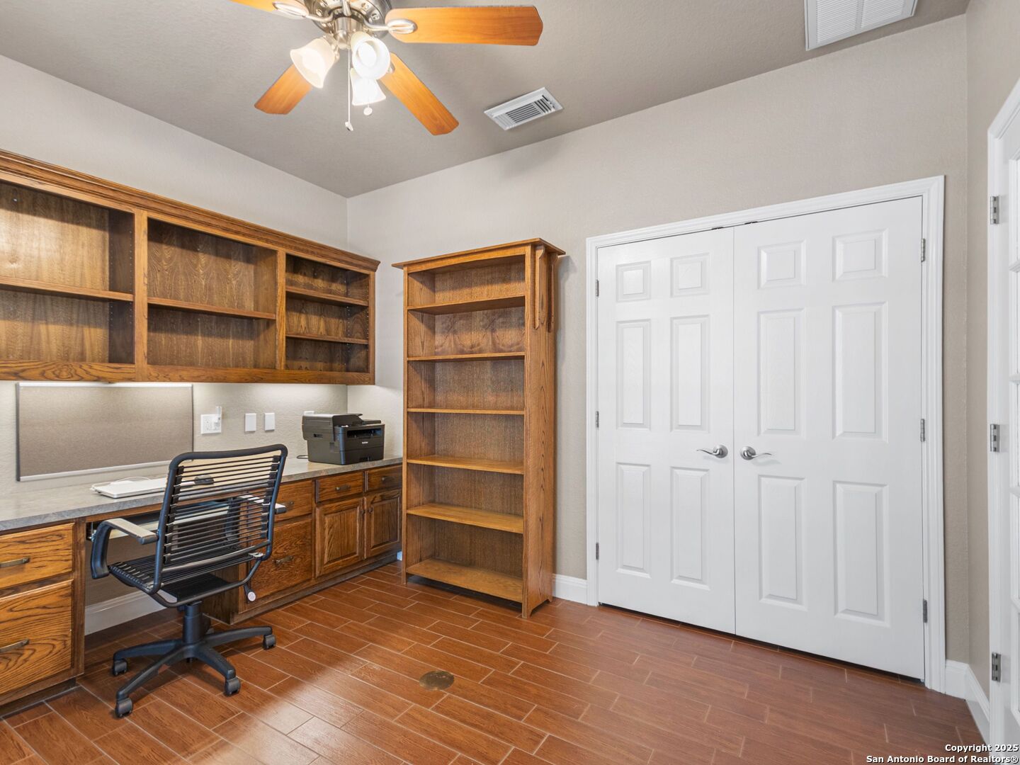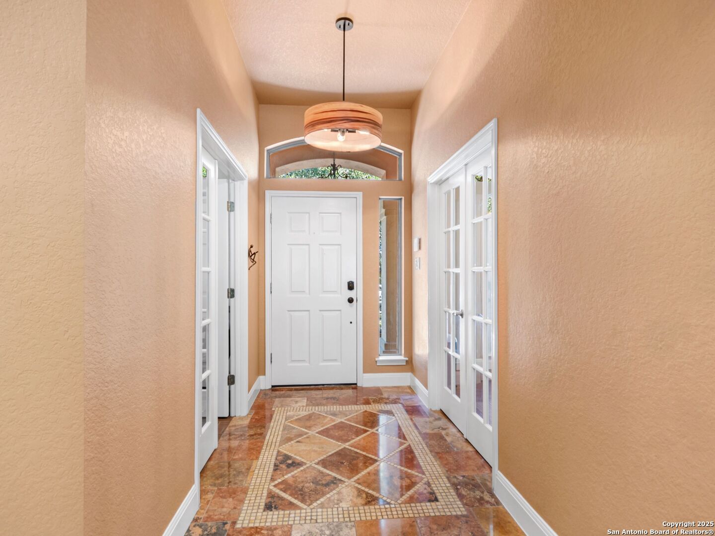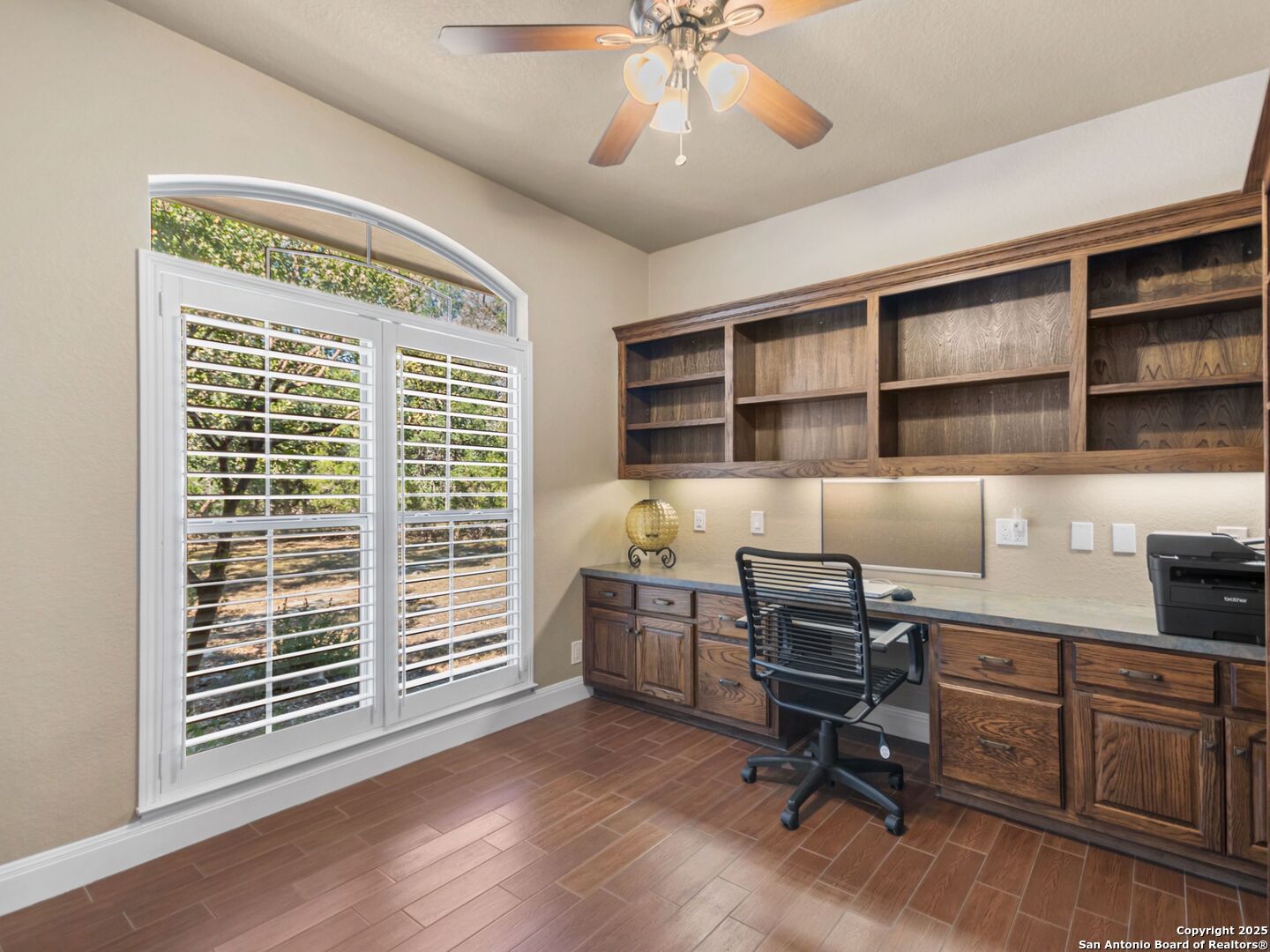 Welcome home to your tranquil escape in the heart of the Texas Hill Country. This impeccably clean and well-maintained property offers the perfect blend of functionality, charm, and serenity - all within the boundaries of a friendly community featuring private Guadalupe River access through the HOA park. Step inside and be greeted by an abundance of natural light that highlights the spacious layout and elegant stone flooring throughout the main living areas. Set up for either three bedrooms and an office or take advantage of the potential for a double office setup, this home easily accommodates both family life and work-from-home needs. At the heart of the home lies the stunning chef-inspired kitchen, designed for both everyday living and entertaining. Enjoy a large island that provides ample workspace and storage, perfect for preparing gourmet meals or gathering with guests. The breakfast area features huge windows that flood the space with light and offer sweeping views of the outdoors, truly bringing the outside in. Enjoy Texas evenings around your custom outdoor fireplace or gather with friends around the fire pit under the stars. The expansive outdoor living spaces are made for entertaining and peaceful relaxation. The fully fenced 2-acre lot is ideal for animals, and includes raised garden beds, a garden shed, and a workshop - everything you need for a self-sustaining lifestyle. Located within the prestigious Smithson Valley High School district, this home combines country comfort with convenient access to top-rated schools and amenities. Whether you're dreaming of a peaceful retreat, a hobby farm, or a place to simply enjoy wide-open spaces and nature, this home offers it all and more.