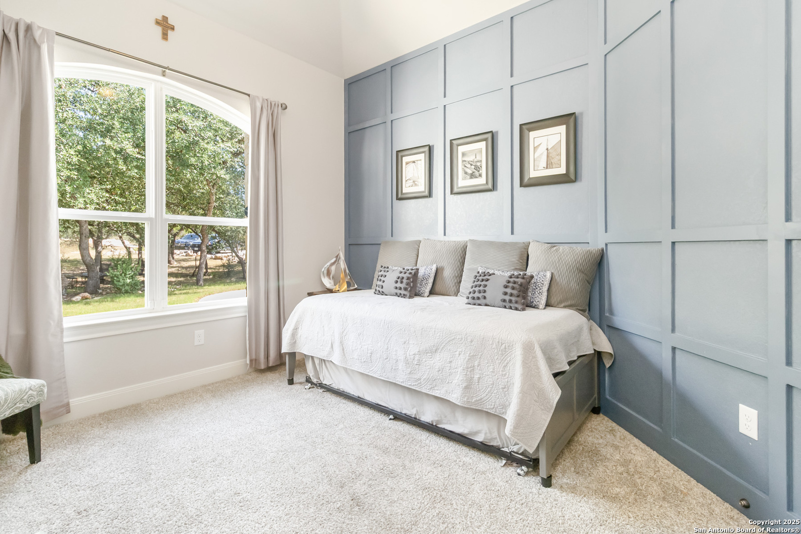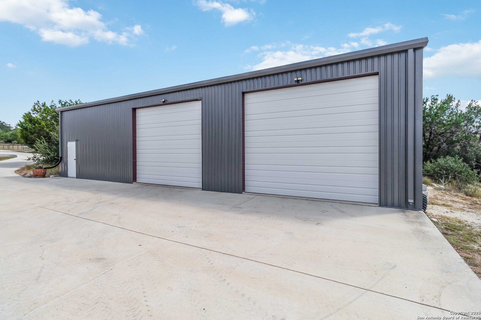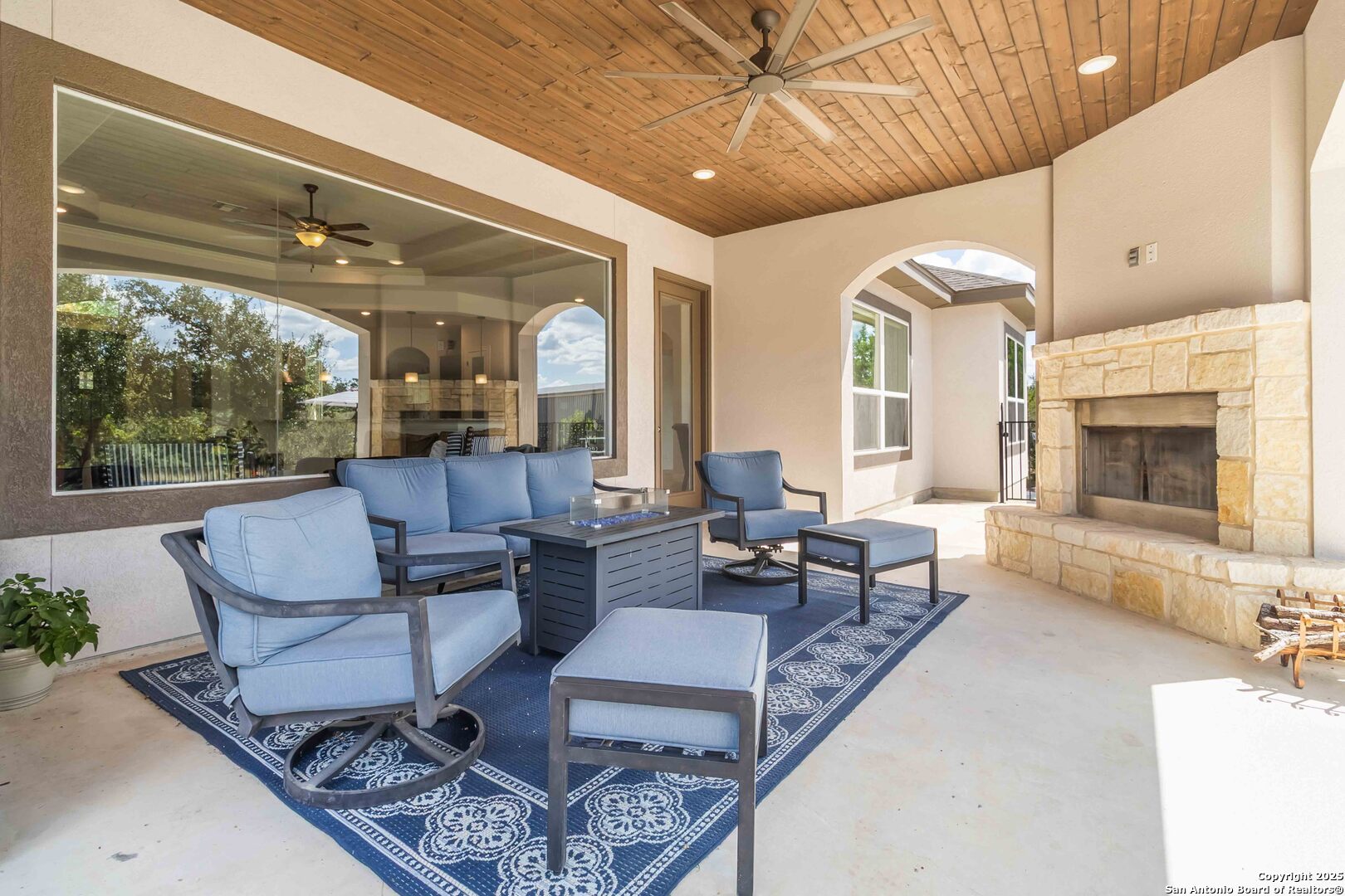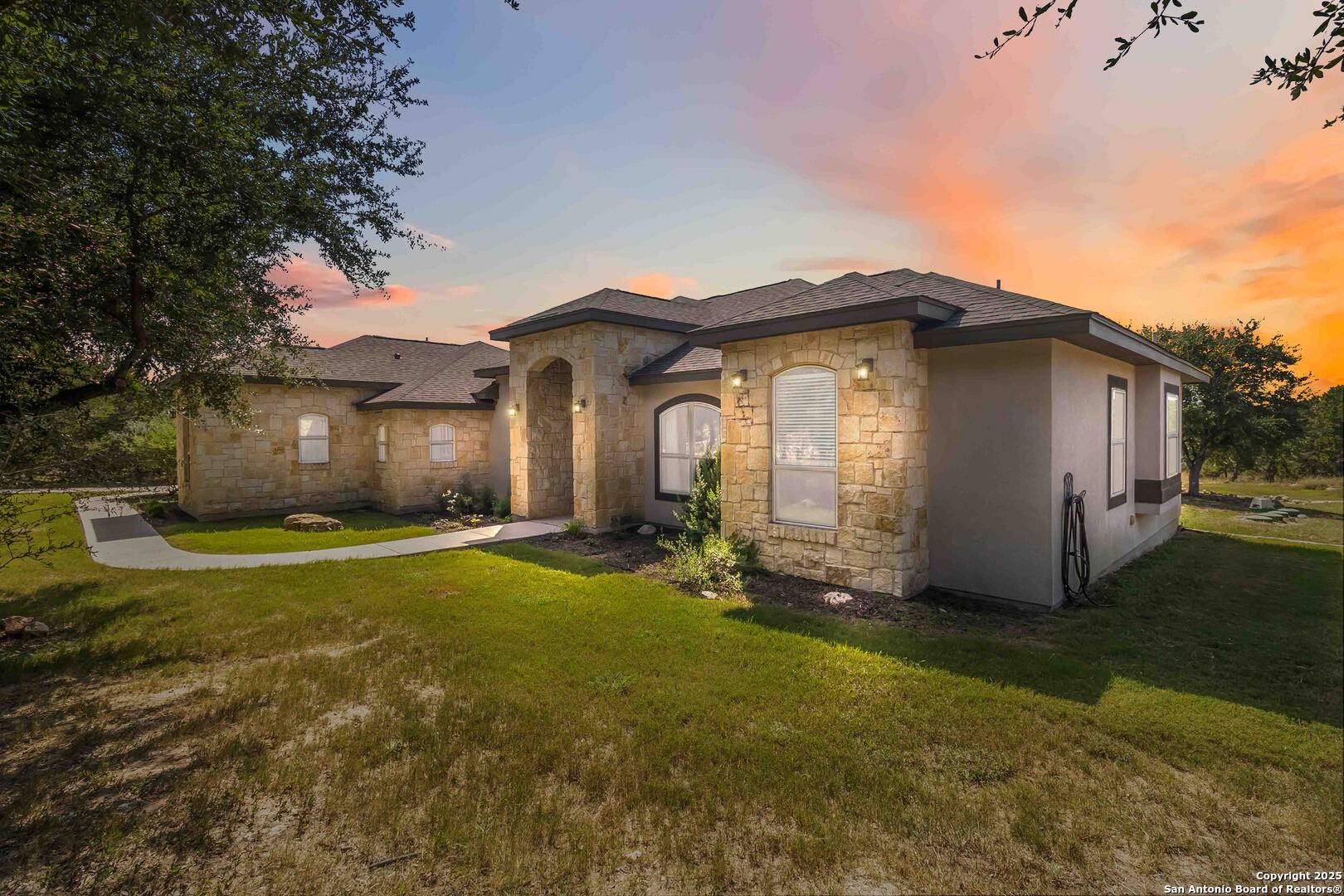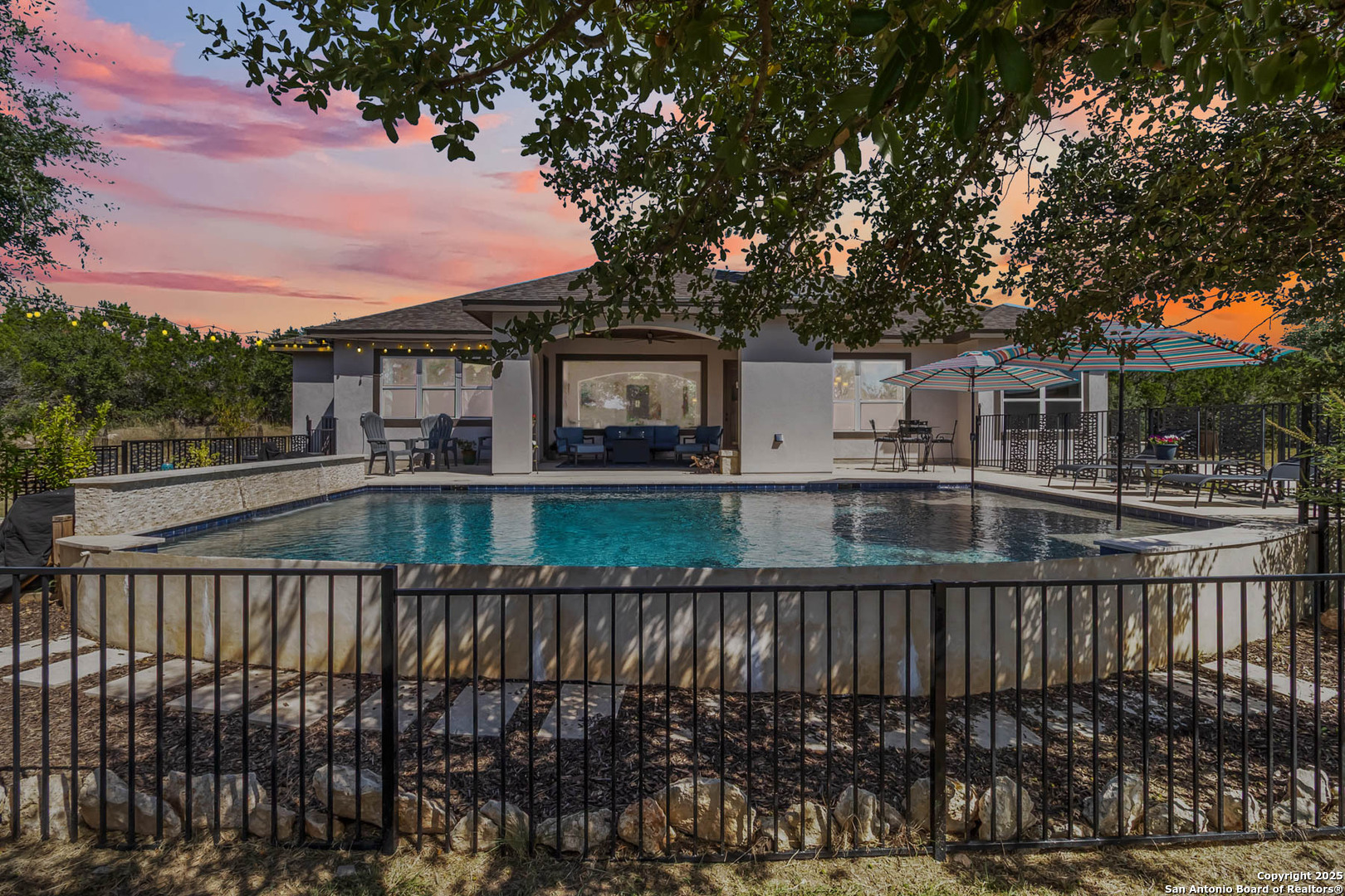 Step into hill country elegance with this striking one story residence, nestled on a sprawling 3.36 acre lot in the exclusive Mystic Shores community. Boasting 3 bedrooms, 2.5 baths, and 2,544 sq ft of thoughtfully designed living space. This home delivers both comfort and sophistication. The open-concept layout flows effortlessly from the foyer through the main living area and into the chef's kitchen, complete with a generous center island, breakfast bar, granite surfaces, and custom cabinetry. Tray and stepped ceilings accent many rooms, while strategically placed wall niches offer subtle architectural interest. Retreat to the primary suite, offering a sitting alcove, double vanities, a garden tub, separate shower, and a large Bespoke walk-in closet. Two additional bedrooms are supported by a full bathroom and a powder room, ideal for guests or flexible use. A dedicated game or media room adds extra living potential with it's own powder room, closet and outdoor access leading the the pool! Step outside into your private outdoor haven. A sparkling in-ground pool with an elegant water feature that adds a touch of resort-style luxury. An oversized covered patio anchored by a built-in fireplace invites year-round enjoyment, whether it's quiet mornings or entertaining under the stars. Nestled in the backyard, the gazebo offers a serene, shaded retreat ideal for morning coffee, evening gatherings, or quiet afternoons surrounded by nature. Just steps away, the greenhouse provides a year-round haven for gardening enthusiasts-whether you're growing fresh herbs, vibrant flowers, or seasonal vegetables, this space is both functional and inspiring. The versatile 30' x 60' metal RV building offers exceptional functionality and space, ideal for storing RVs, boats, vehicles, equipment, or even converting into a workshop or hobby space. Built to last with durable steel construction, this structure features high-clearance entry, wide roll-up doors, and ample interior room for oversized vehicles and storage needs. Whether you're a full-time RV enthusiast, collector, or business owner, this building provides the security, space, and flexibility to accommodate a wide range of uses. Beyond your front door, Mystic Shores rewards residents with expansive amenities: parks, trails, community pool access, lakefront recreation, and more - all within a community that blends natural beauty, privacy, and convenience. Don't miss the chance to own a move-in ready, architecturally rich home in one of Spring Branch's most desirable enclaves.