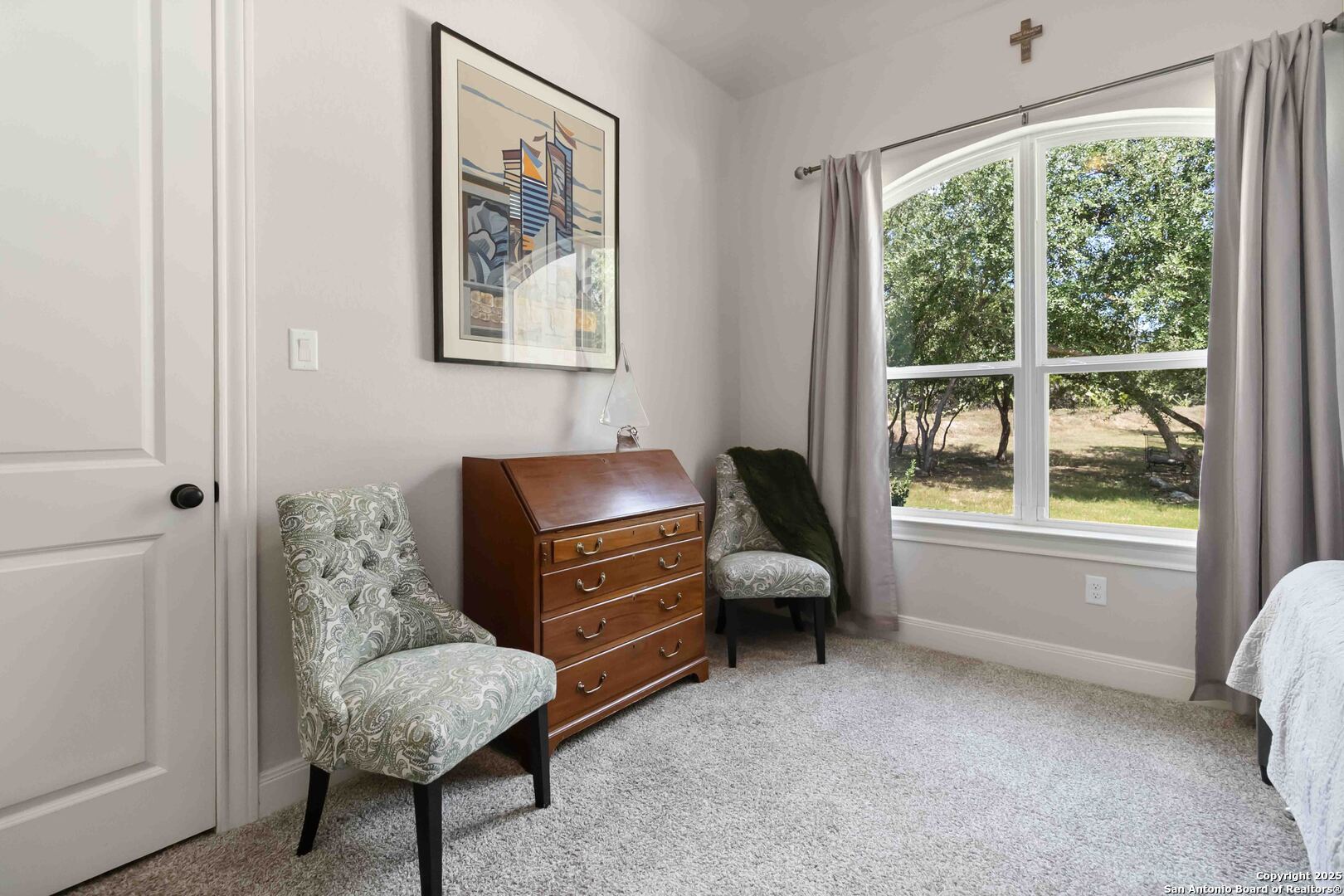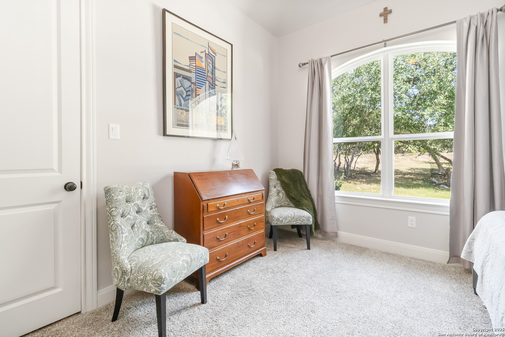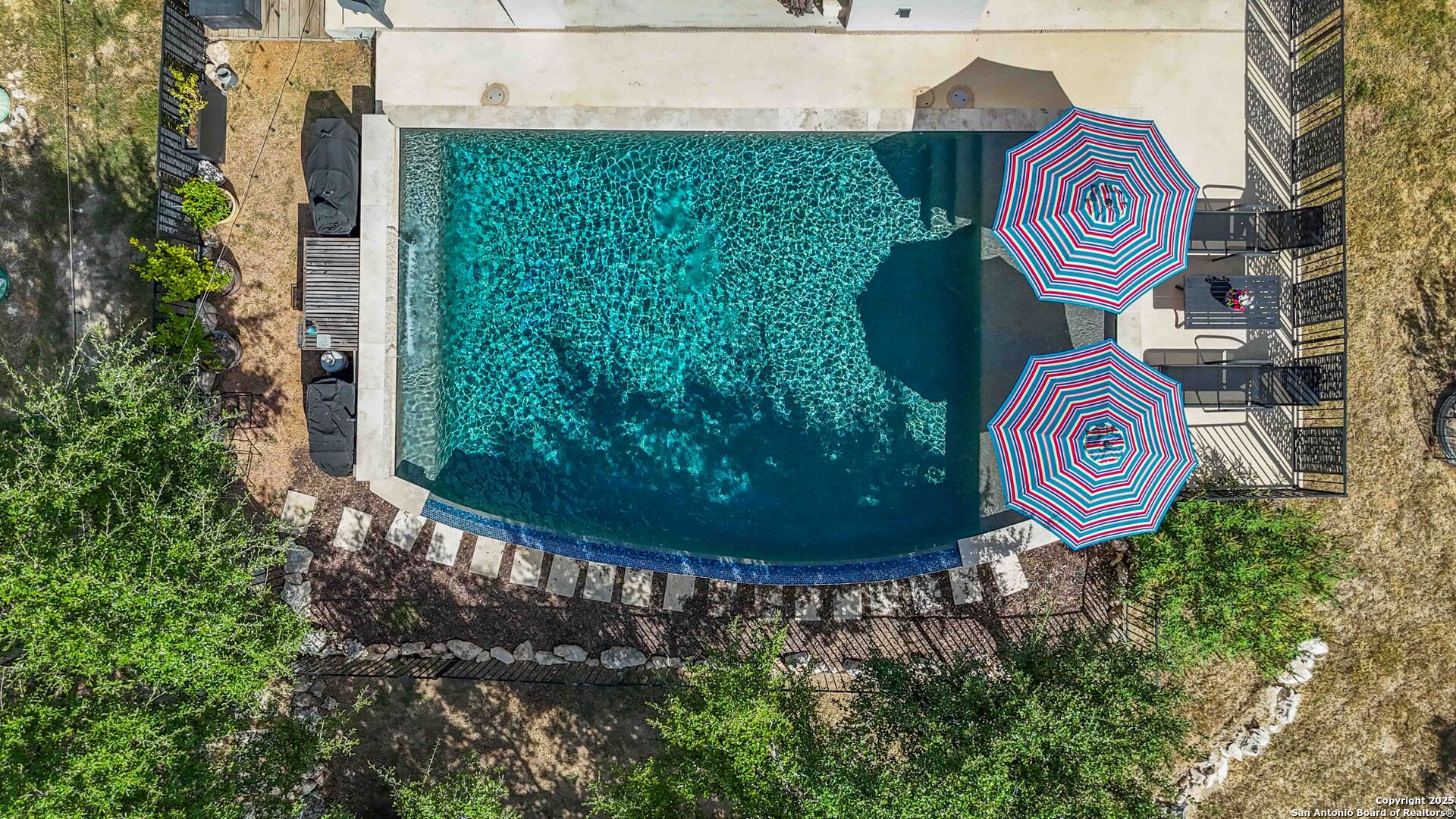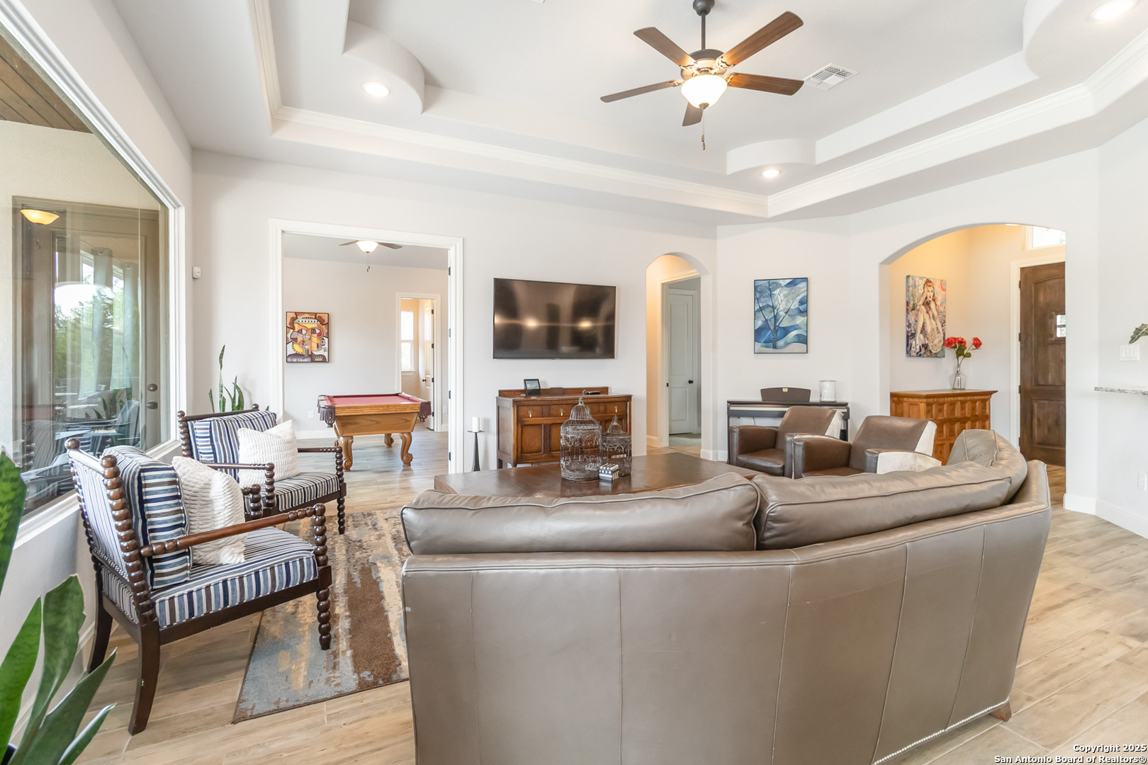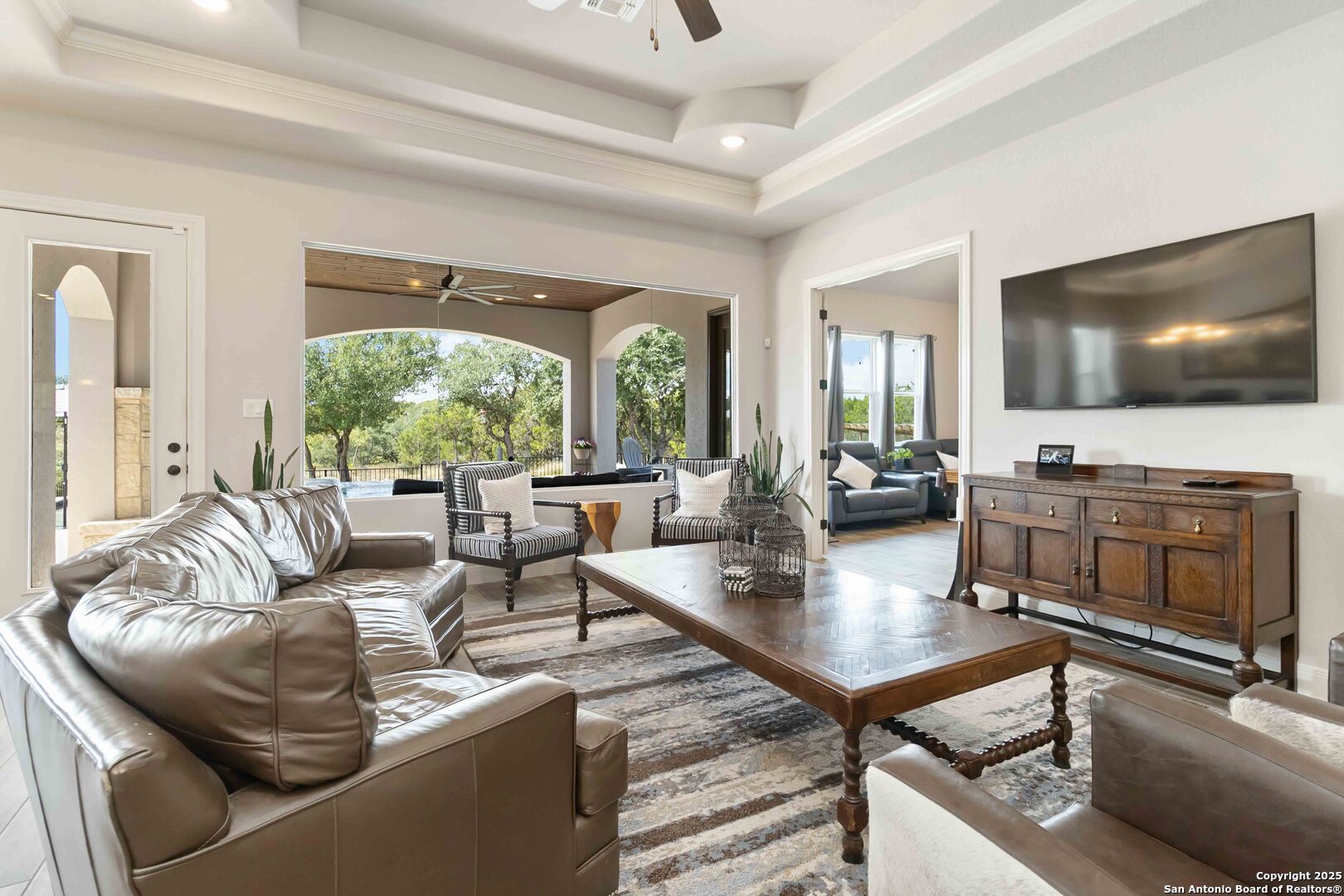 Step into hill country elegance with this striking one story residence, nestled on a sprawling 3.36 acre lot in the exclusive Mystic Shores community. Boasting 3 bedrooms, 2.5 baths, and 2,544 sq ft of thoughtfully designed living space. This home delivers both comfort and sophistication. The open-concept layout flows effortlessly from the foyer through the main living area and into the chef's kitchen, complete with a generous center island, breakfast bar, granite surfaces, and custom cabinetry. Tray and stepped ceilings accent many rooms, while strategically placed wall niches offer subtle architectural interest. Retreat to the primary suite, offering a sitting alcove, double vanities, a garden tub, separate shower, and a large Bespoke walk-in closet. Two additional bedrooms are supported by a full bathroom and a powder room, ideal for guests or flexible use. A dedicated game or media room adds extra living potential with it's own powder room, closet and outdoor access leading the the pool! Step outside into your private outdoor haven. A sparkling in-ground pool with an elegant water feature that adds a touch of resort-style luxury. An oversized covered patio anchored by a built-in fireplace invites year-round enjoyment, whether it's quiet mornings or entertaining under the stars. Nestled in the backyard, the gazebo offers a serene, shaded retreat ideal for morning coffee, evening gatherings, or quiet afternoons surrounded by nature. Just steps away, the greenhouse provides a year-round haven for gardening enthusiasts-whether you're growing fresh herbs, vibrant flowers, or seasonal vegetables, this space is both functional and inspiring. The versatile 30' x 60' metal RV building offers exceptional functionality and space, ideal for storing RVs, boats, vehicles, equipment, or even converting into a workshop or hobby space. Built to last with durable steel construction, this structure features high-clearance entry, wide roll-up doors, and ample interior room for oversized vehicles and storage needs. Whether you're a full-time RV enthusiast, collector, or business owner, this building provides the security, space, and flexibility to accommodate a wide range of uses. Beyond your front door, Mystic Shores rewards residents with expansive amenities: parks, trails, community pool access, lakefront recreation, and more - all within a community that blends natural beauty, privacy, and convenience. Don't miss the chance to own a move-in ready, architecturally rich home in one of Spring Branch's most desirable enclaves.