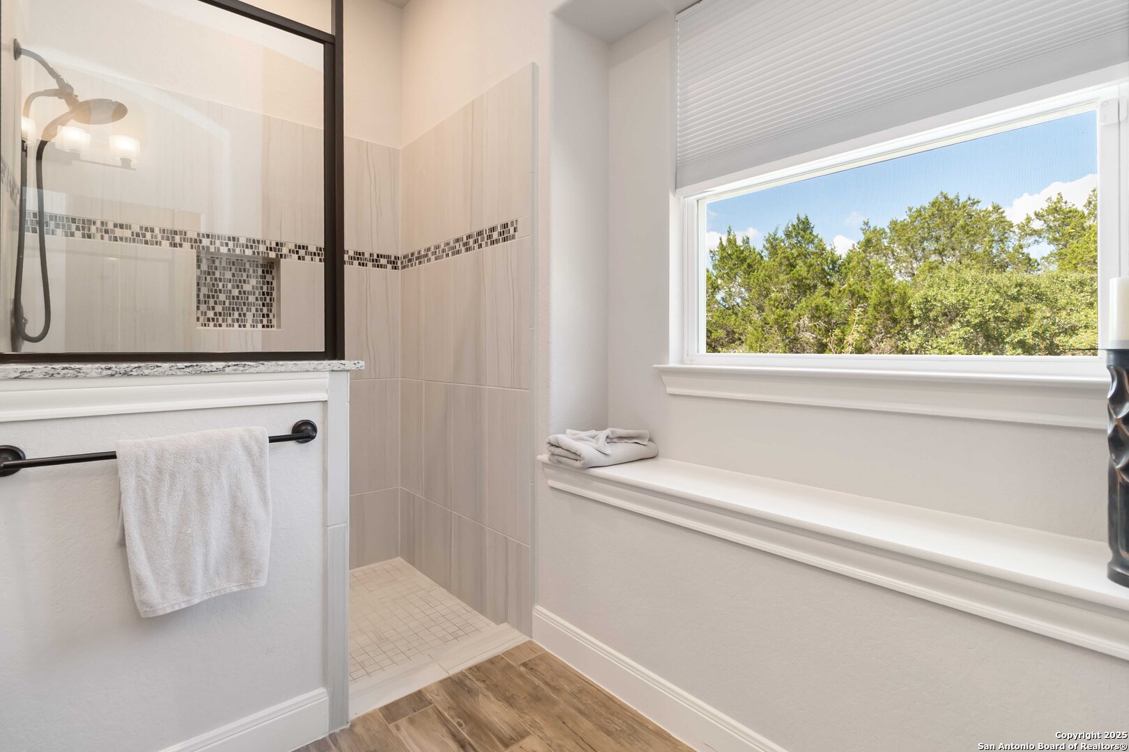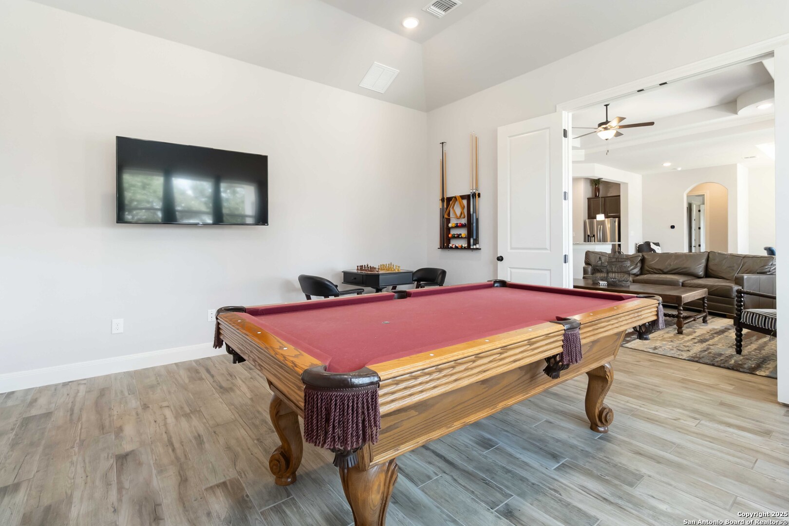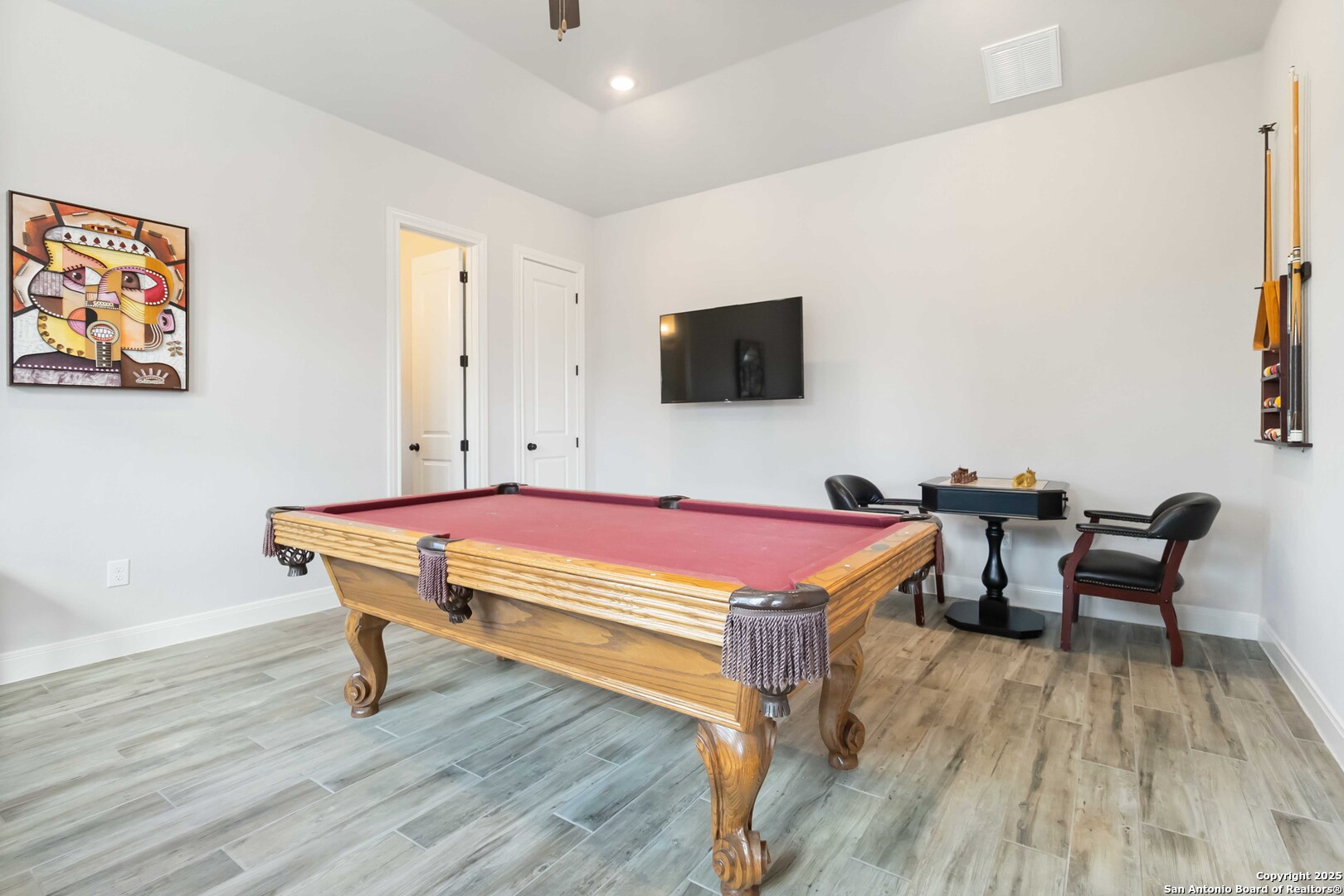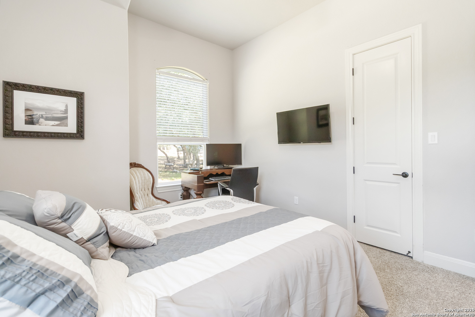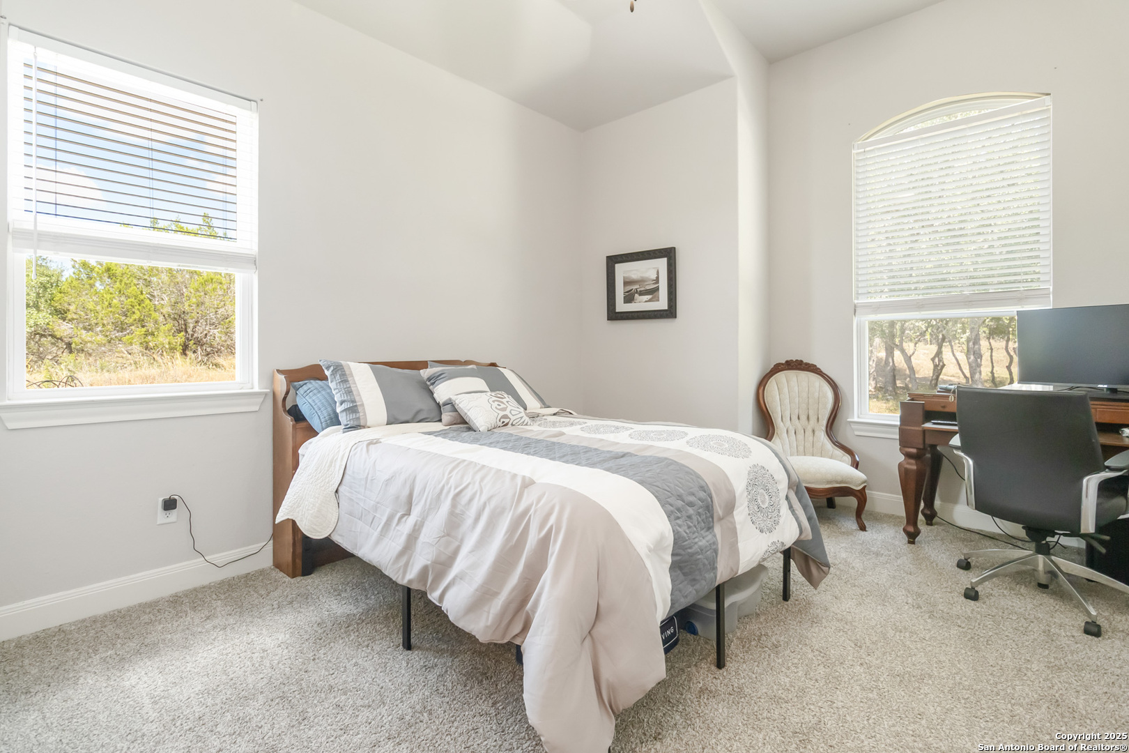 Step into hill country elegance with this striking one story residence, nestled on a sprawling 3.36 acre lot in the exclusive Mystic Shores community. Boasting 3 bedrooms, 2.5 baths, and 2,544 sq ft of thoughtfully designed living space. This home delivers both comfort and sophistication. The open-concept layout flows effortlessly from the foyer through the main living area and into the chef's kitchen, complete with a generous center island, breakfast bar, granite surfaces, and custom cabinetry. Tray and stepped ceilings accent many rooms, while strategically placed wall niches offer subtle architectural interest. Retreat to the primary suite, offering a sitting alcove, double vanities, a garden tub, separate shower, and a large Bespoke walk-in closet. Two additional bedrooms are supported by a full bathroom and a powder room, ideal for guests or flexible use. A dedicated game or media room adds extra living potential with it's own powder room, closet and outdoor access leading the the pool! Step outside into your private outdoor haven. A sparkling in-ground pool with an elegant water feature that adds a touch of resort-style luxury. An oversized covered patio anchored by a built-in fireplace invites year-round enjoyment, whether it's quiet mornings or entertaining under the stars. Nestled in the backyard, the gazebo offers a serene, shaded retreat ideal for morning coffee, evening gatherings, or quiet afternoons surrounded by nature. Just steps away, the greenhouse provides a year-round haven for gardening enthusiasts-whether you're growing fresh herbs, vibrant flowers, or seasonal vegetables, this space is both functional and inspiring. The versatile 30' x 60' metal RV building offers exceptional functionality and space, ideal for storing RVs, boats, vehicles, equipment, or even converting into a workshop or hobby space. Built to last with durable steel construction, this structure features high-clearance entry, wide roll-up doors, and ample interior room for oversized vehicles and storage needs. Whether you're a full-time RV enthusiast, collector, or business owner, this building provides the security, space, and flexibility to accommodate a wide range of uses. Beyond your front door, Mystic Shores rewards residents with expansive amenities: parks, trails, community pool access, lakefront recreation, and more - all within a community that blends natural beauty, privacy, and convenience. Don't miss the chance to own a move-in ready, architecturally rich home in one of Spring Branch's most desirable enclaves.